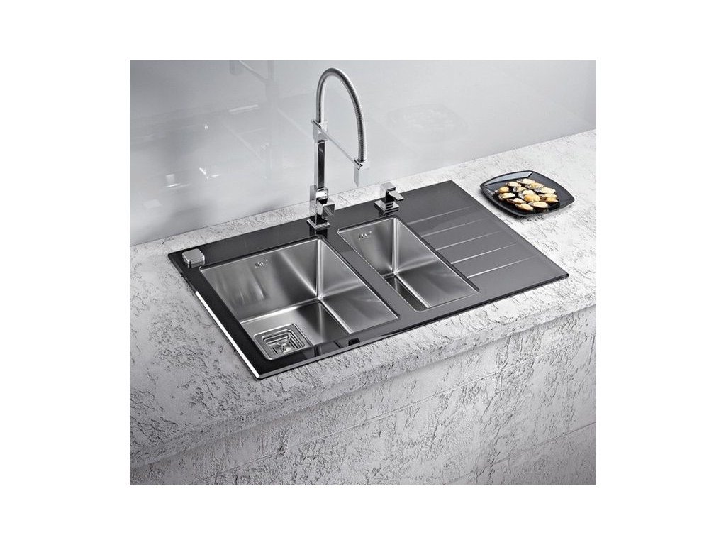 kuchynský sklenený drez s nerez vaničkami - ľavý