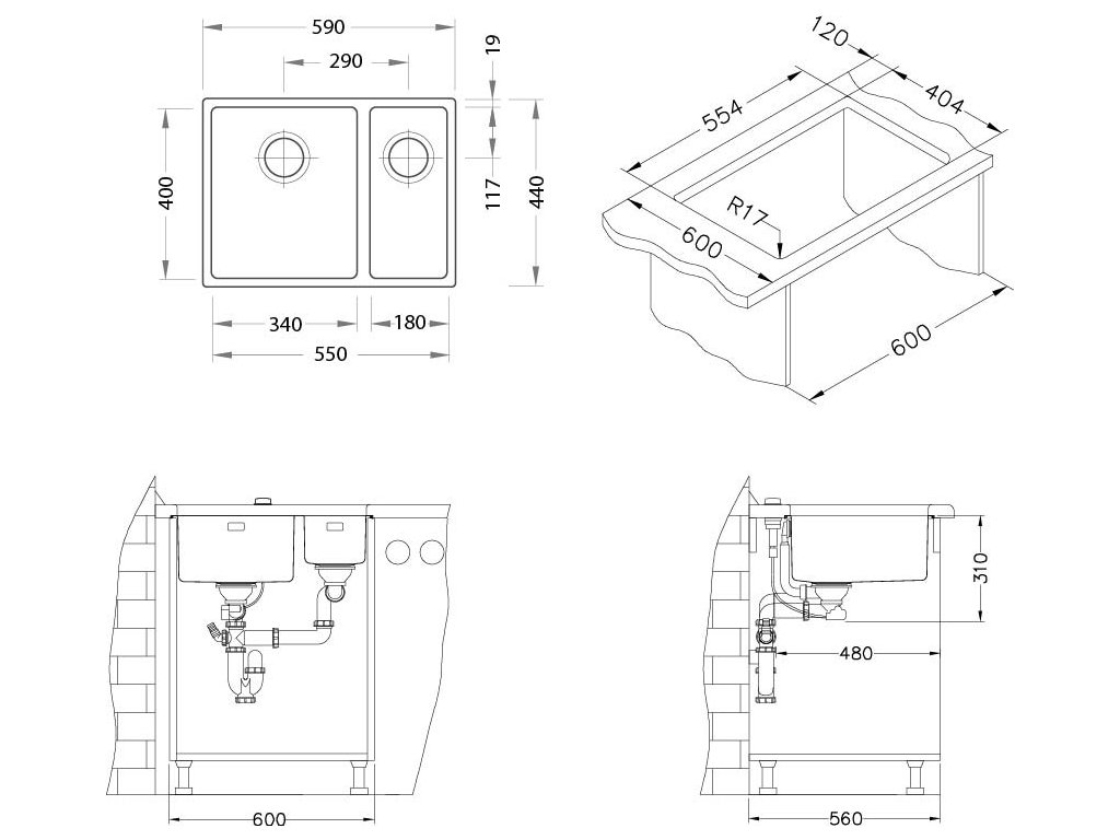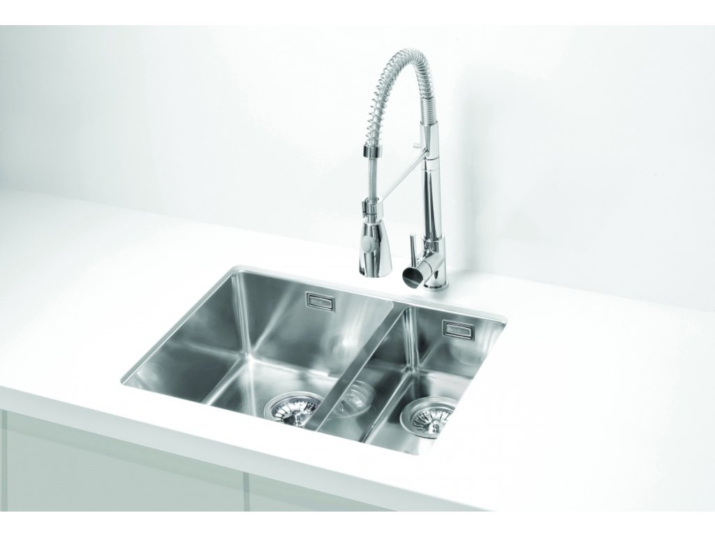 kuchynský nerezový drez určený k montáži zospodu pracovnej dosky