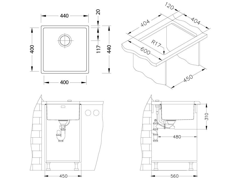 kuchynský nerezový drez určený pre montáž do roviny alebo na montáž zhora pracovnej dosky