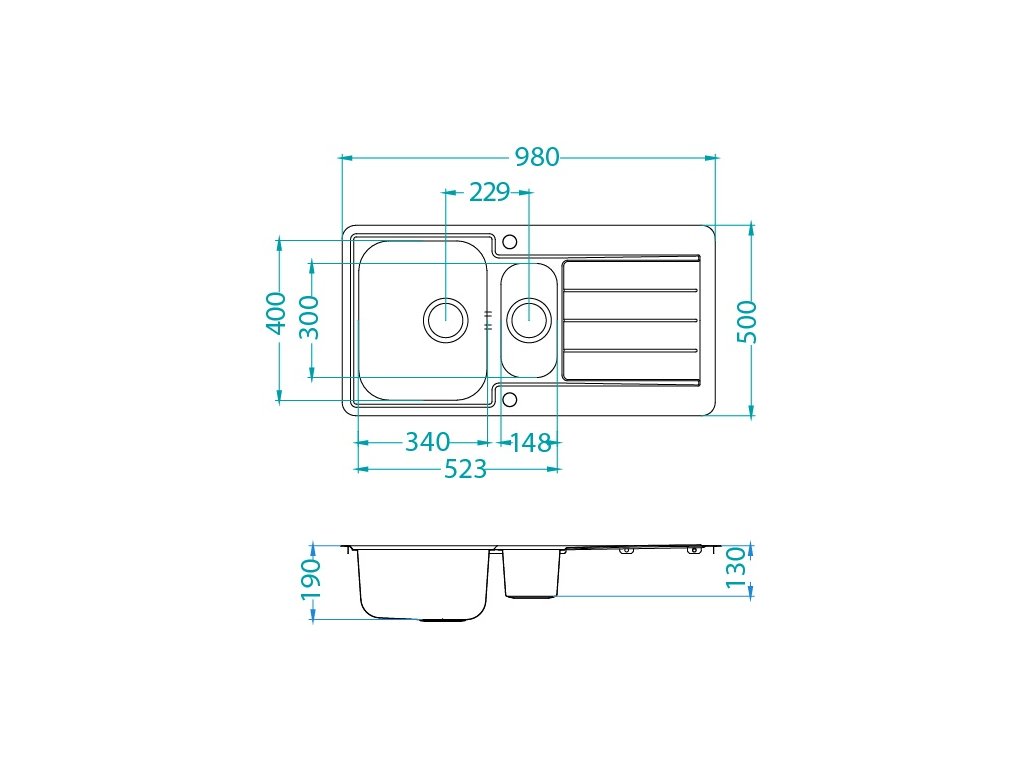 Vstavaný drez s odkvapávacou plochou