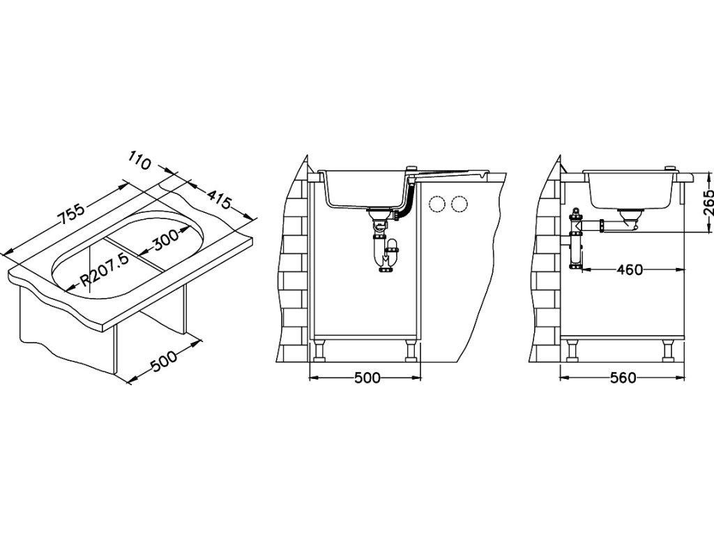 - sifón pre úsporu miesta s odbočkou na umývačku