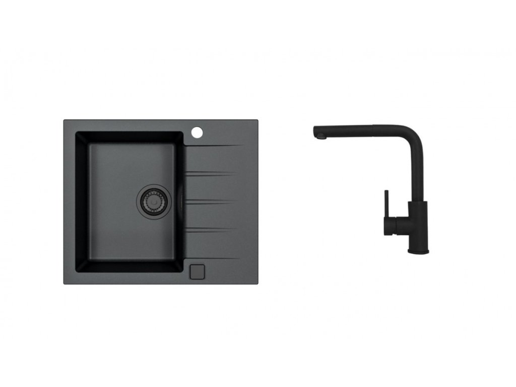 kuchynský SET : granitový čierny drez s čiernou batériou