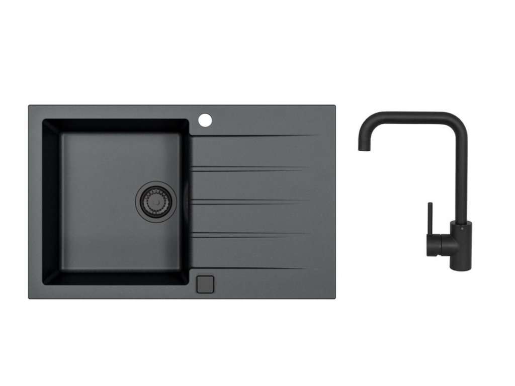 kuchynský SET : čierny granitový drez s čiernou batériou