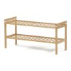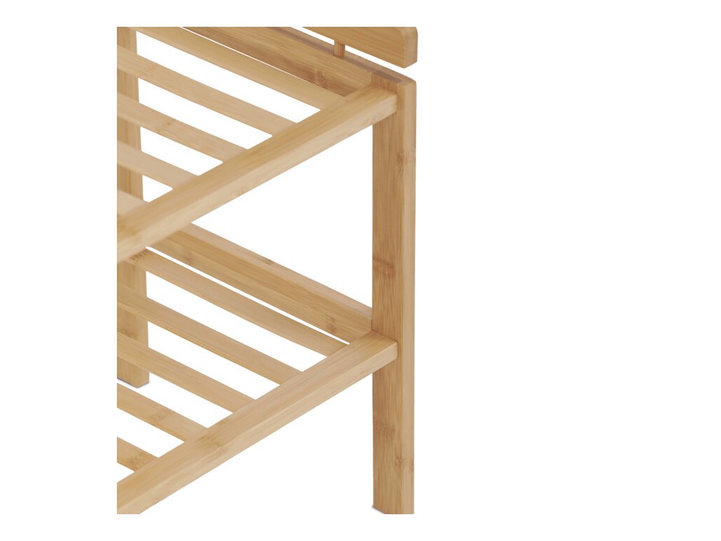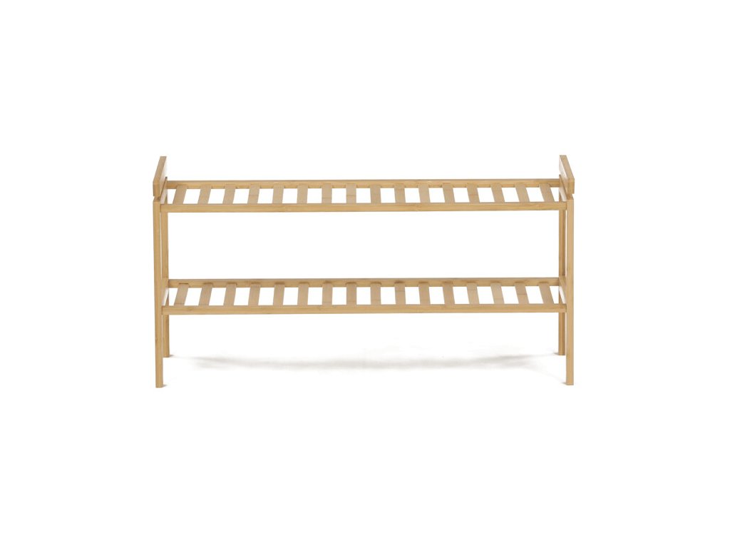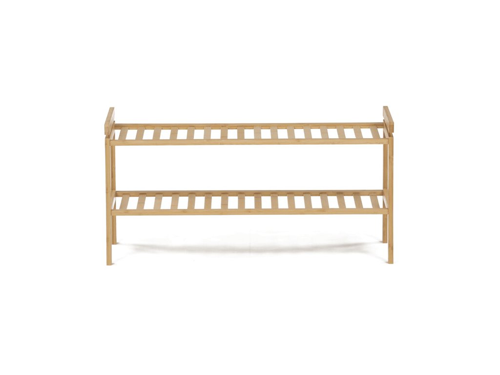 Botník s dvoma policami je vyrobený z masívneho bambusu v prírodnom odtieni, ktorý zabezpečuje pevnosť a dlhú životnosť. Otvorená polica s vodorovnými latkami umožňuje efektívne vetranie a rýchle schnutie obuvi. Jednoduchý a funkčný dizajn botníka sa hodí do rôznych interiérov, kde ponúka praktické riešenie na uskladnenie topánok. Stabilný rám a rovné nohy zaručujú bezpečné a pevné postavenie. Rozmery botníka umožňujú uloženie viacerých párov obuvi bez zbytočnej náročnosti na priestor.
