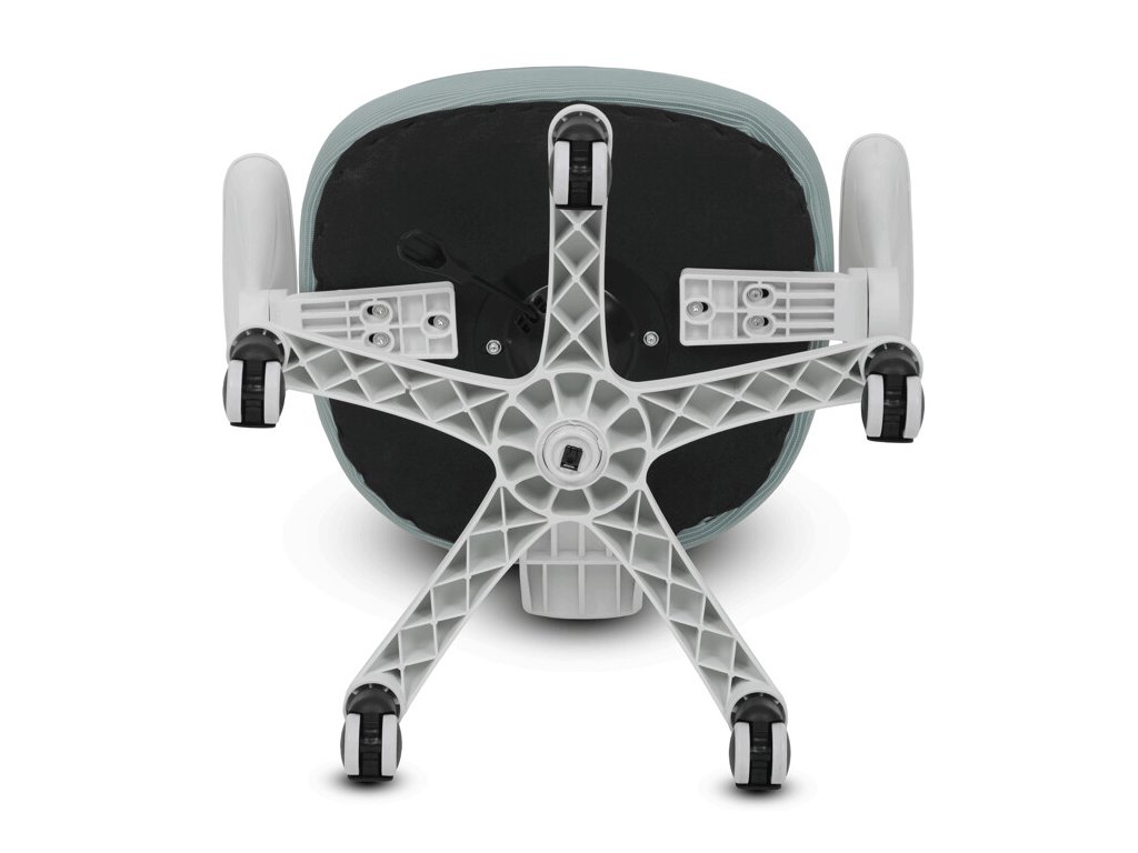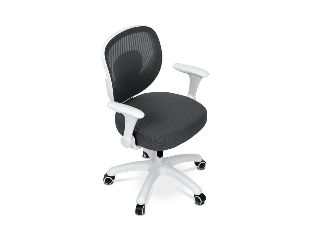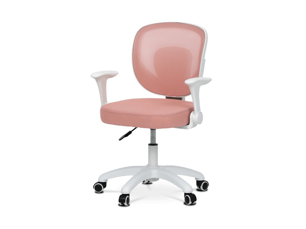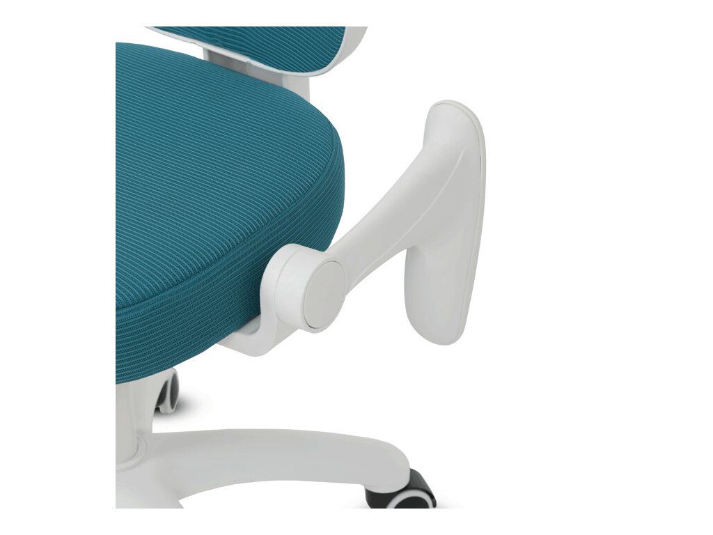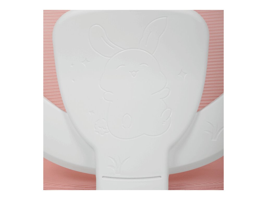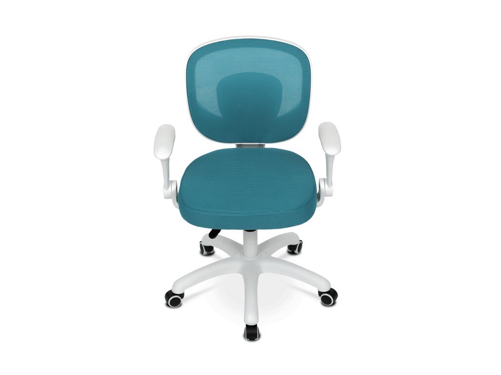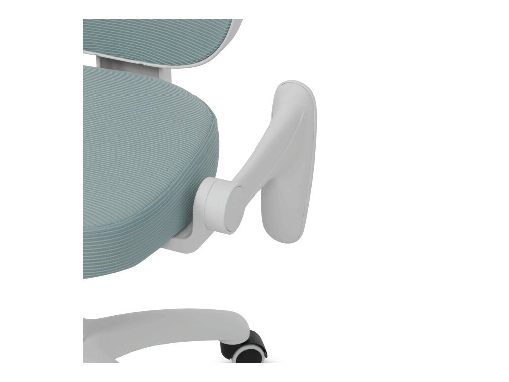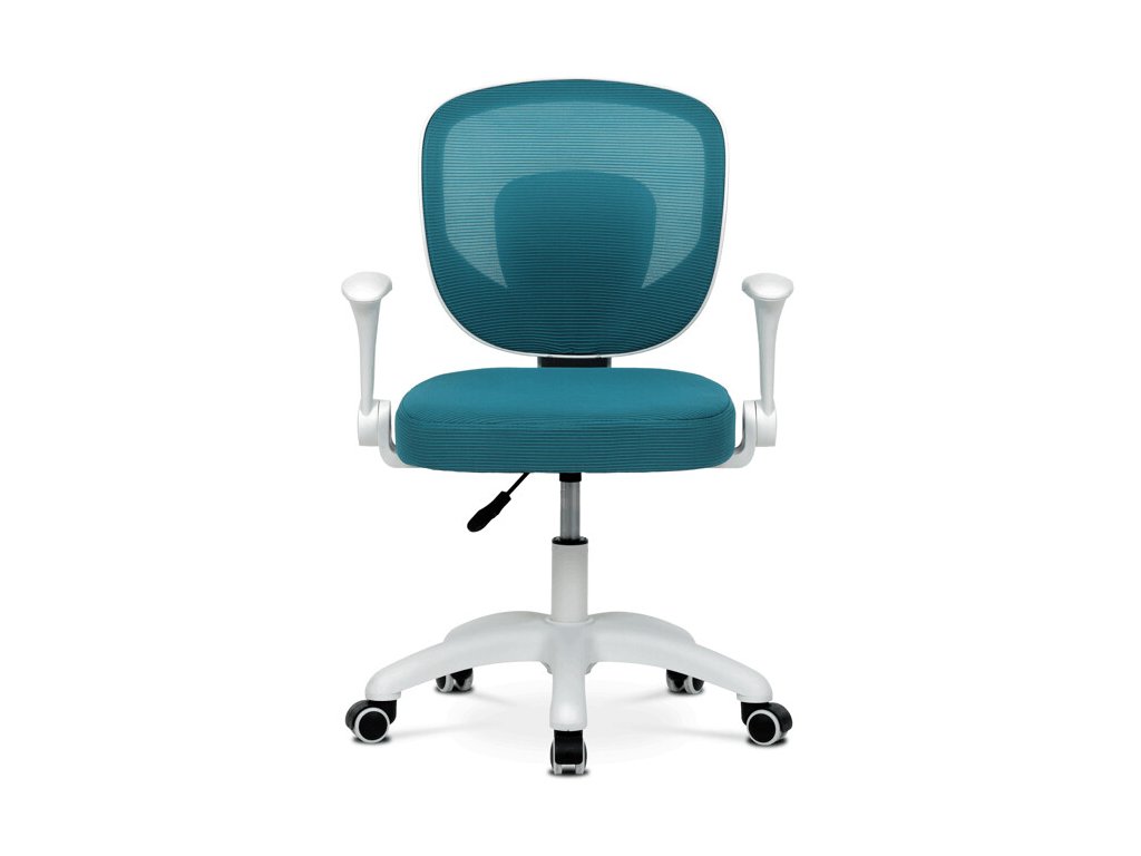 Detská stolička s modrým sieťovinovým poťahom ponúka priedušné a pohodlné sedenie vhodné pre mladších používateľov. Operadlo aj sedák sú potiahnuté jemnou sieťovinou, ktorá podporuje cirkuláciu vzduchu a prispieva k príjemnému pocitu počas dlhšieho sedenia. Odklápacie podrúčky z bieleho plastu umožňujú jednoduché prispôsobenie priestoru a lepšiu manipuláciu so stoličkou. Výškovo nastaviteľný mechanizmus umožňuje jednoduché prispôsobenie výšky sedáka podľa potreby dieťaťa. Stabilný plastový kríž je vybavený kolieskami určenými na tvrdé podlahy, čo zabezpečuje hladký pohyb a ochranu povrchu podlahy.