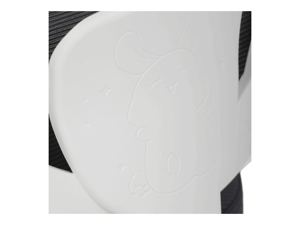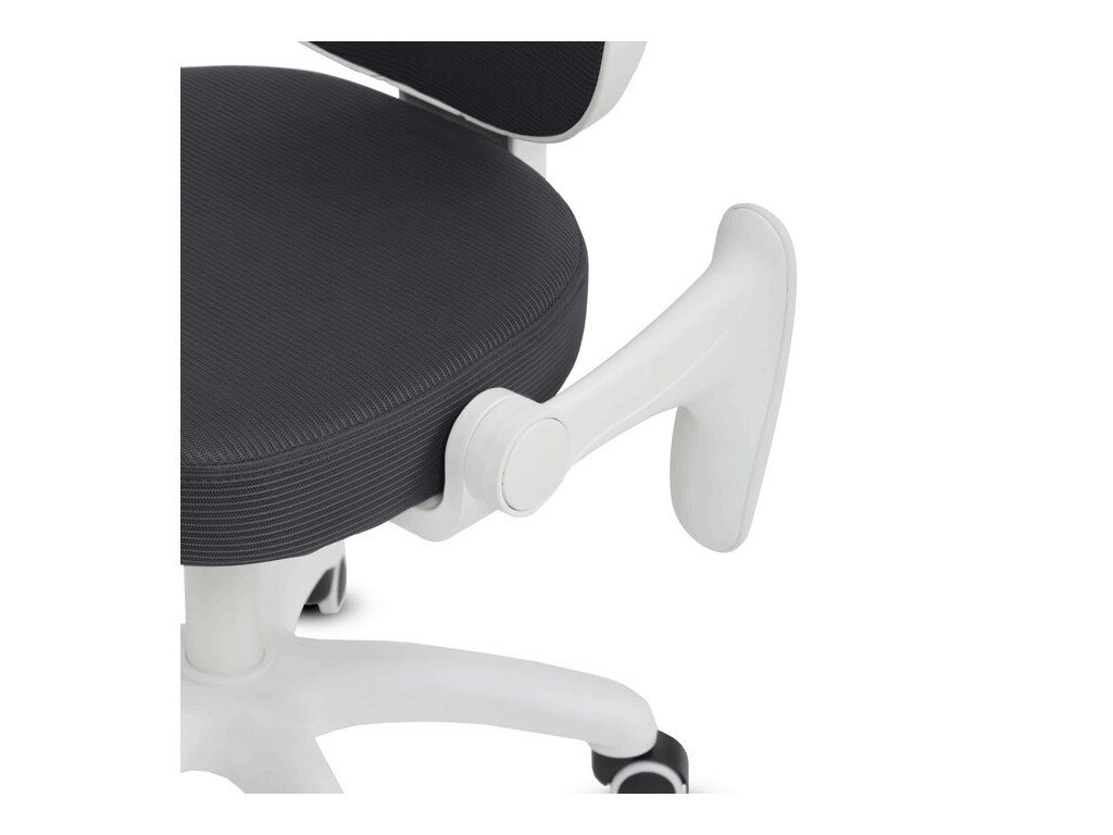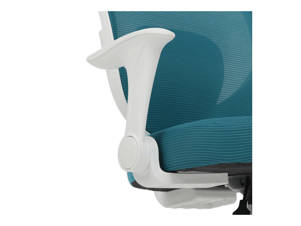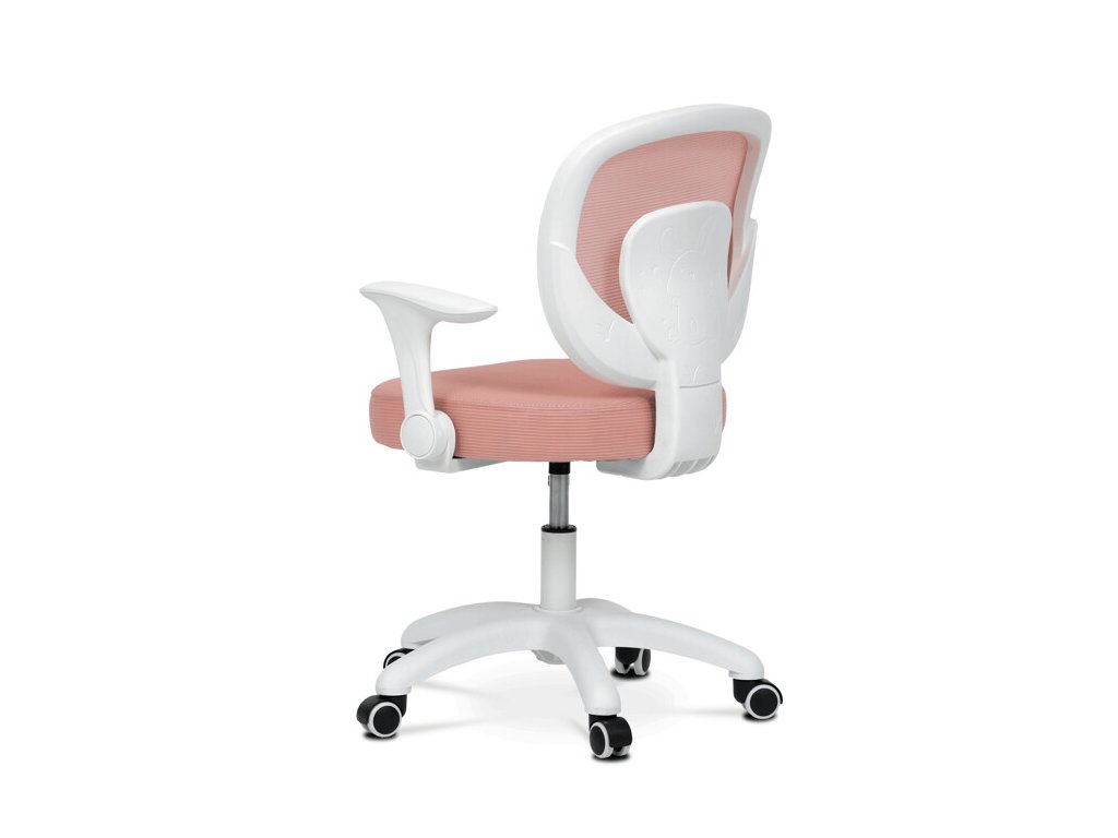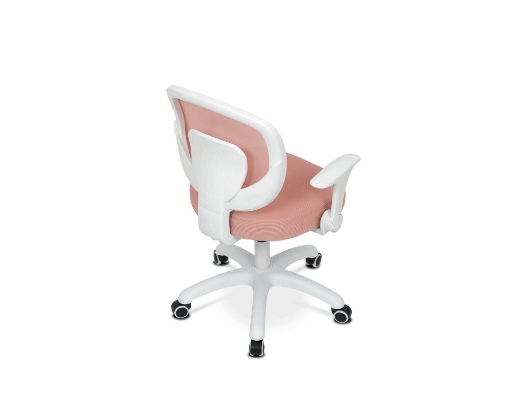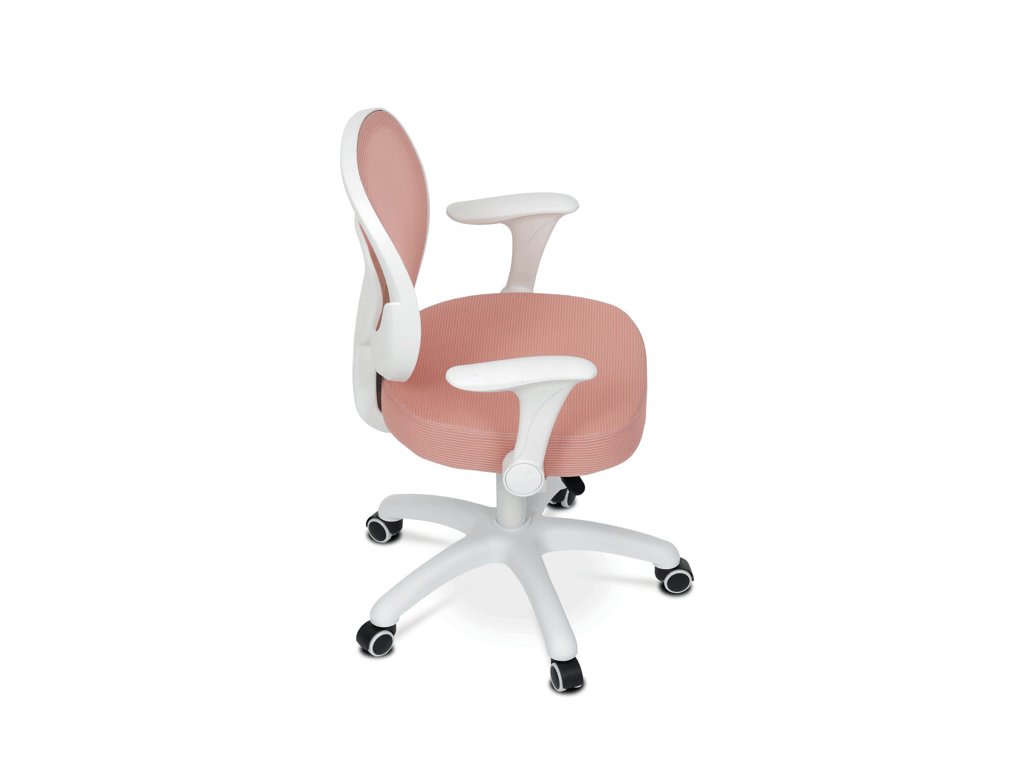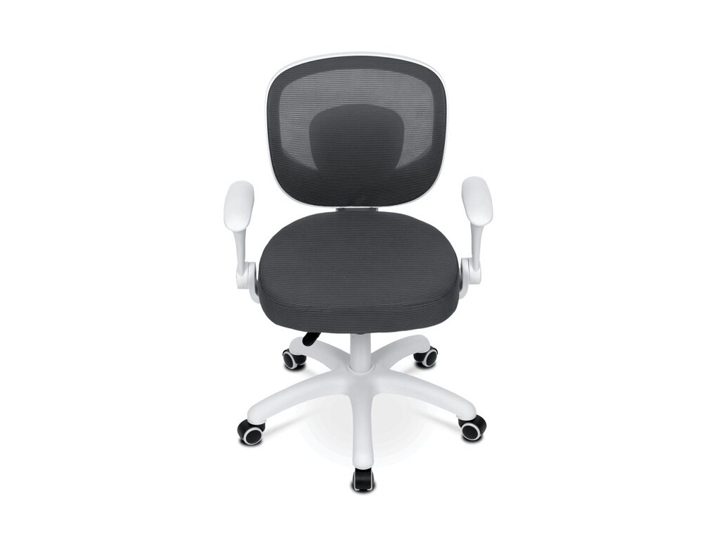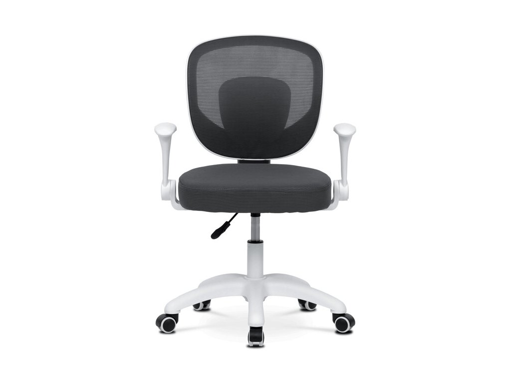 Detská stolička s modrým sieťovinovým poťahom ponúka priedušné a pohodlné sedenie vhodné pre mladších používateľov. Operadlo aj sedák sú potiahnuté jemnou sieťovinou, ktorá podporuje cirkuláciu vzduchu a prispieva k príjemnému pocitu počas dlhšieho sedenia. Odklápacie podrúčky z bieleho plastu umožňujú jednoduché prispôsobenie priestoru a lepšiu manipuláciu so stoličkou. Výškovo nastaviteľný mechanizmus umožňuje jednoduché prispôsobenie výšky sedáka podľa potreby dieťaťa. Stabilný plastový kríž je vybavený kolieskami určenými na tvrdé podlahy, čo zabezpečuje hladký pohyb a ochranu povrchu podlahy.