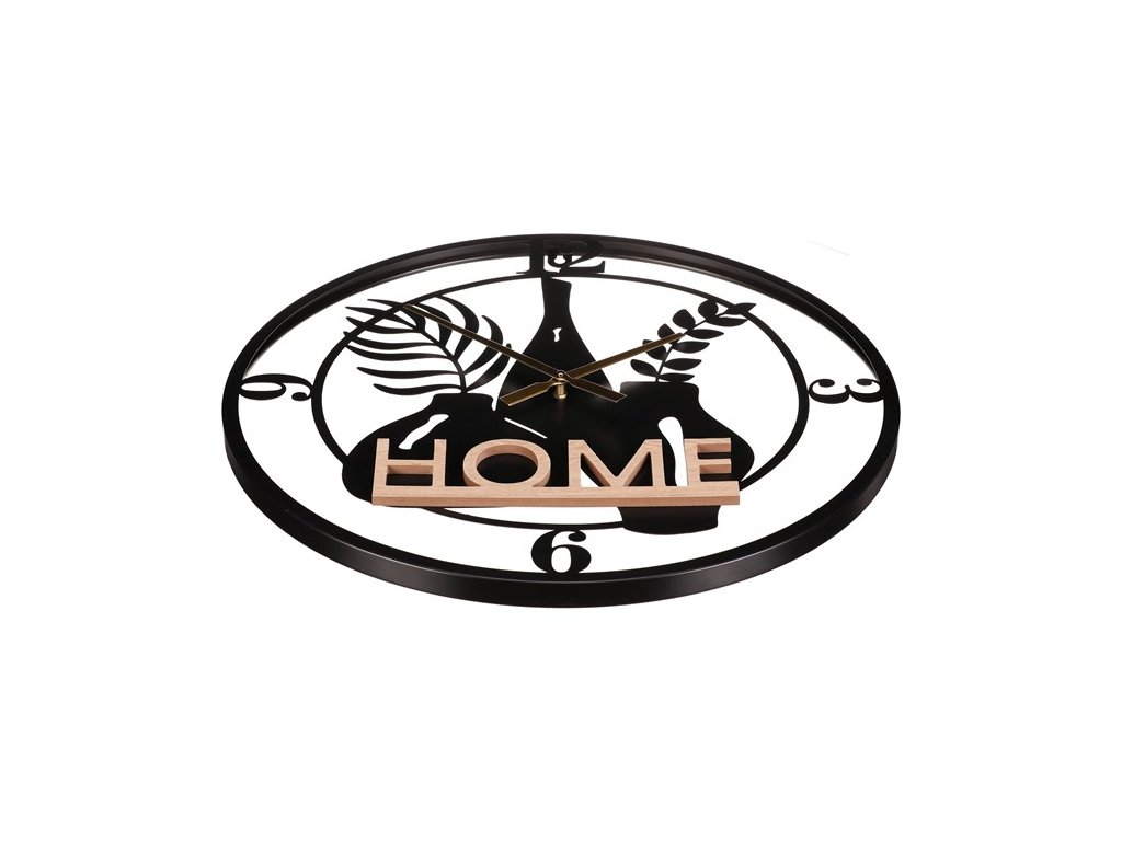 BONTEC Hodiny nástenné - pr. 60 cm, kov a MDF, nápis "HOME"