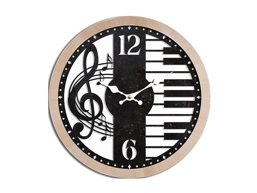 BONTEC Hodiny nástenné - pr. 60 cm, MDF a kov, husľový kľúč a klávesy