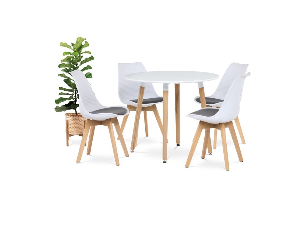 Jedálenská stolička Autronic v modernom škandinávskom štýle kombinuje elegantný dizajn s maximálnym pohodlím. Plastový škrupinový sedák v bielej farbe s vodorovnými prelismi je doplnený o mäkký polstrovaný podsedák potiahnutý matným šedým zamatom, ktorý zaisťuje príjemné sedenie. Stabilné nohy z masívneho dreva dodávajú stoličke prírodný vzhľad a pevnosť. Táto stolička je ideálnou voľbou do jedálne či kuchyne, kde oceníte jej funkčnú aj estetickú kvalitu. Pridajte do svojho interiéru kus modernej elegancie so značkou Autronic!