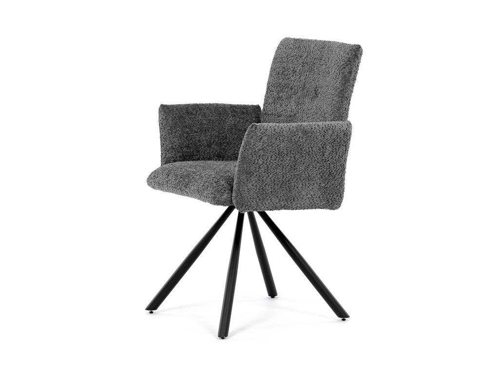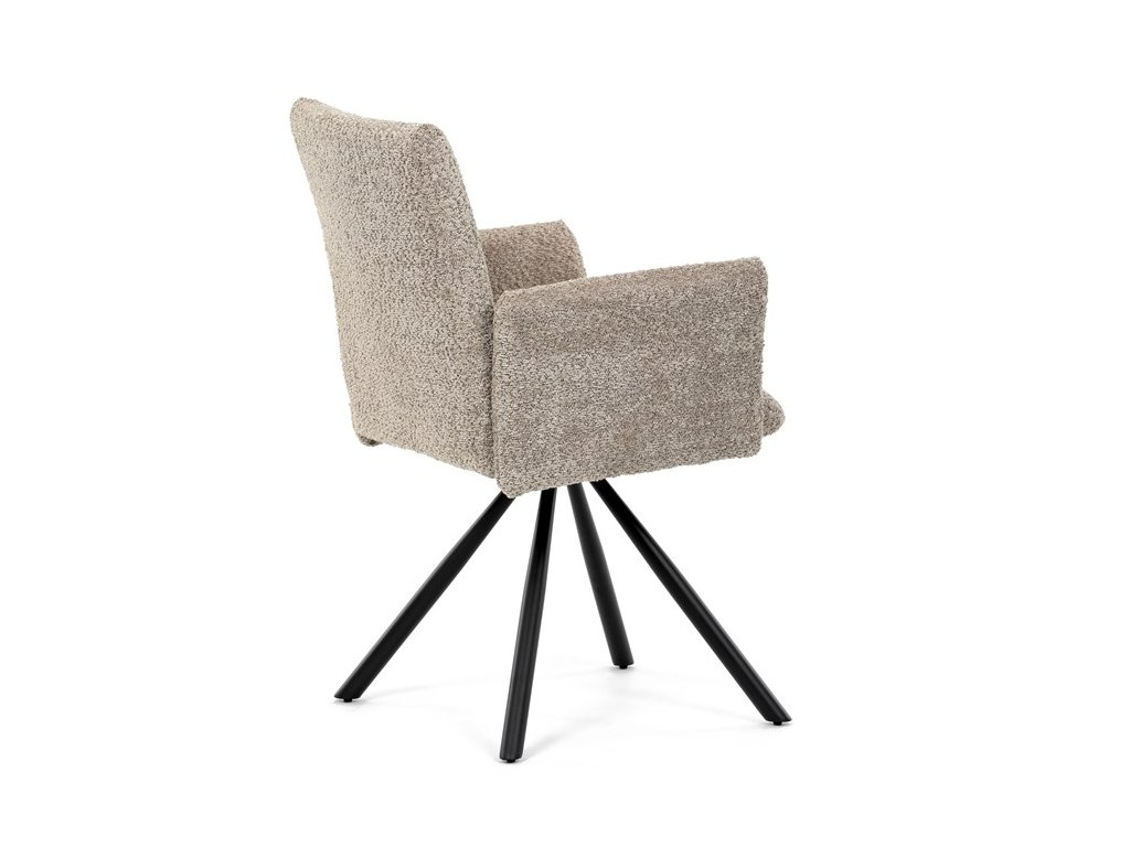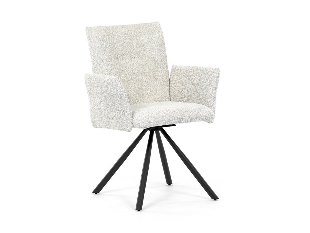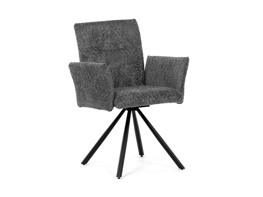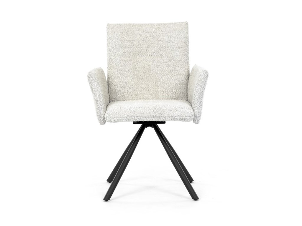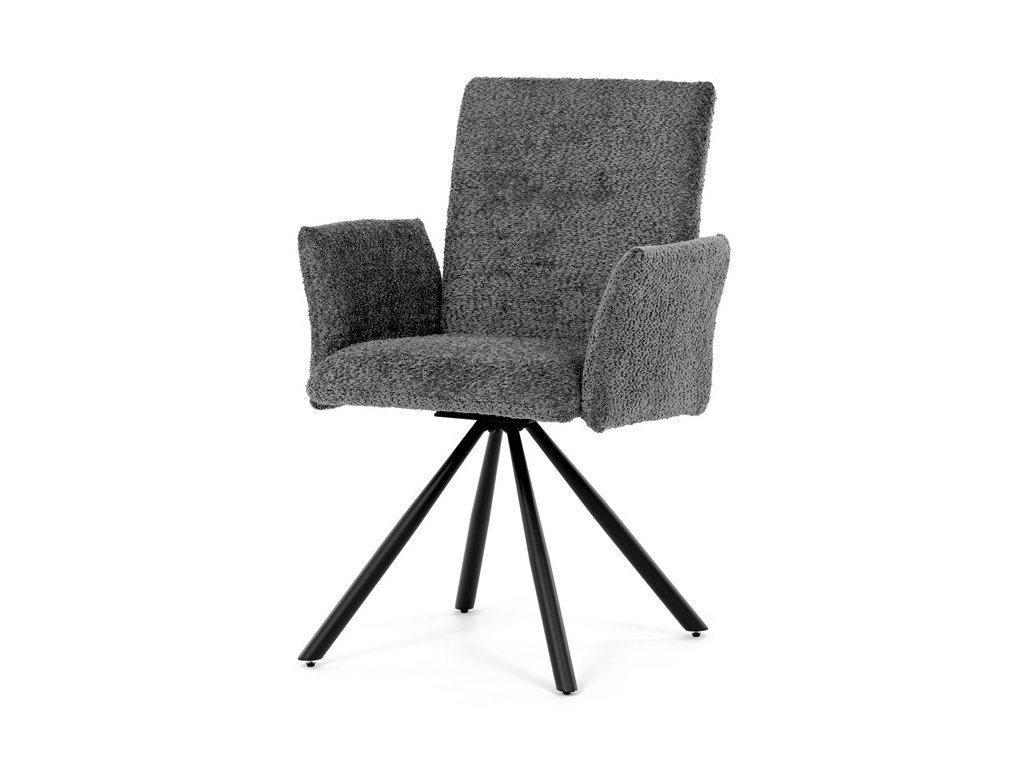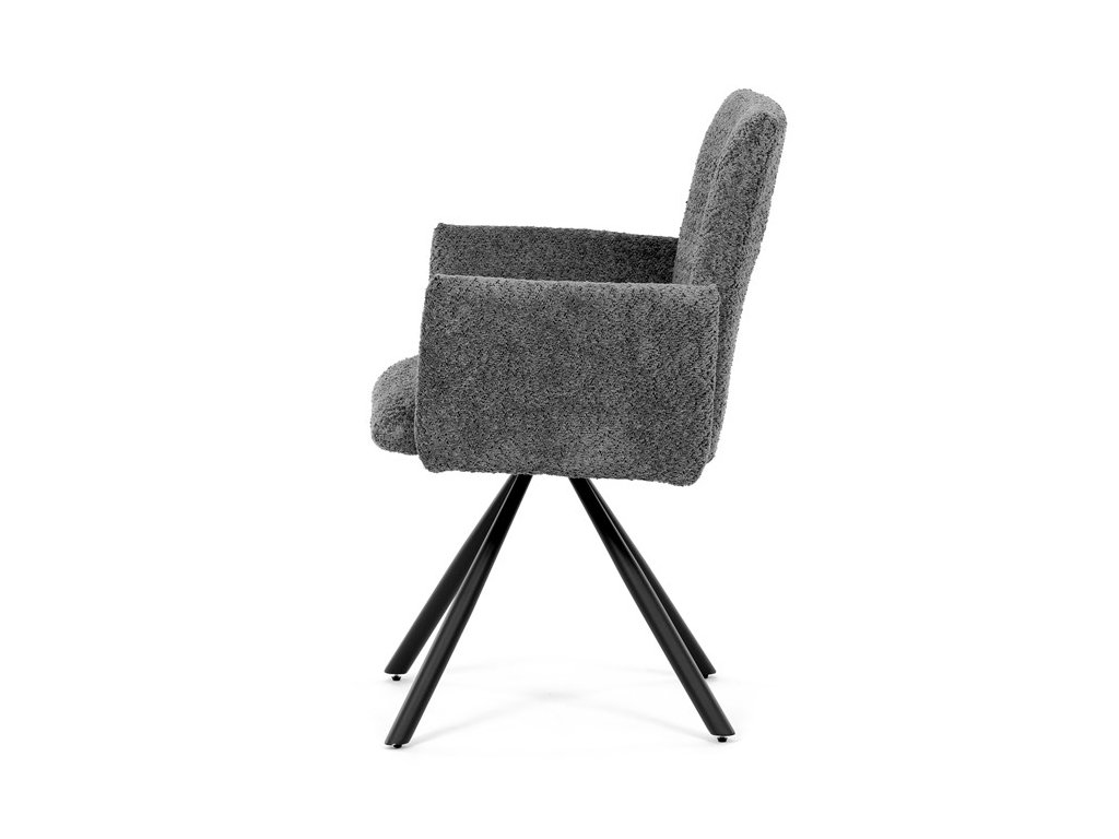 Táto moderná jedálenská stolička značky Autronic v industriálnom štýle kombinuje pohodlie s funkčnosťou. Otočná stolička s robustnou kovovou podnožou je vybavená pohodlnými podrúčkami a látkou Bouclé, ktorá zaisťuje príjemný a štýlový vzhľad. Polstrovanie z PU peny ponúka mäkké sedenie, zatiaľ čo otočný mechanizmus L90 ° / P90 ° s funkciou automatického vrátenia sedáku do základnej polohy umožňuje ľahké otáčanie pre maximálnu flexibilitu. Čierna kovová centrálna podnož dodáva stoličke stabilitu a moderný vzhľad. Táto stolička je ideálna pre elegantné jedálne, kde sa kombinuje komfort s moderným dizajnom.