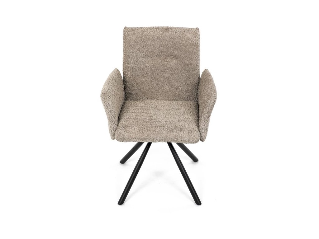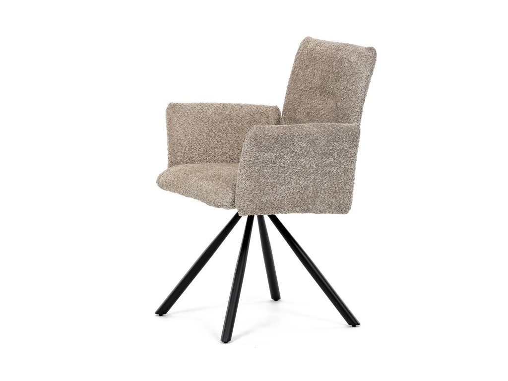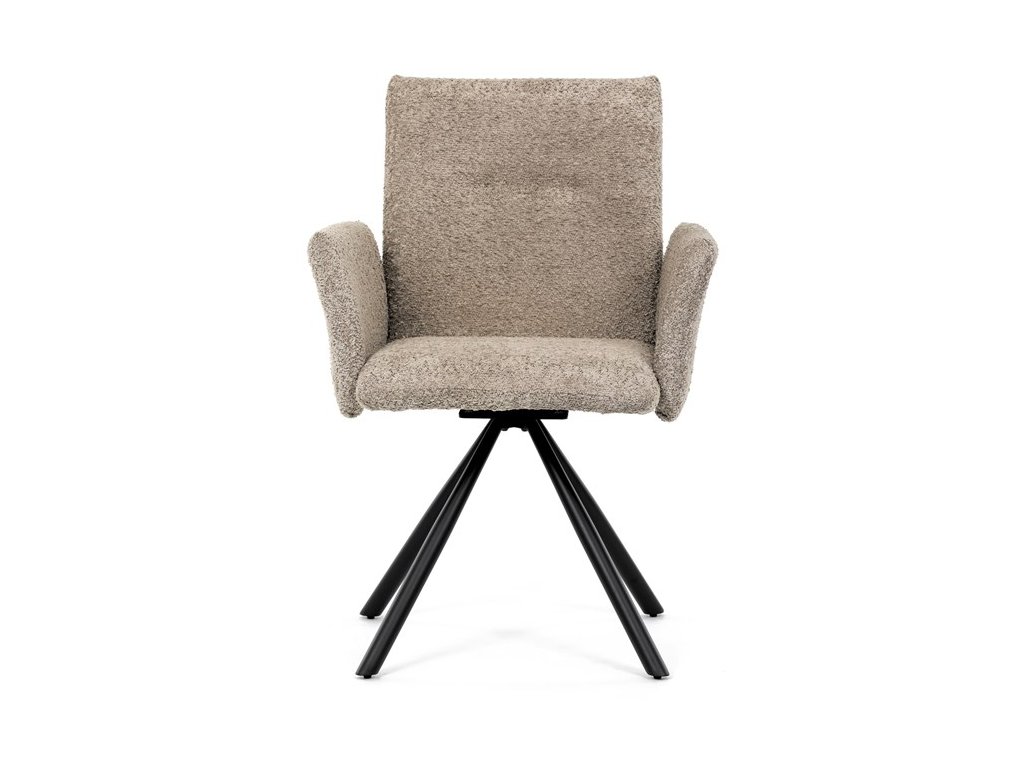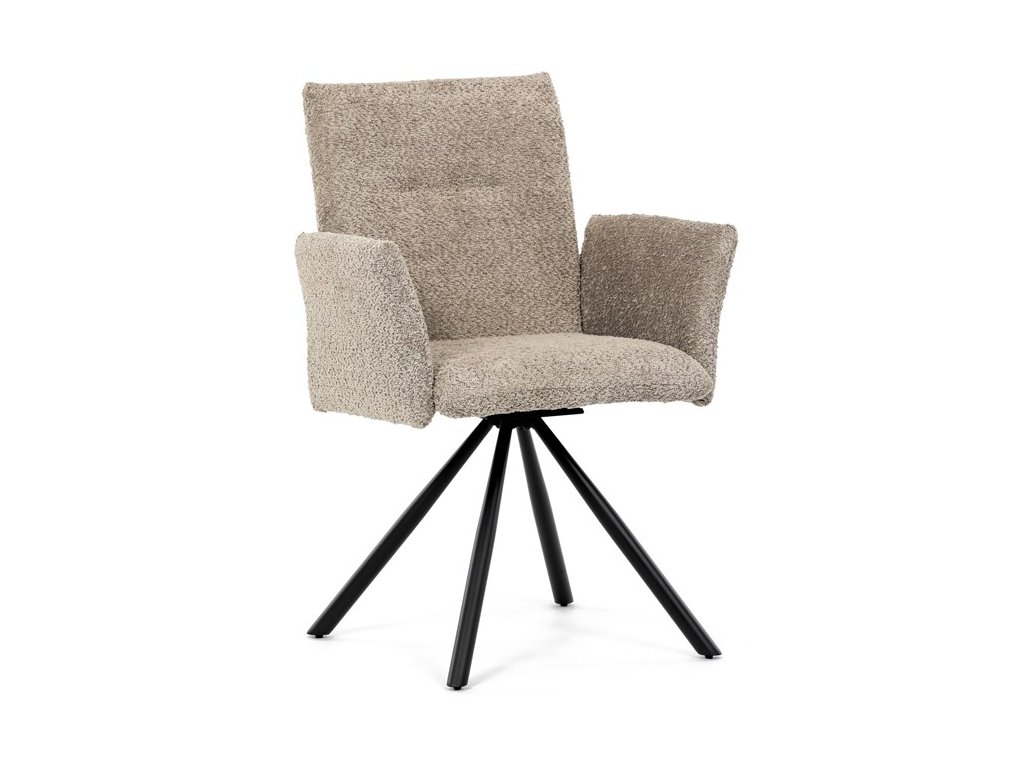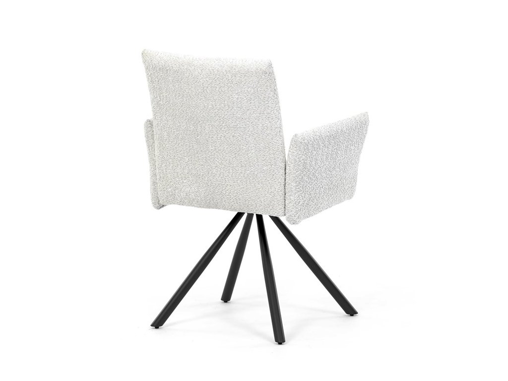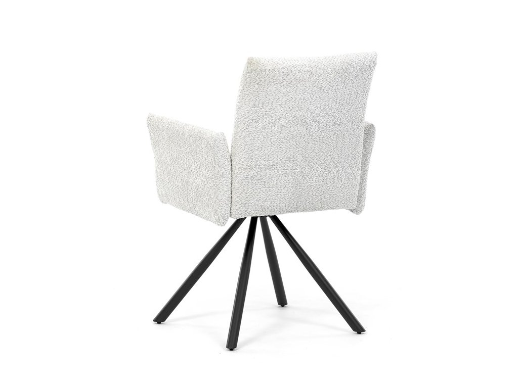 Táto moderná jedálenská stolička značky Autronic v industriálnom štýle kombinuje pohodlie s funkčnosťou. Otočná stolička s robustnou kovovou podnožou je vybavená pohodlnými podrúčkami a látkou Bouclé, ktorá zaisťuje príjemný a štýlový vzhľad. Polstrovanie z PU peny ponúka mäkké sedenie, zatiaľ čo otočný mechanizmus L90 ° / P90 ° s funkciou automatického vrátenia sedáku do základnej polohy umožňuje ľahké otáčanie pre maximálnu flexibilitu. Čierna kovová centrálna podnož dodáva stoličke stabilitu a moderný vzhľad. Táto stolička je ideálna pre elegantné jedálne, kde sa kombinuje komfort s moderným dizajnom.