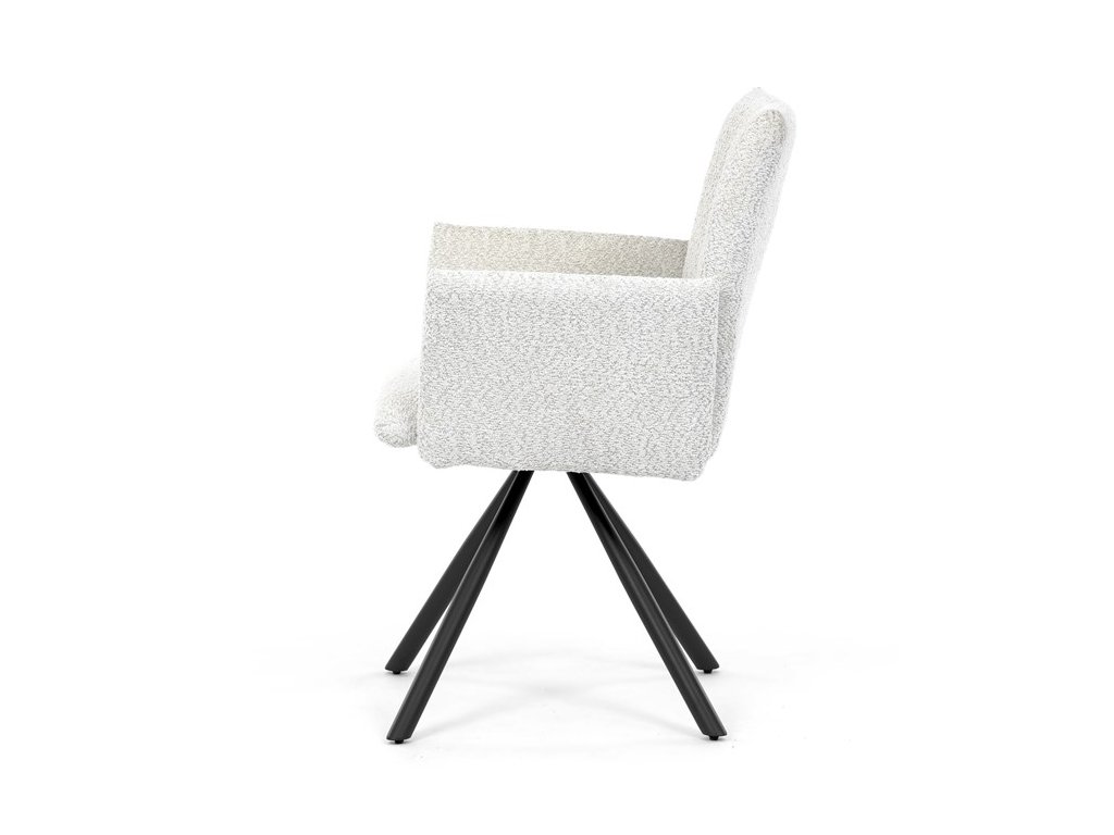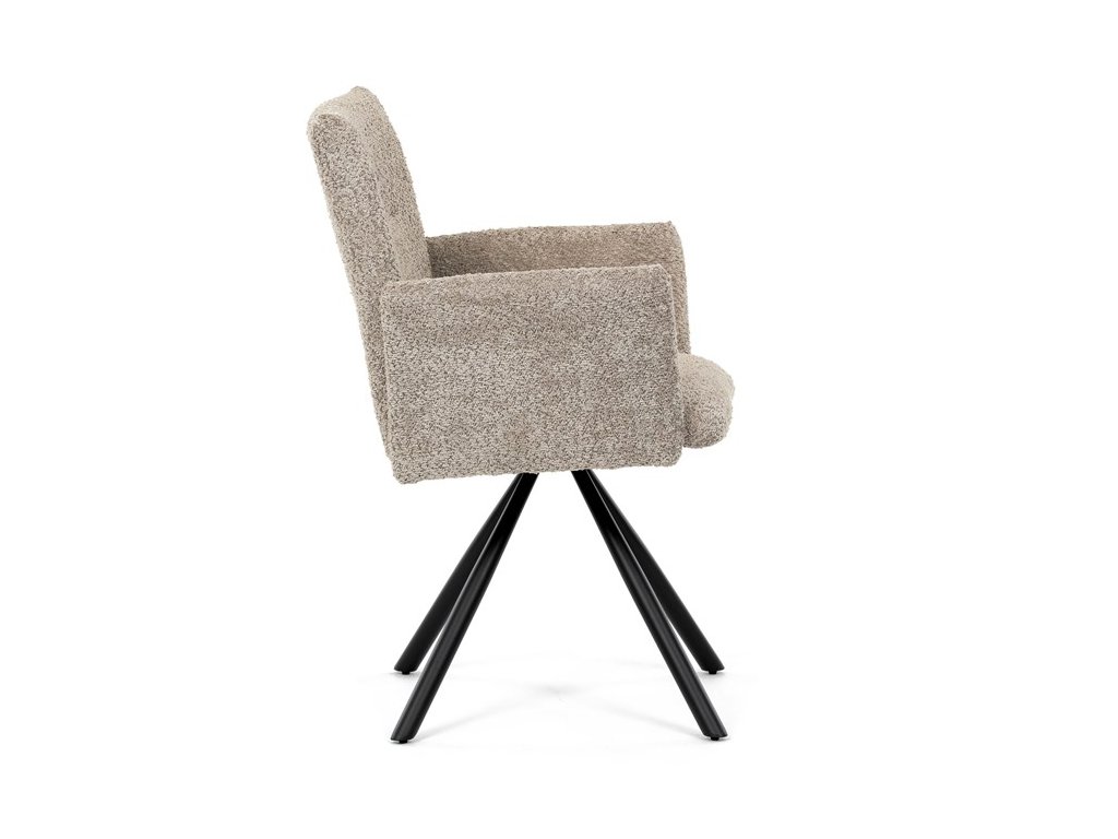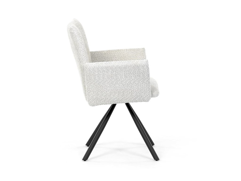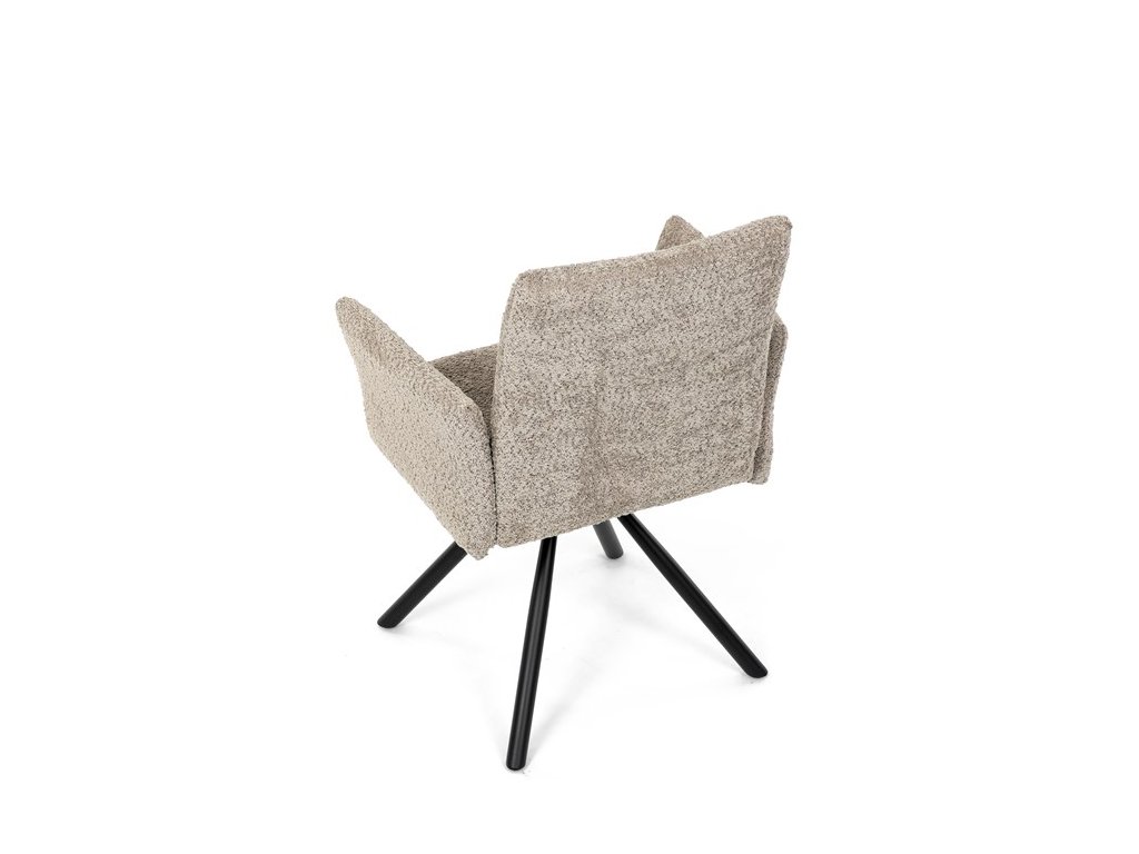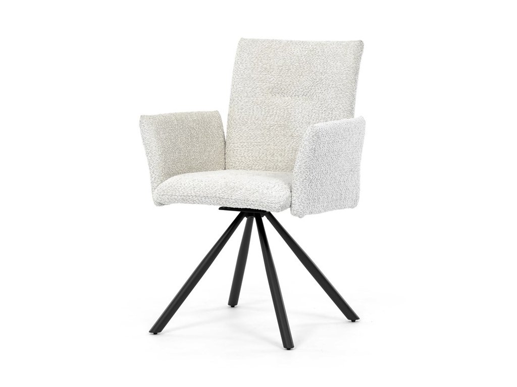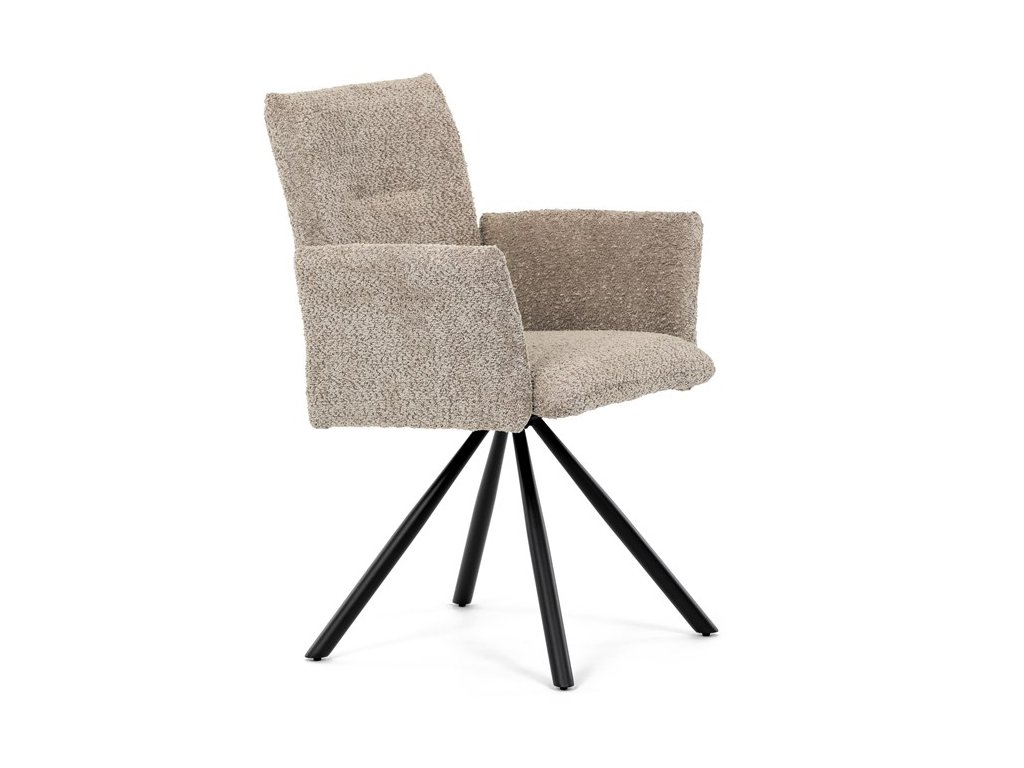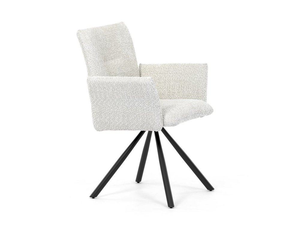 Táto moderná jedálenská stolička značky Autronic v industriálnom štýle kombinuje pohodlie s funkčnosťou. Otočná stolička s robustnou kovovou podnožou je vybavená pohodlnými podrúčkami a látkou Bouclé, ktorá zaisťuje príjemný a štýlový vzhľad. Polstrovanie z PU peny ponúka mäkké sedenie, zatiaľ čo otočný mechanizmus L90 ° / P90 ° s funkciou automatického vrátenia sedáku do základnej polohy umožňuje ľahké otáčanie pre maximálnu flexibilitu. Čierna kovová centrálna podnož dodáva stoličke stabilitu a moderný vzhľad. Táto stolička je ideálna pre elegantné jedálne, kde sa kombinuje komfort s moderným dizajnom.