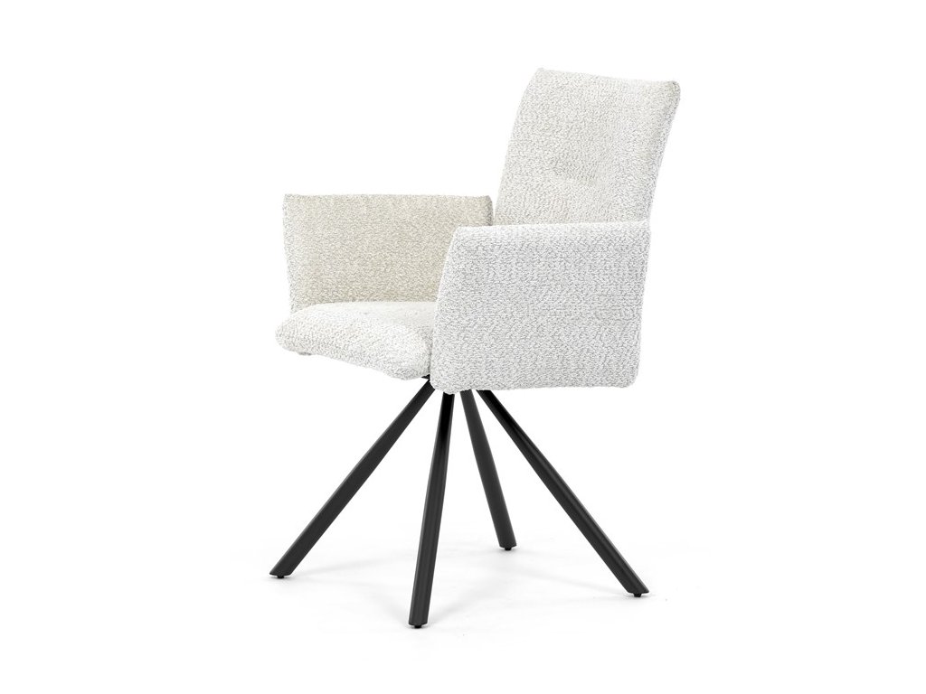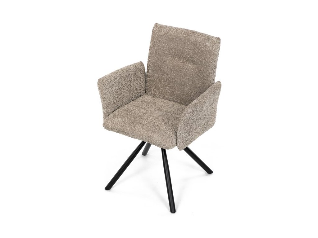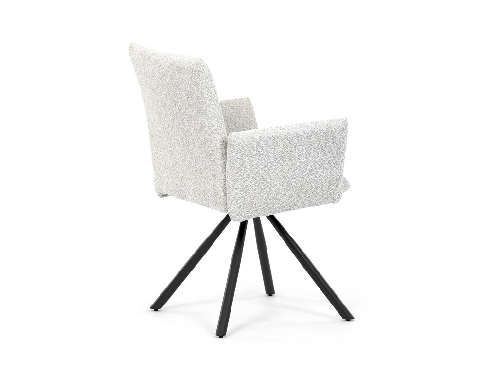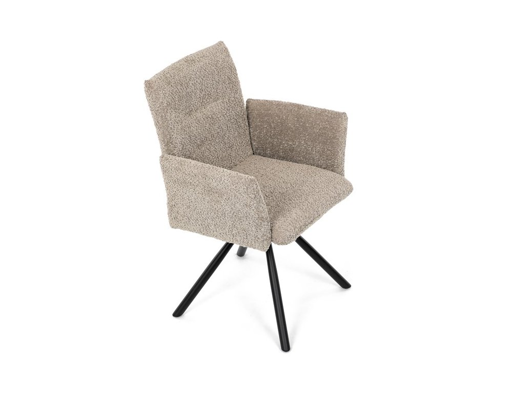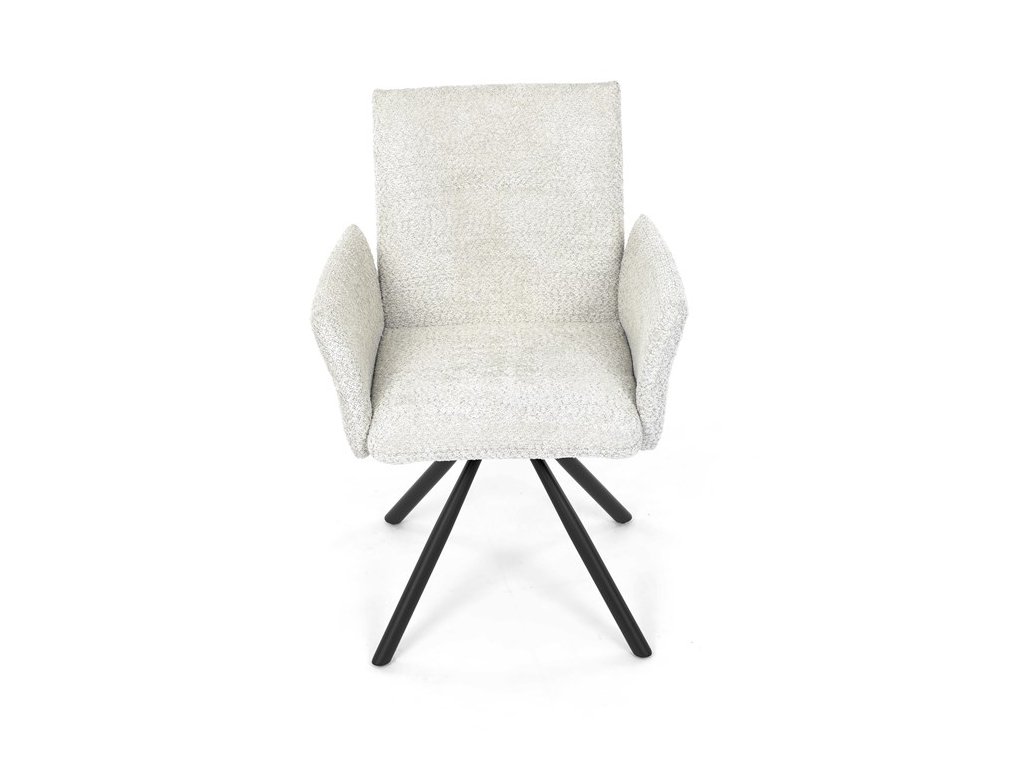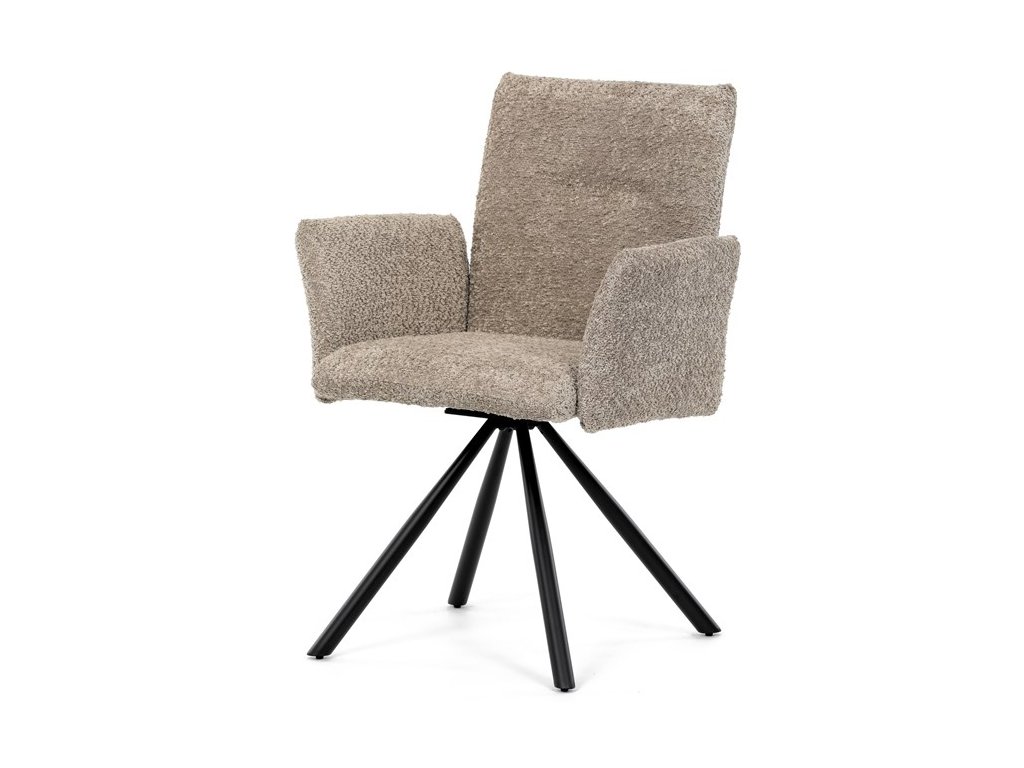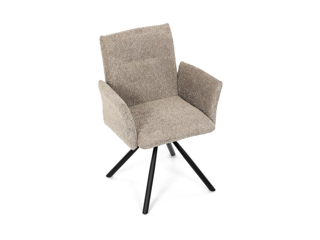 Táto moderná jedálenská stolička značky Autronic v industriálnom štýle kombinuje pohodlie s funkčnosťou. Otočná stolička s robustnou kovovou podnožou je vybavená pohodlnými podrúčkami a látkou Bouclé, ktorá zaisťuje príjemný a štýlový vzhľad. Polstrovanie z PU peny ponúka mäkké sedenie, zatiaľ čo otočný mechanizmus L90 ° / P90 ° s funkciou automatického vrátenia sedáku do základnej polohy umožňuje ľahké otáčanie pre maximálnu flexibilitu. Čierna kovová centrálna podnož dodáva stoličke stabilitu a moderný vzhľad. Táto stolička je ideálna pre elegantné jedálne, kde sa kombinuje komfort s moderným dizajnom.