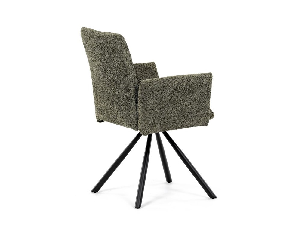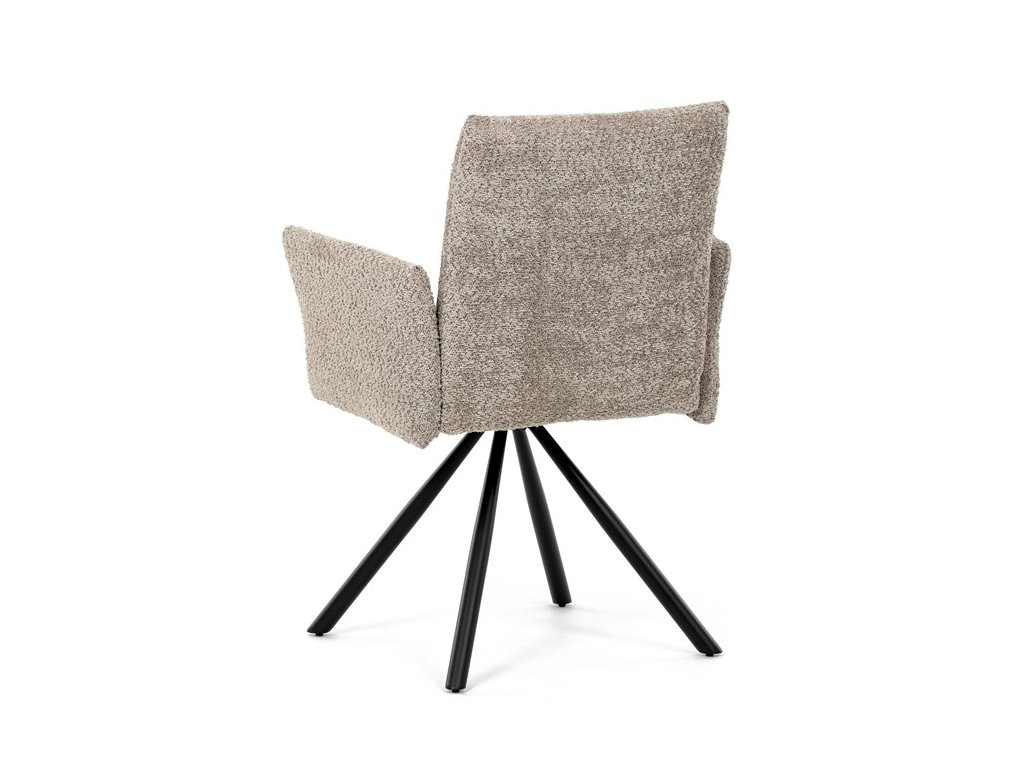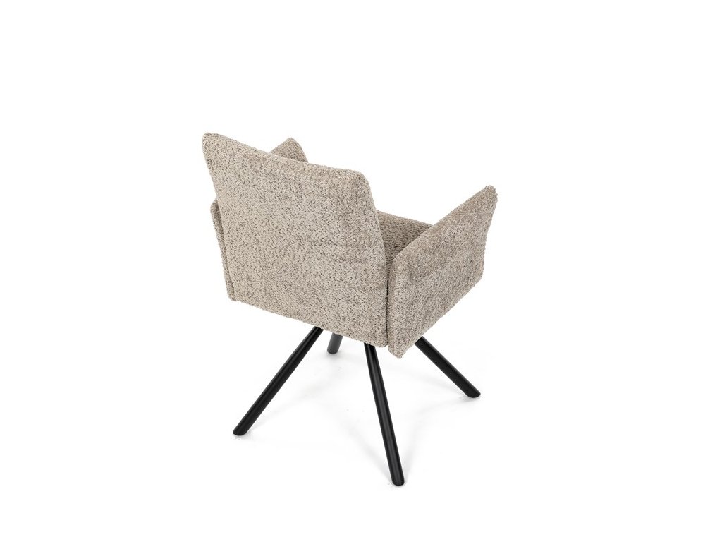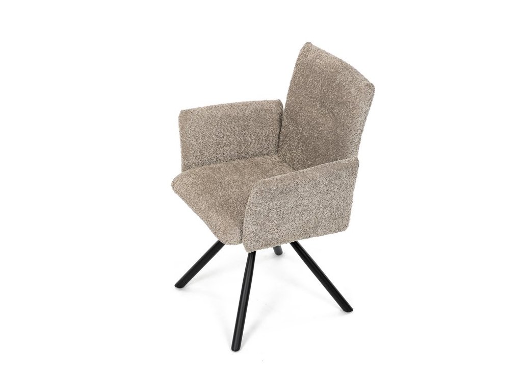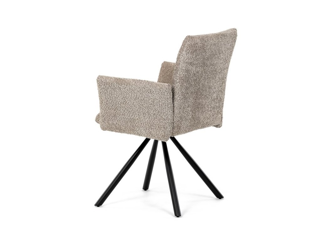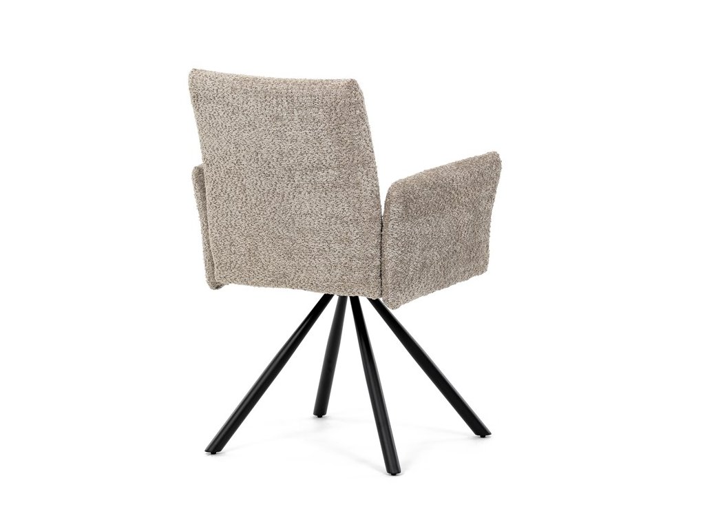 Táto moderná jedálenská stolička značky Autronic v industriálnom štýle kombinuje pohodlie s funkčnosťou. Otočná stolička s robustnou kovovou podnožou je vybavená pohodlnými podrúčkami a látkou Bouclé, ktorá zaisťuje príjemný a štýlový vzhľad. Polstrovanie z PU peny ponúka mäkké sedenie, zatiaľ čo otočný mechanizmus L90 ° / P90 ° s funkciou automatického vrátenia sedáku do základnej polohy umožňuje ľahké otáčanie pre maximálnu flexibilitu. Čierna kovová centrálna podnož dodáva stoličke stabilitu a moderný vzhľad. Táto stolička je ideálna pre elegantné jedálne, kde sa kombinuje komfort s moderným dizajnom.