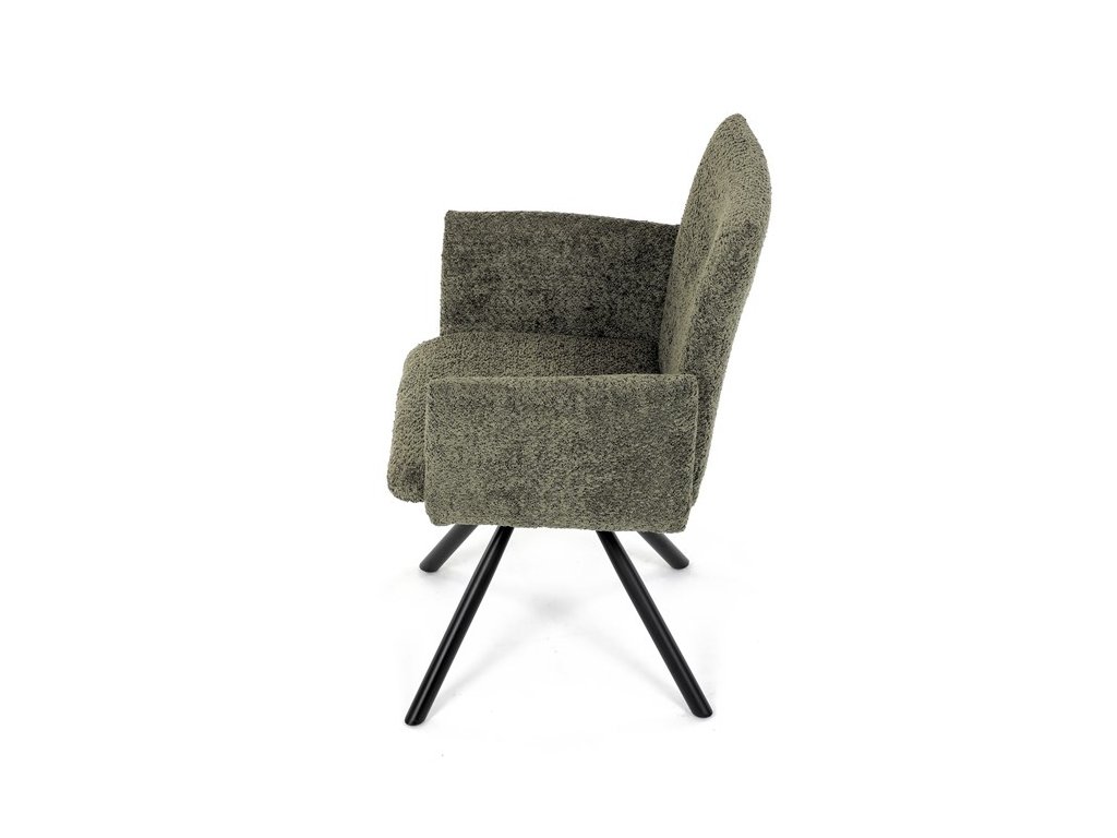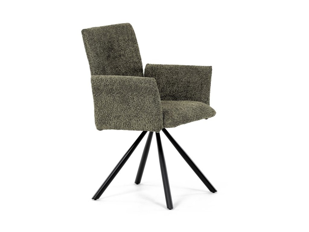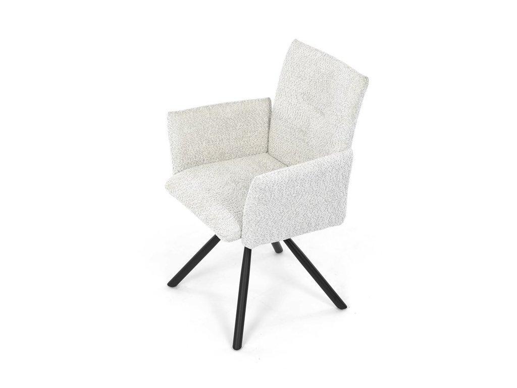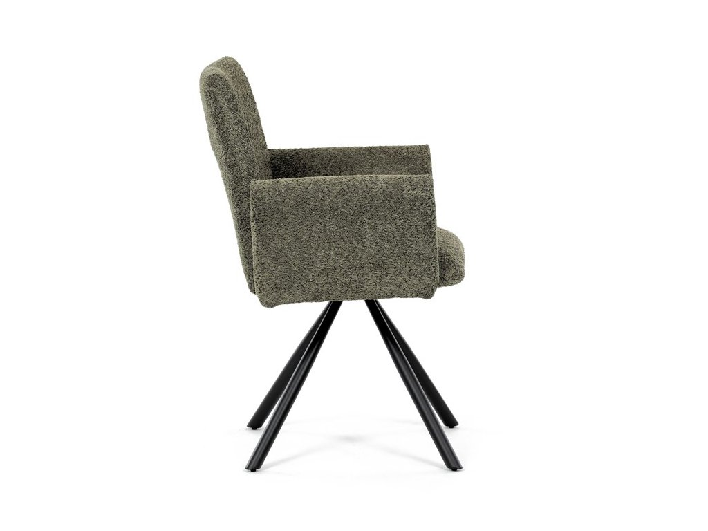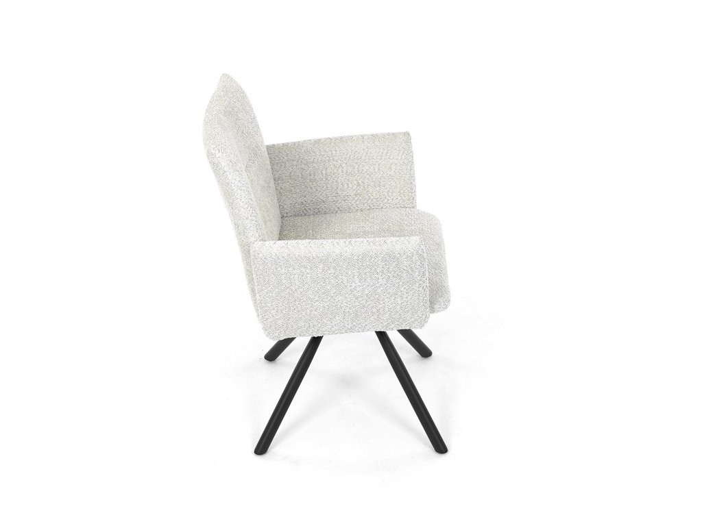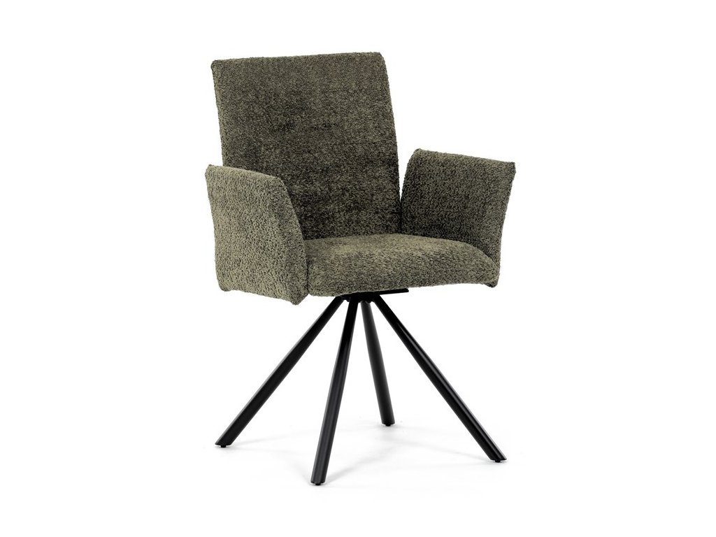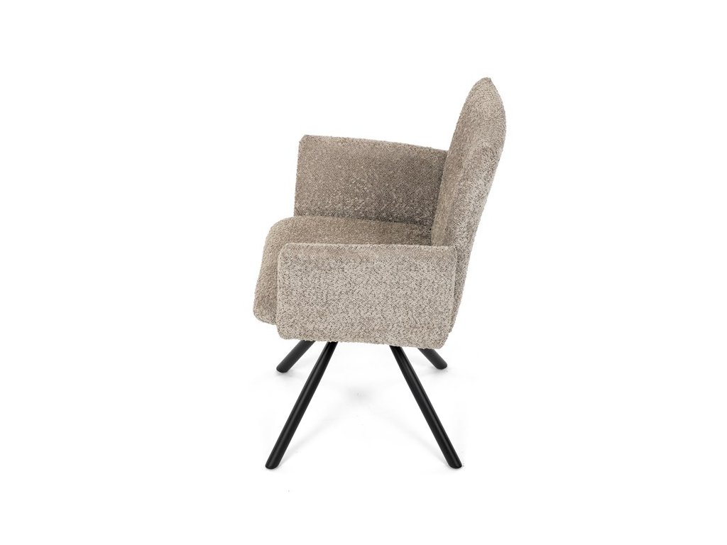 Táto moderná jedálenská stolička značky Autronic v industriálnom štýle kombinuje pohodlie s funkčnosťou. Otočná stolička s robustnou kovovou podnožou je vybavená pohodlnými podrúčkami a látkou Bouclé, ktorá zaisťuje príjemný a štýlový vzhľad. Polstrovanie z PU peny ponúka mäkké sedenie, zatiaľ čo otočný mechanizmus L90 ° / P90 ° s funkciou automatického vrátenia sedáku do základnej polohy umožňuje ľahké otáčanie pre maximálnu flexibilitu. Čierna kovová centrálna podnož dodáva stoličke stabilitu a moderný vzhľad. Táto stolička je ideálna pre elegantné jedálne, kde sa kombinuje komfort s moderným dizajnom.
