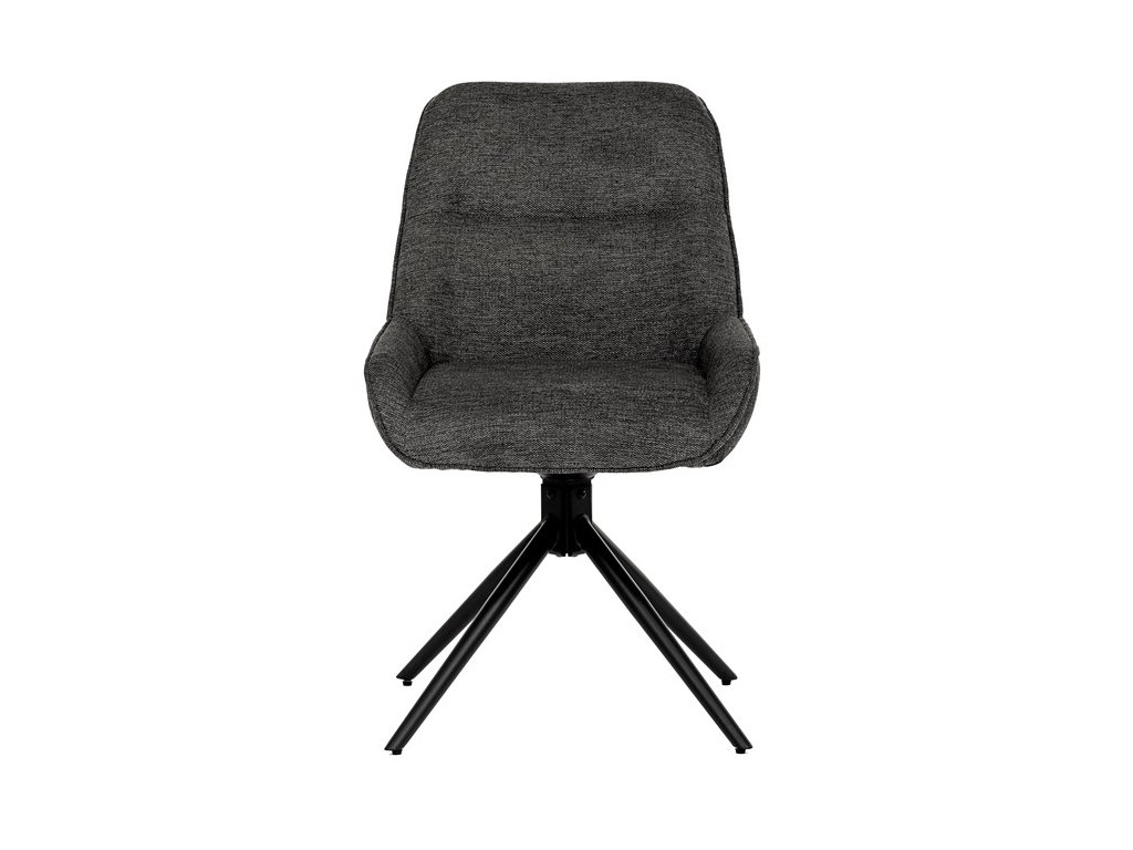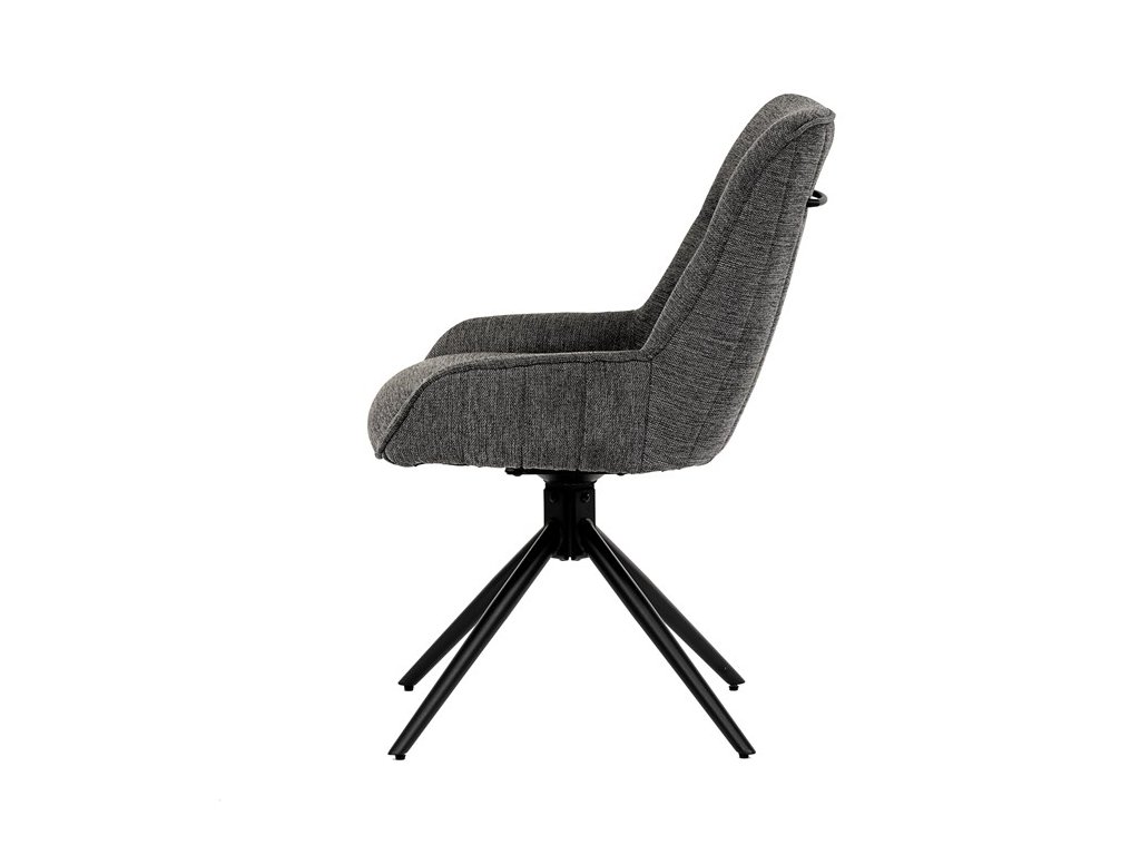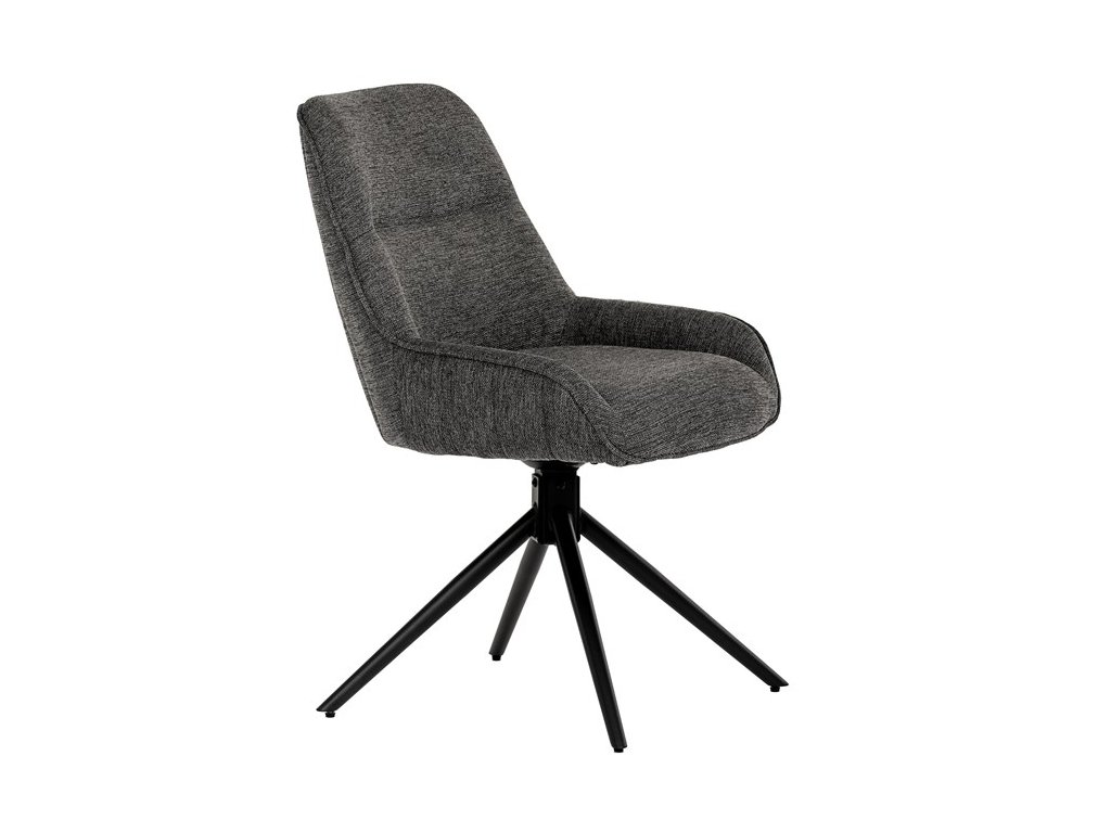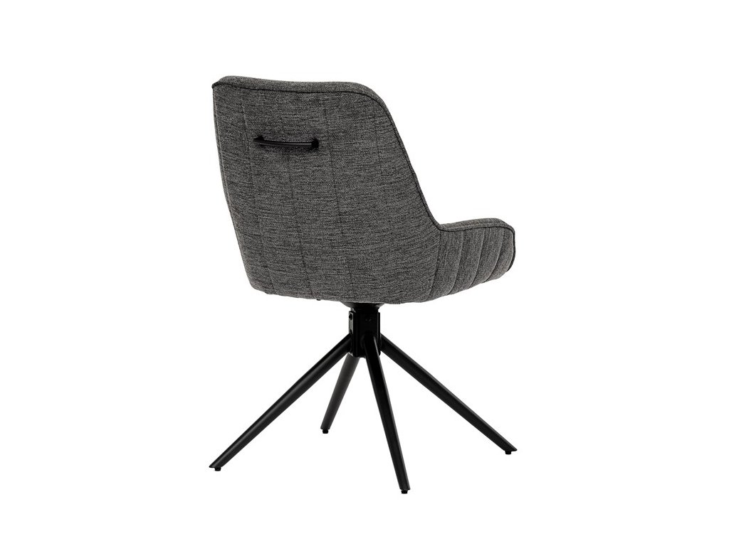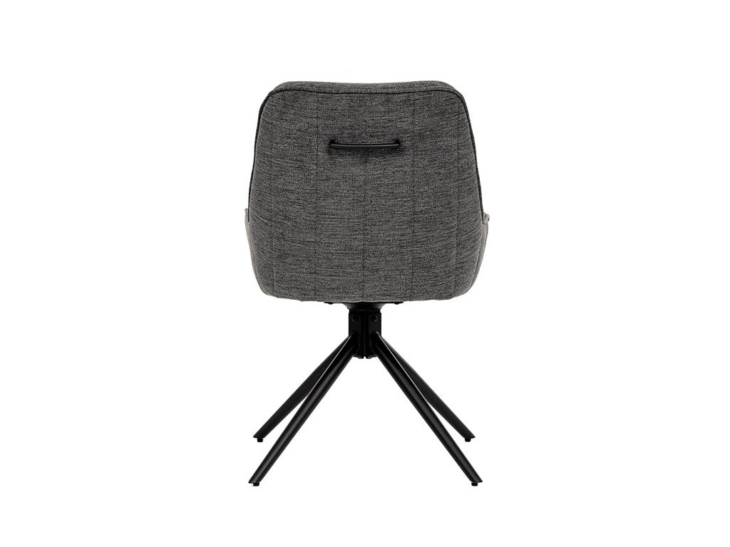 Moderná jedálenská stolička v šedej farbe s efektným prešitím chrbtovej aj prednej časti operadla. Prešitie je v brve poťahového materiálu. Zadná časť operadla je opatrená vkusným madlom pre ľahšiu manipuláciu. Štyri kovové nohy v matnom práškovom nástreku vychádzajú z centrálneho bodu v strede sedadla. Sedák je otočný P90 ° L 90 ° s vratným mechanizmom - funkcia reset.