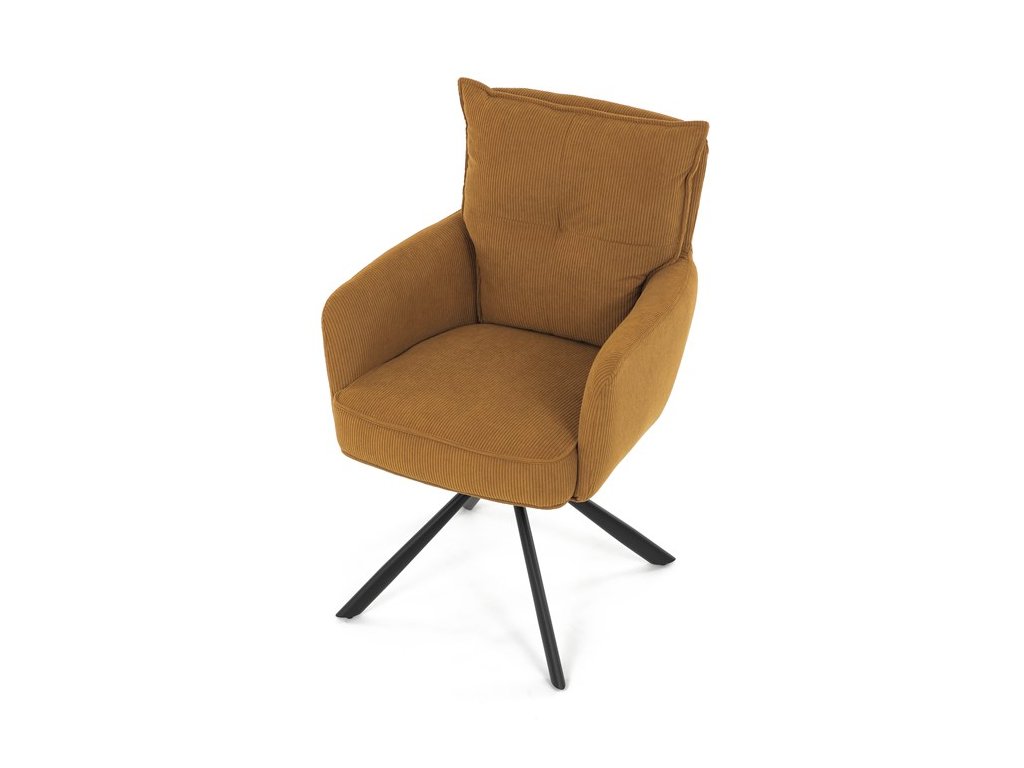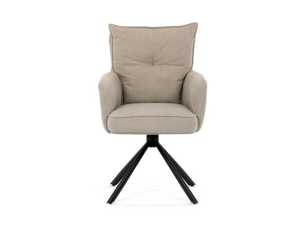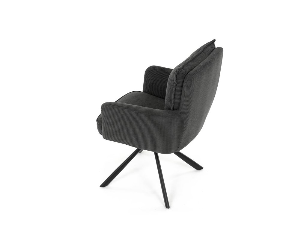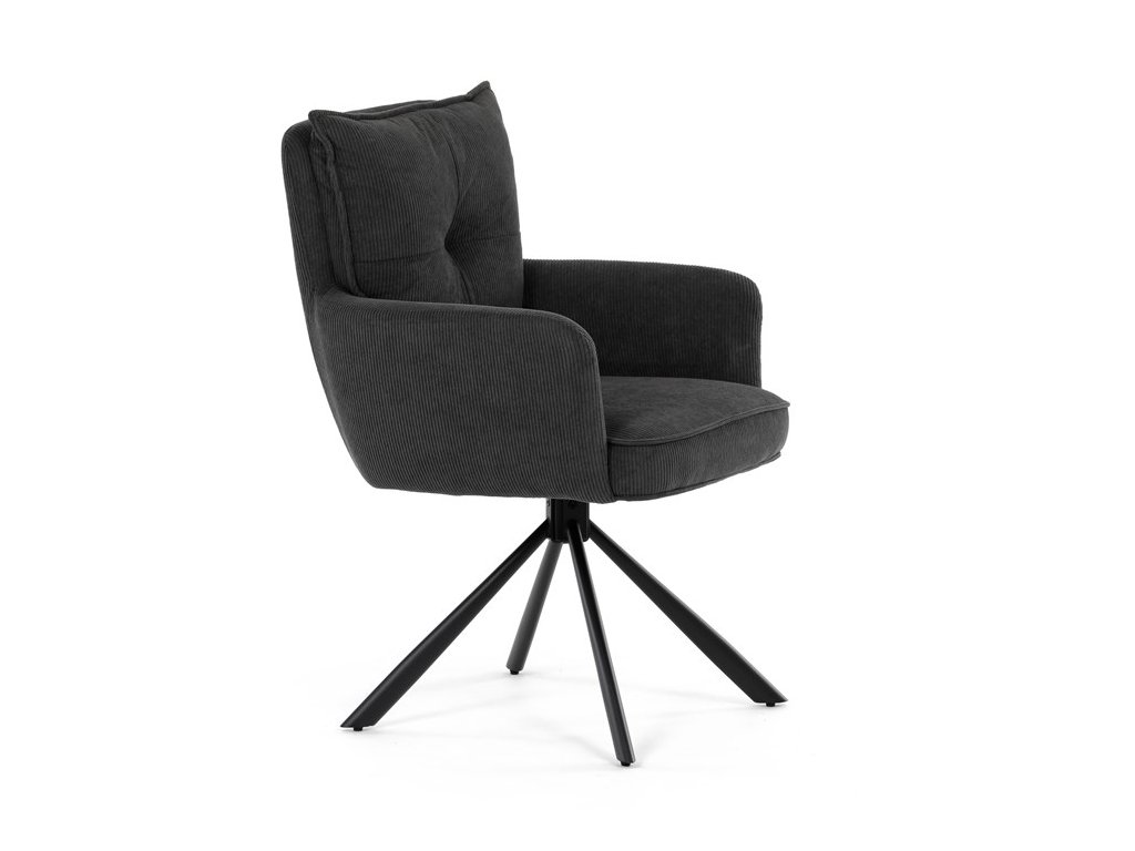 Jedálenská stolička s označením HC-X1128 GREY2 ponúka komfortné sedenie vďaka vysokému polstrovaniu sedáka a operadla potiahnutých sivou manšestrovou látkou, ktorá je príjemná na dotyk a ľahko sa udržiava. Sedák je vybavený taštičkovými pružinami, ktoré zvyšujú pohodlie a prispievajú k dlhodobej elasticite. Stolička disponuje otočnou funkciou s možnosťou otáčania o 180° a vratným mechanizmom reset, ktorý automaticky vracia stoličku do východzej polohy, čo uľahčuje manipuláciu a zvyšuje ergonómiu. Pevné čierne kovové nohy zabezpečujú stabilitu a odolnosť, pričom ich dizajn dodáva stoličke moderný vzhľad vhodný do rôznych interiérov. Podrúčky sú integrované v čalúnení, čo podporuje pohodlné opretie rúk počas sedenia.