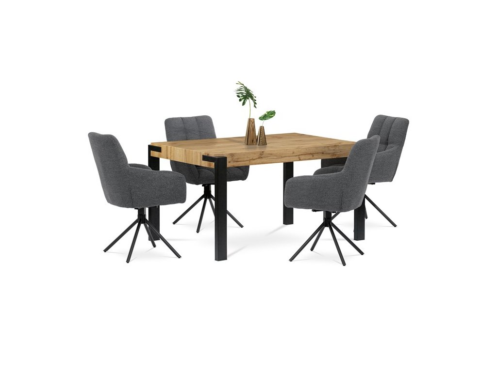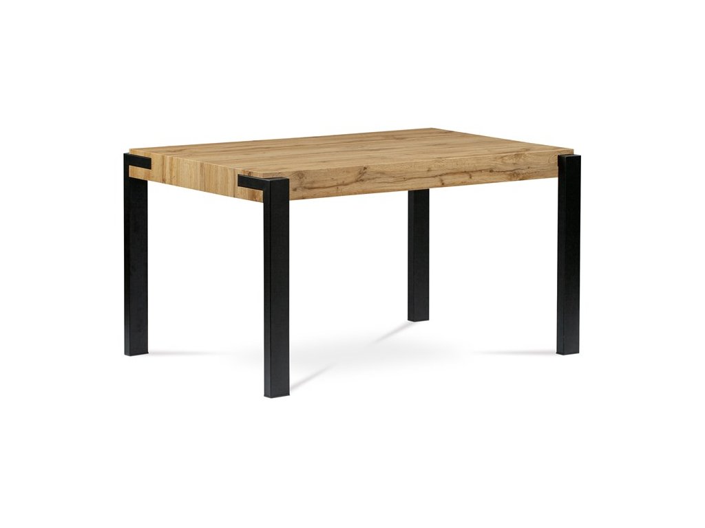 Jedálenský stôl Autronic v industriálnom štýle je perfektnou voľbou pre moderné interiéry. Kombinácia prírodného dekoru dubového dreva a čiernych kovových nôh vytvára elegantný kontrast, ktorý prináša do vašej jedálne nielen praktickosť, ale aj estetický zážitok. Robustná doska z MDF s matnou povrchovou úpravou zaručuje dlhú životnosť a jednoduchú údržbu. Stôl je ideálny pre rodinné večere alebo stretnutia s priateľmi, kde oceníte jeho stabilitu a dostatok priestoru. Tento stôl od značky Autronic dodá vášmu domovu moderný šmrnc.