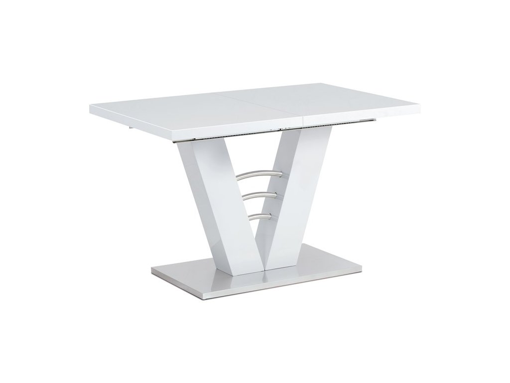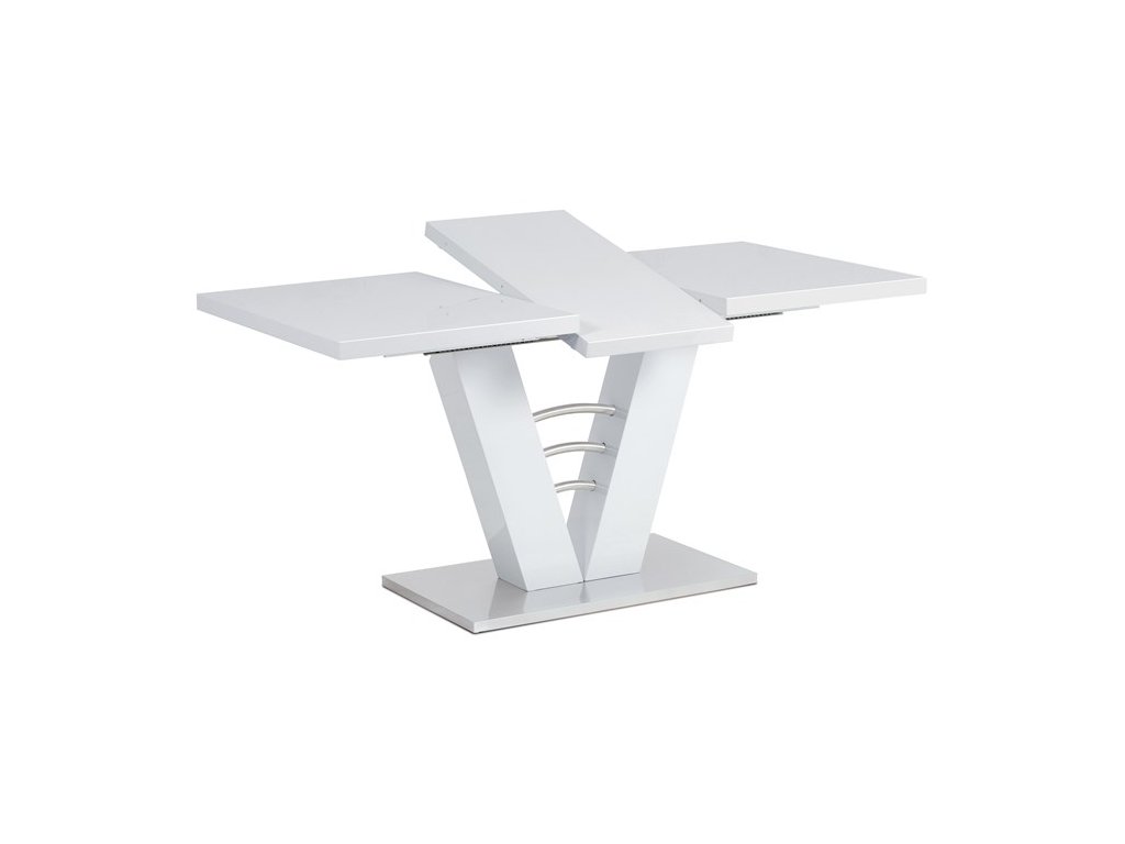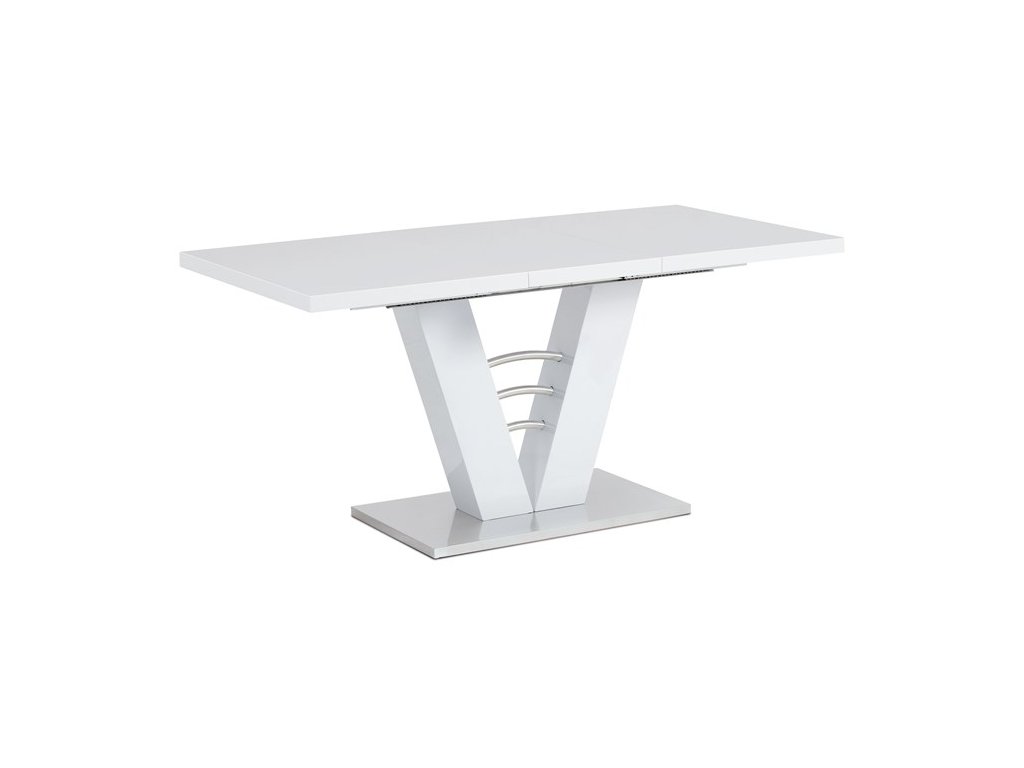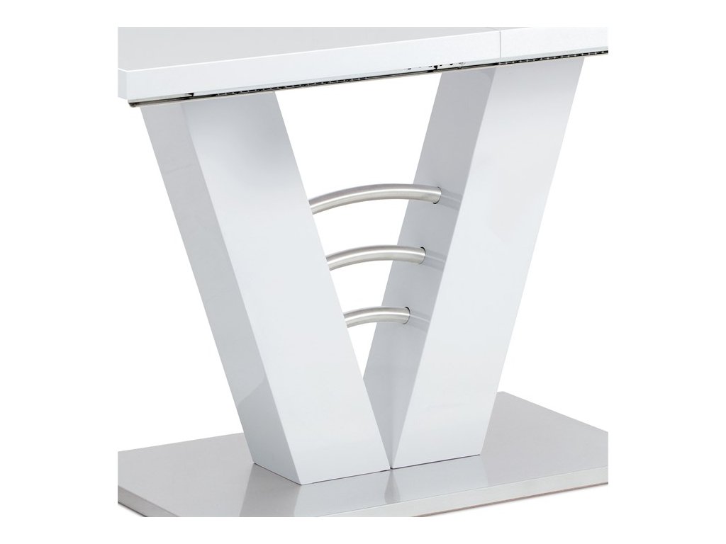 Rozkladací jedálenský stôl s rozmermi 120+40x80 cm v bielom lesklom prevedení ponúka moderný dizajn a praktickú funkciu rozkladu. Doska stola je vyrobená z MDF s lesklou povrchovou úpravou, ktorá zabezpečuje jednoduchú údržbu a odolnosť proti poškriabaniu. Stabilné nohy sú taktiež z MDF a doplnené o dekoratívne prvky z brúseného nerezu, ktoré podčiarkujú súčasný vzhľad stola. Mechanizmus rozkladu umožňuje jednoduché a plynulé zväčšenie pracovnej plochy o 40 cm, čo oceníte pri väčších rodinných stretnutiach alebo návštevách. Pevná konštrukcia a kvalitné materiály zaručujú stabilitu a dlhú životnosť nábytku.