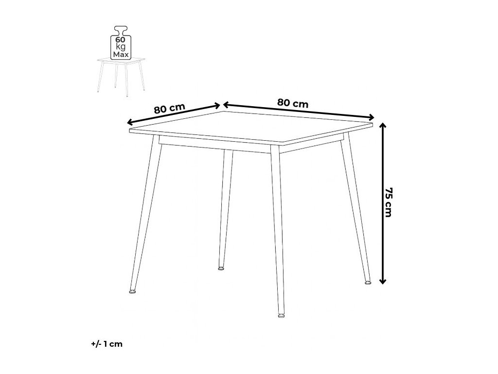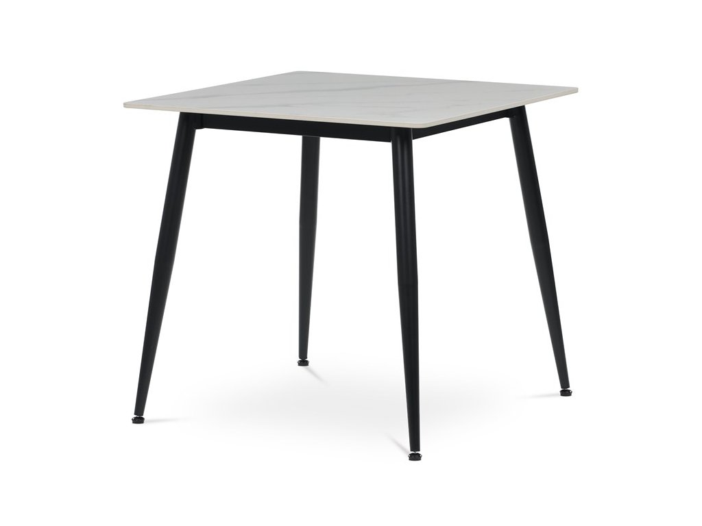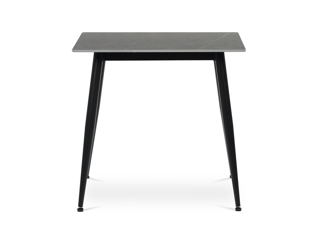 Jedálenský stôl s rozmermi 80x80 cm a keramickou doskou v šedom mramorovom dekore prináša moderné a odolné riešenie do každej jedálne. Doska je vyrobená z matnej keramiky, ktorá sa ľahko udržiava a je odolná voči poškriabaniu aj vysokým teplotám. Stabilné kovové nohy v čiernom prevedení sú vybavené rektifikačnými pätkami, ktoré umožňujú vyrovnanie nerovností podlahy a zabezpečujú pevnú oporu. Minimalistický dizajn s tenkou doskou a mierne skosenými nohami zdôrazňuje súčasný štýl nábytku. Nosnosť stola zodpovedá bežnému používaniu v domácnosti aj menších prevádzkach.
