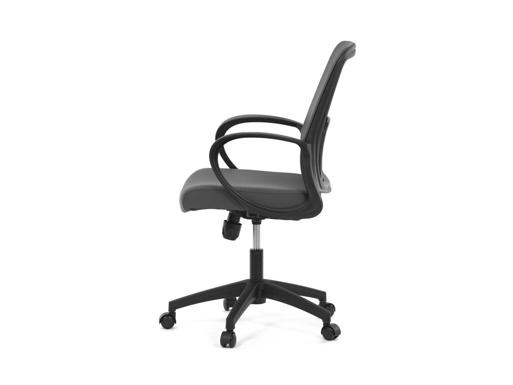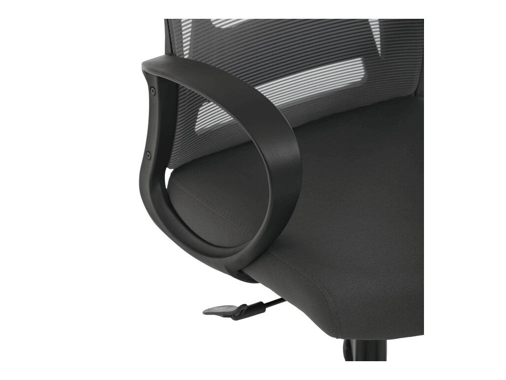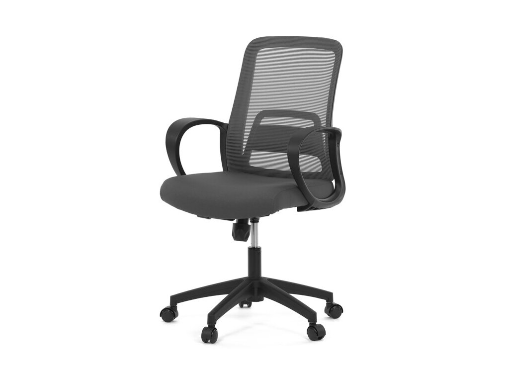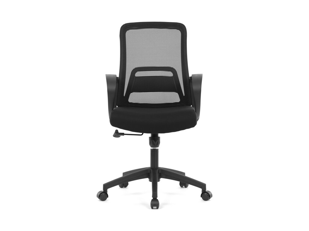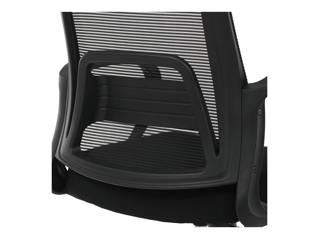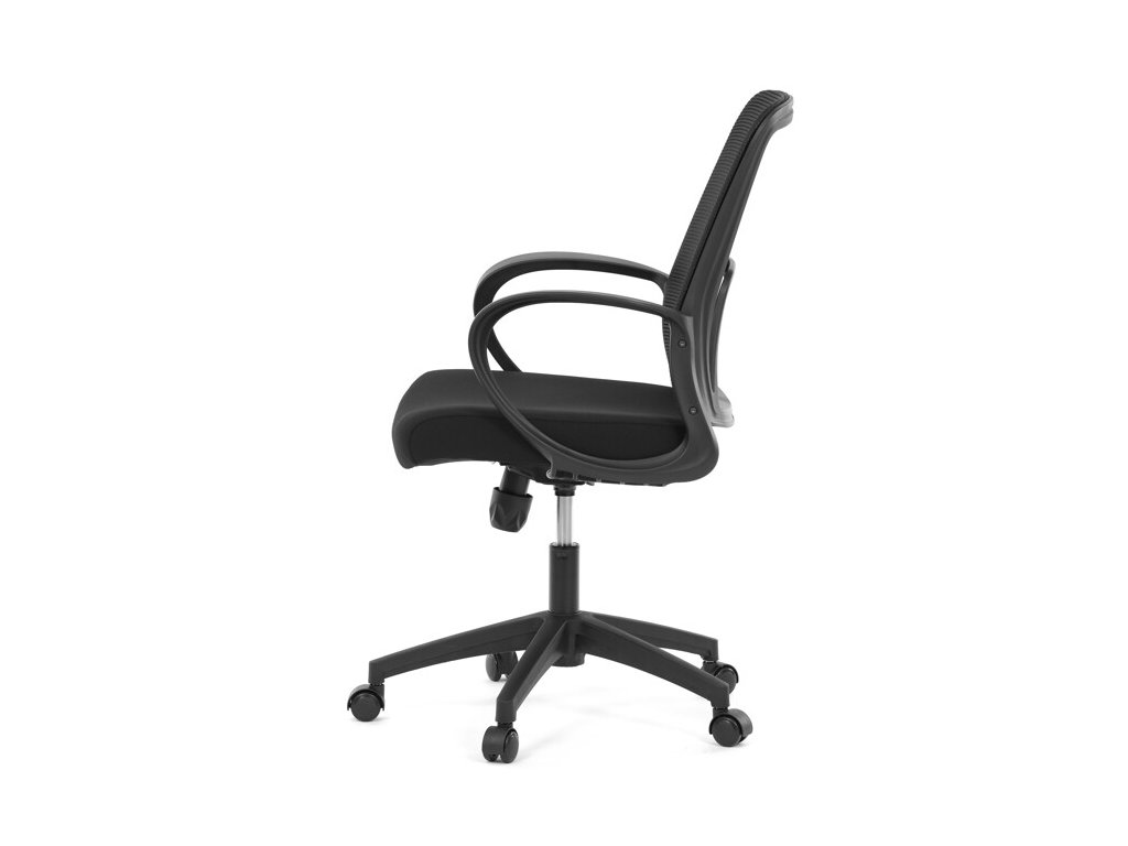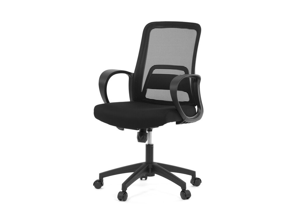 Kancelárska stolička s čiernym sieťovaným operadlom ponúka priedušné sedenie, ktoré podporuje cirkuláciu vzduchu počas dlhých pracovných hodín. Pevná bedrová opierka zabezpečuje správnu oporu spodnej časti chrbta, čo prispieva k ergonómii a pohodliu používateľa. Sedák je čalúnený kvalitnou látkou v čiernej farbe, ktorá je príjemná na dotyk a ľahko sa udržiava. Pevné plastové podrúčky dopĺňajú stabilný plastový kríž s kolieskami určenými na tvrdé povrchy, čo umožňuje jednoduchý pohyb bez poškodenia podlahy. Hojdací mechanizmus umožňuje nastavenie sklopenia operadla pre individuálny komfort, nosnosť stoličky je štandardná pre kancelárske použitie.