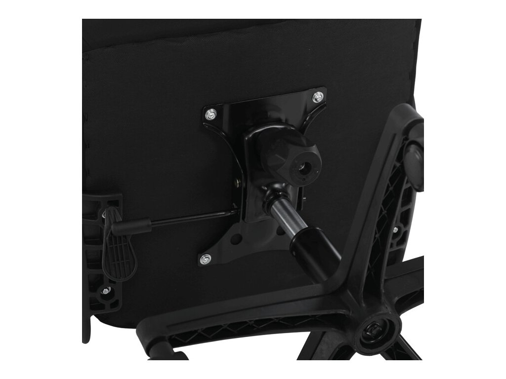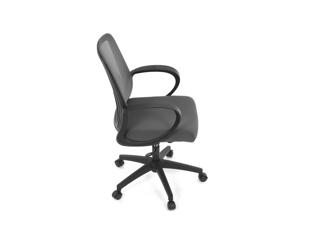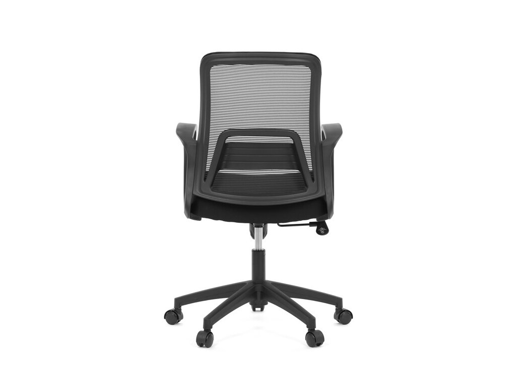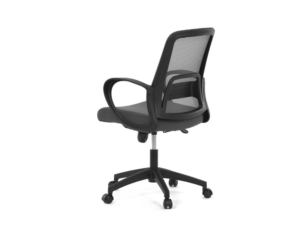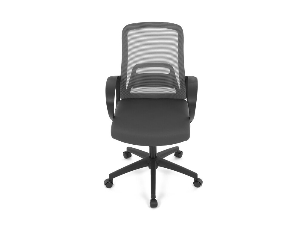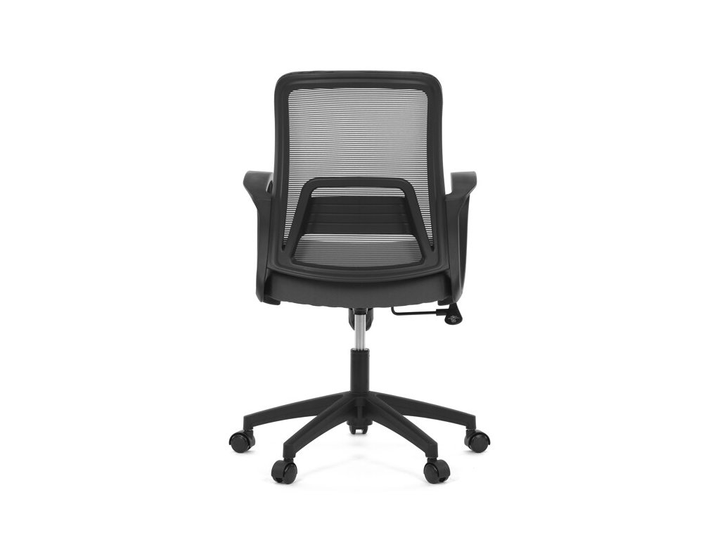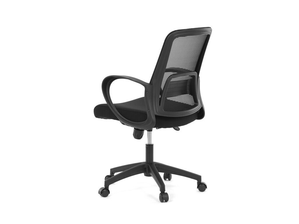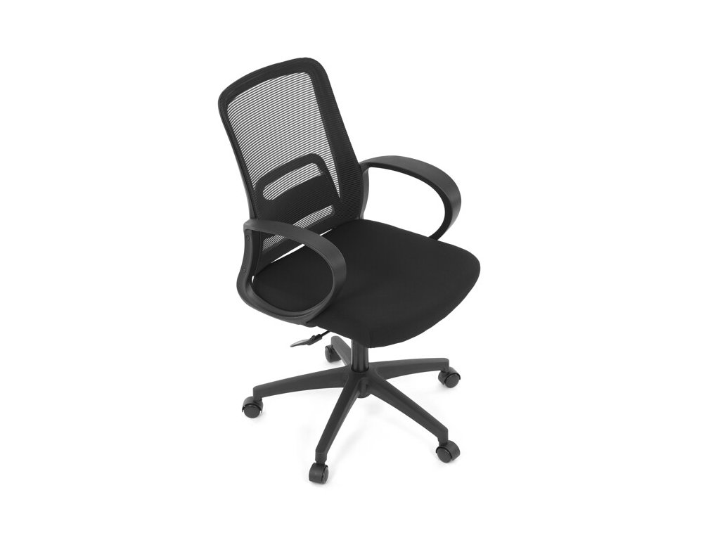 Kancelárska stolička s čiernym sieťovaným operadlom ponúka priedušné sedenie, ktoré podporuje cirkuláciu vzduchu počas dlhých pracovných hodín. Pevná bedrová opierka zabezpečuje správnu oporu spodnej časti chrbta, čo prispieva k ergonómii a pohodliu používateľa. Sedák je čalúnený kvalitnou látkou v čiernej farbe, ktorá je príjemná na dotyk a ľahko sa udržiava. Pevné plastové podrúčky dopĺňajú stabilný plastový kríž s kolieskami určenými na tvrdé povrchy, čo umožňuje jednoduchý pohyb bez poškodenia podlahy. Hojdací mechanizmus umožňuje nastavenie sklopenia operadla pre individuálny komfort, nosnosť stoličky je štandardná pre kancelárske použitie.