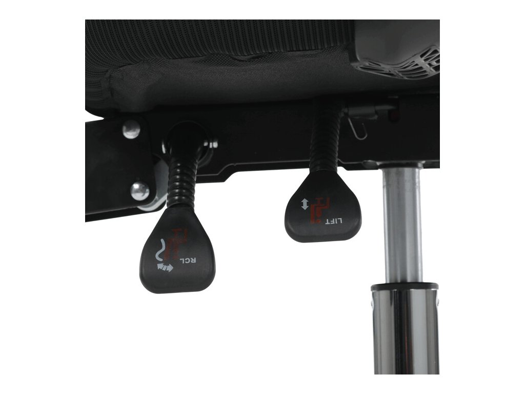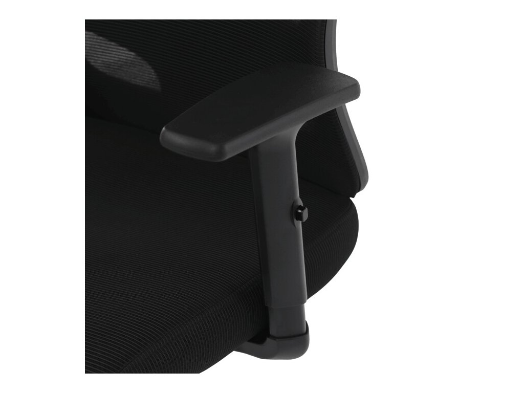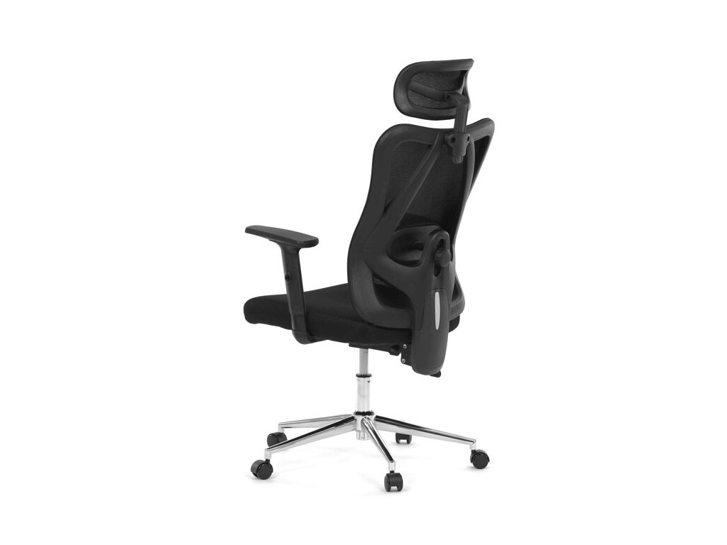 Kancelárska stolička s označením KA-R216 BK ponúka komfortné sedenie vďaka čiernemu poťahu z priedušnej sieťoviny mesh, ktorý zaisťuje optimálnu cirkuláciu vzduchu. Operadlo je vybavené nastaviteľným podhlavníkom a bedrovou opierkou, ktoré podporujú správne držanie tela počas dlhých pracovných hodín. Stolička disponuje výškovo nastaviteľným mechanizmom s polohovaním operadla. Pevný hliníkový kríž zaručuje stabilitu a odolnosť, zatiaľ čo jednosmerne nastaviteľné 1D podrúčky prispievajú k ergonómii a pohodliu. Celková konštrukcia je navrhnutá pre dlhú životnosť a nosnosť zodpovedajúcu bežným kancelárskym požiadavkám.