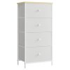 Komoda s rozmermi 45x30x92 cm kombinuje pevnú MDF dosku s matnou povrchovou úpravou v bielej farbe a stabilnú kovovú konštrukciu nôh. Štyri priestranné zásuvky z netkanej textílie v sivom odtieni poskytujú praktický úložný priestor pre rôzne drobnosti a zároveň uľahčujú organizáciu. Jednoduchý dizajn s decentnými bielymi úchytkami ladí s moderným aj škandinávskym štýlom interiéru. Komoda je navrhnutá tak, aby bola ľahká a zároveň dostatočne pevná pre každodenné použitie. Vďaka kompaktným rozmerom sa hodí do menších priestorov, kde je potrebné efektívne využiť miesto.