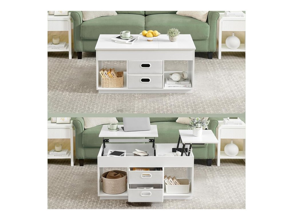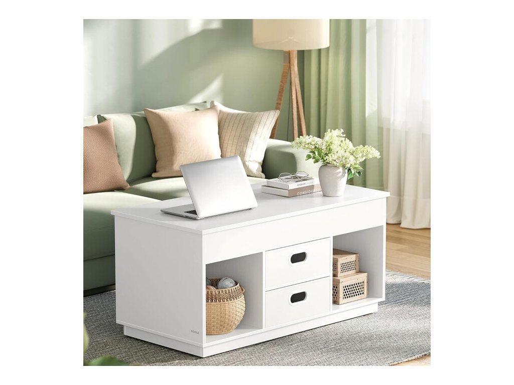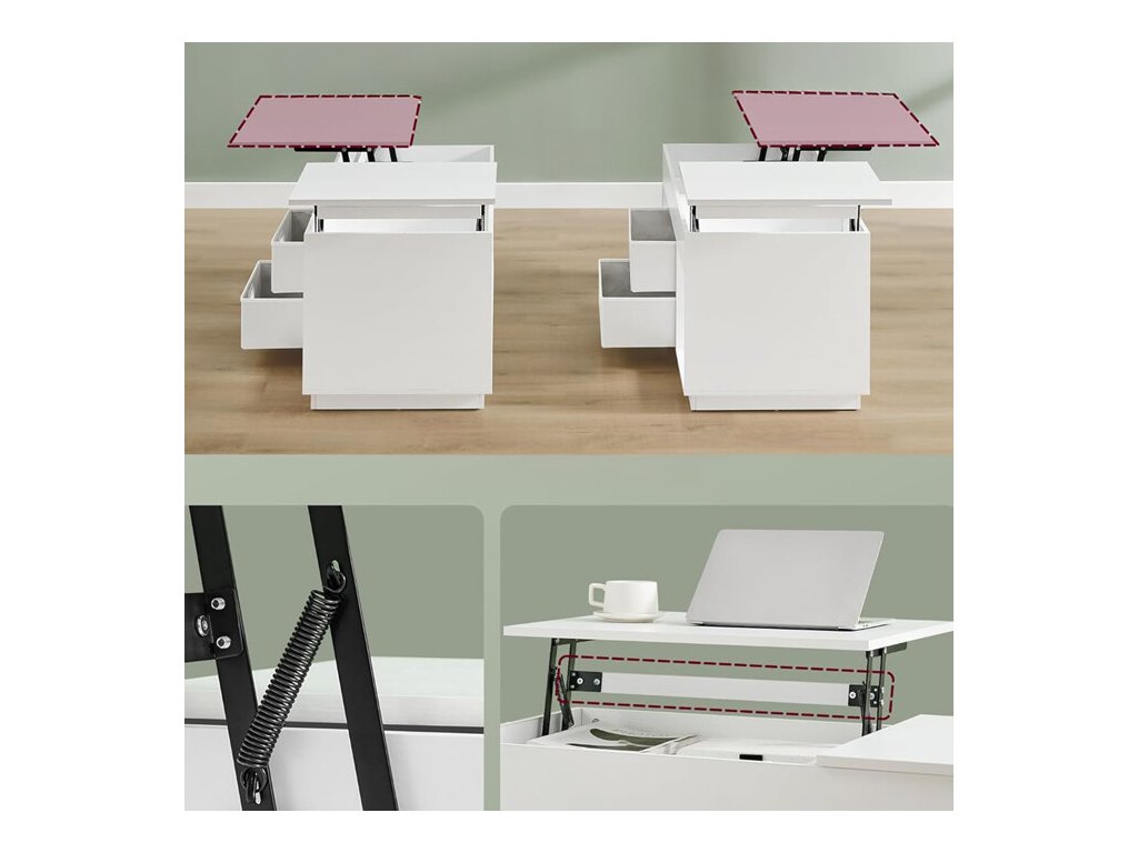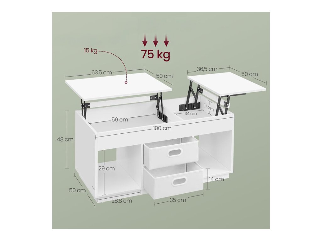 Konferenčný stôl AKF-E1021 WT ponúka praktické riešenie pre moderné obývacie priestory vďaka svojej rozkladacej funkcii a úložnému priestoru. Doska stola je vyrobená z MDF s matnou bielou povrchovou úpravou v dekore dreva, ktorá zabezpečuje odolnosť proti poškriabaniu a jednoduchú údržbu. Stôl disponuje dvoma výklopnými doskami, pod ktorými sa nachádzajú priestranné úložné priehradky vhodné na uloženie drobných predmetov či časopisov. Konštrukcia je stabilná a pevná, umožňuje nastavenie výšky v rozmedzí 48,5 až 62 cm, čo prispieva k ergonomickému využitiu. Rozmery 100x50 cm poskytujú dostatok pracovnej alebo odkladacej plochy, zatiaľ čo kompaktný dizajn uľahčuje začlenenie do rôznych interiérov.