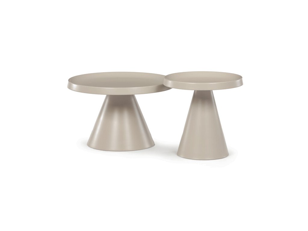 Sada dvoch konferenčných stolov v béžovom matnom prevedení ponúka kombináciu funkčnosti a moderného dizajnu. Obidve dosky aj nohy sú vyrobené z kovu, čo zabezpečuje stabilitu a dlhú životnosť, pričom povrchová úprava uľahčuje údržbu. Väčší stôl má priemer 68,5 cm a výšku 43,5 cm, menší potom priemer 49 cm a výšku 49,5 cm, čo umožňuje variabilné usporiadanie v priestore. Dekoratívne hrany dosiek podčiarkujú jednoduchý a čistý vzhľad vhodný do moderných interiérov. Pevná kovová podnož zaručuje stabilitu pri bežnom používaní.