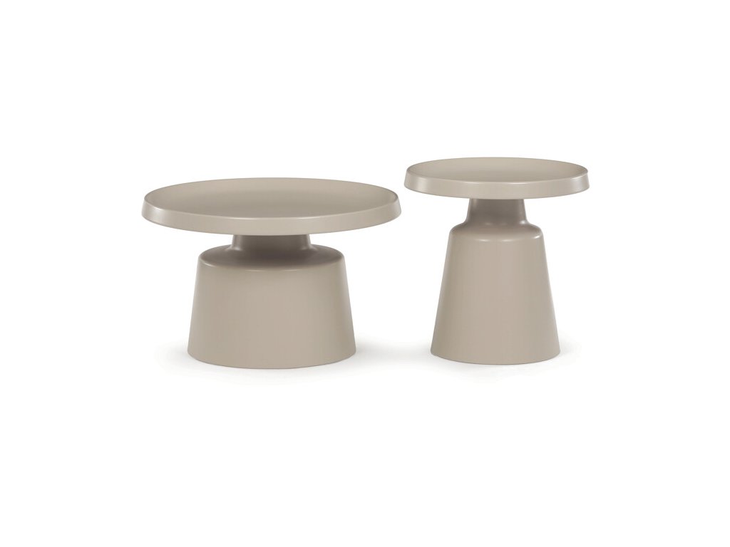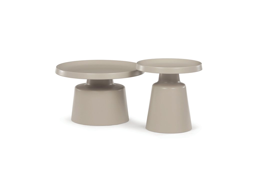 Sada dvoch konferenčných stolov v béžovom matnom prevedení ponúka kombináciu funkčnosti a moderného dizajnu. Obidve dosky aj nohy sú vyrobené z kovu, čo zabezpečuje stabilitu a pevnosť stolov. Stolíky majú dekoratívny okraj, ktorý dodáva jemný dizajnový detail, a ich povrch je ľahko udržiavateľný a odolný voči bežnému opotrebovaniu. Väčší stôl má priemer 68,5 cm a výšku 43 cm, menší stôl priemer 49 cm a výšku 50,5 cm, čo umožňuje variabilné usporiadanie v priestore. Vďaka neutrálnej béžovej farbe sa hodia do rôznych interiérov.