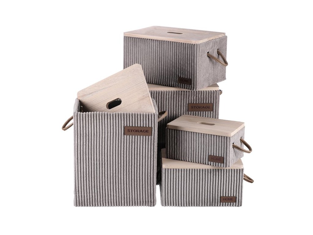 BONTEC Kôš bielizeň - látkový s vekom, sivý, cena za sadu 5 ks