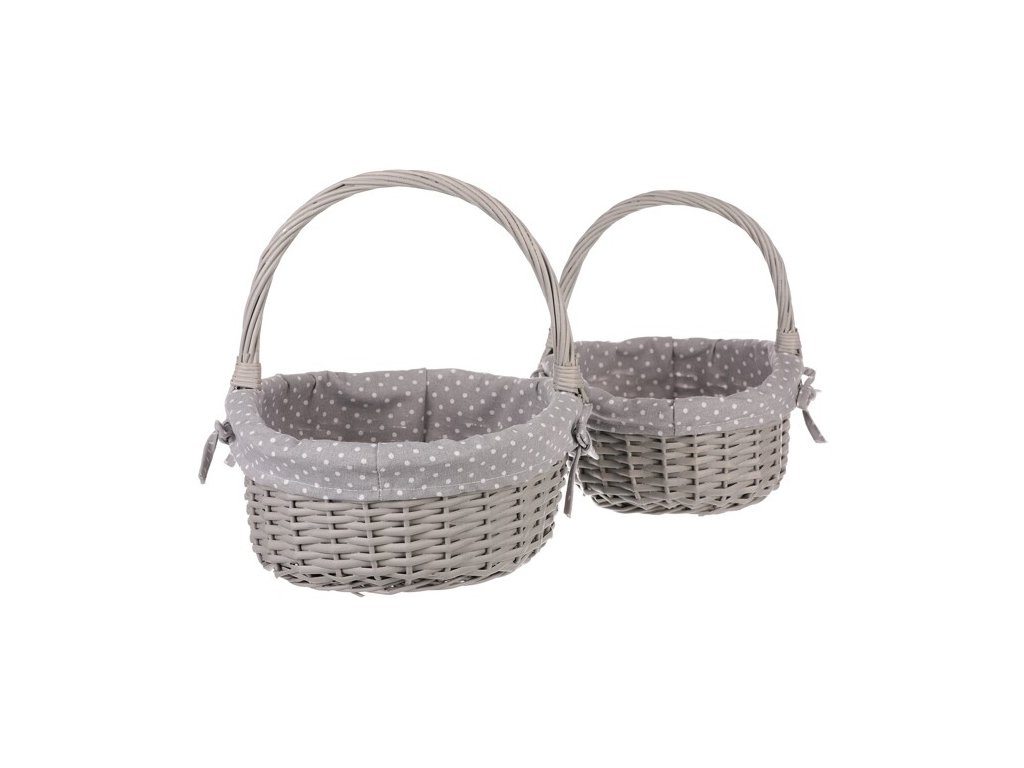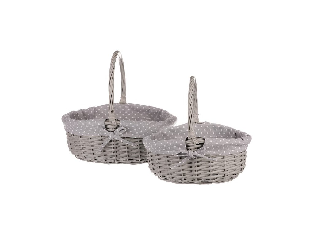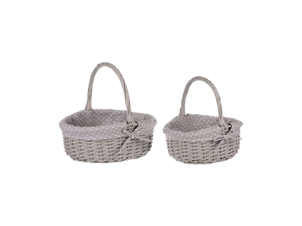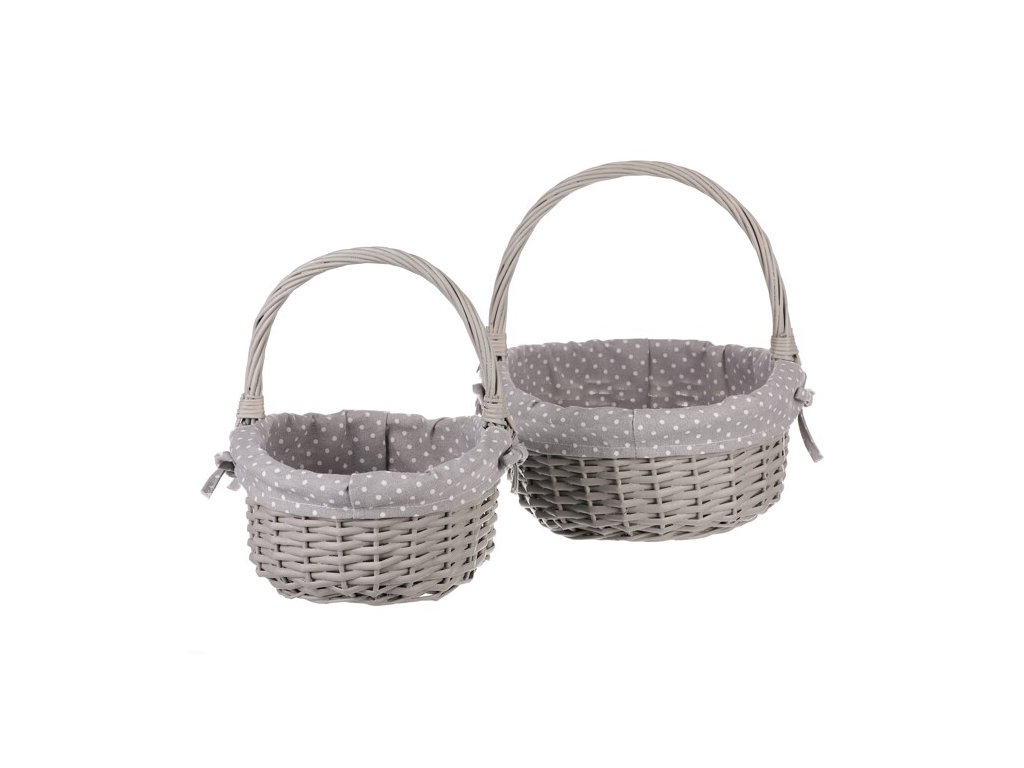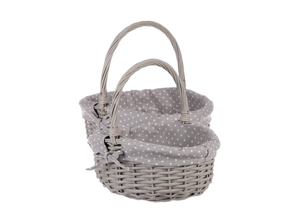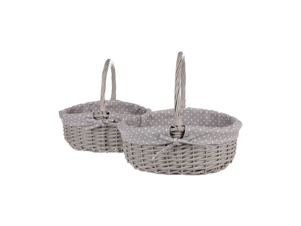 BONTEC Kôš prútený - s uchom, šedý, s látkou, cena za sadu 2 ks