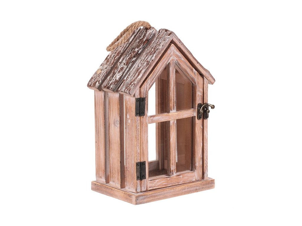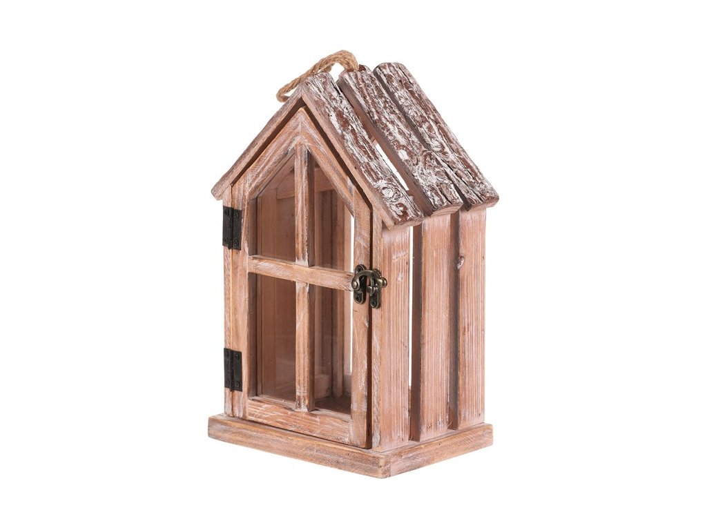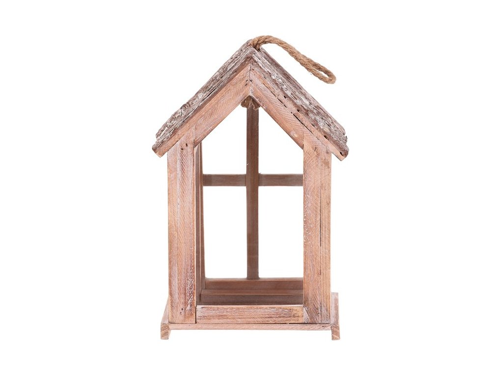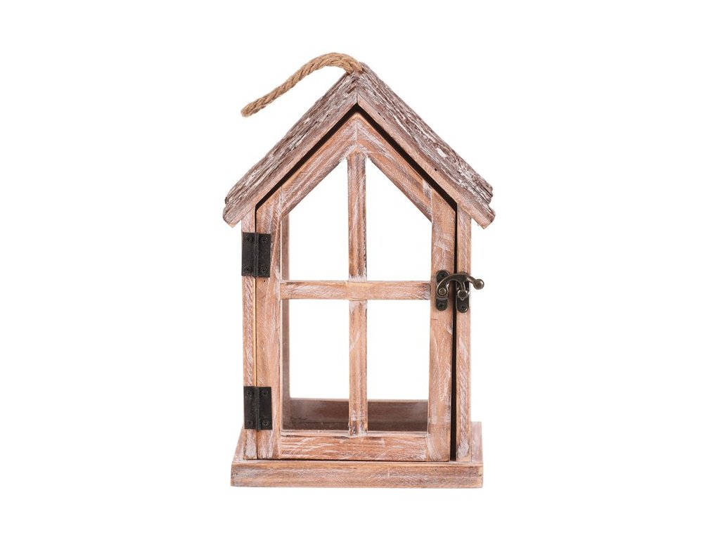 BONTEC Lucerna drevená - tvar domčeka, prírodná farba