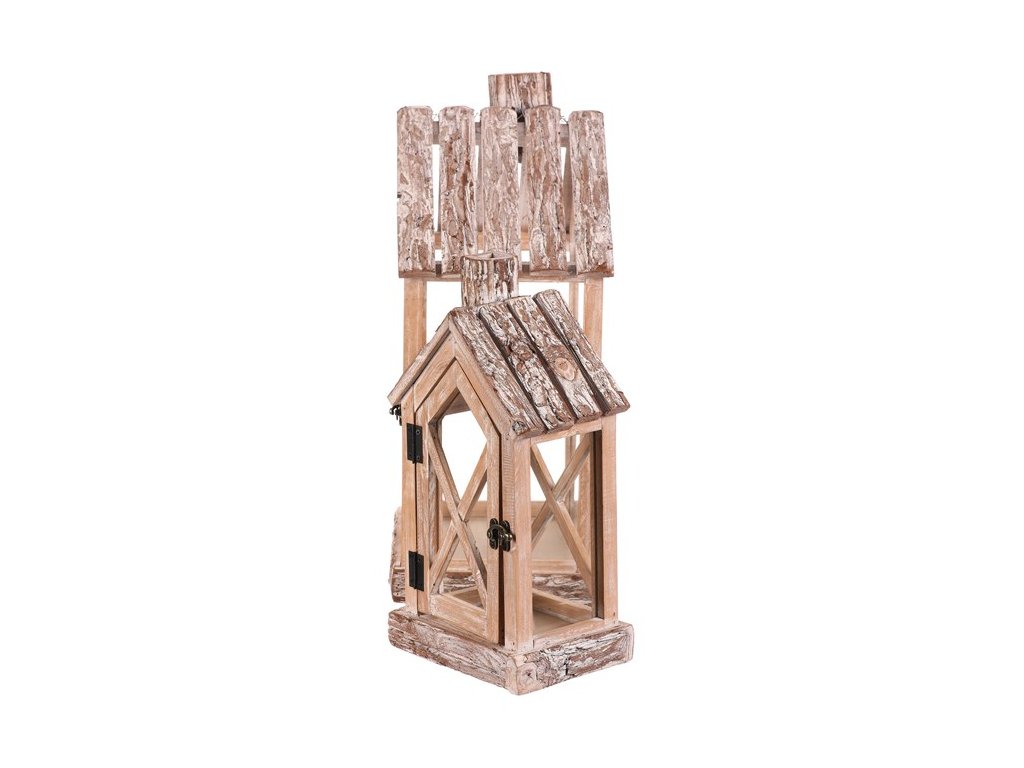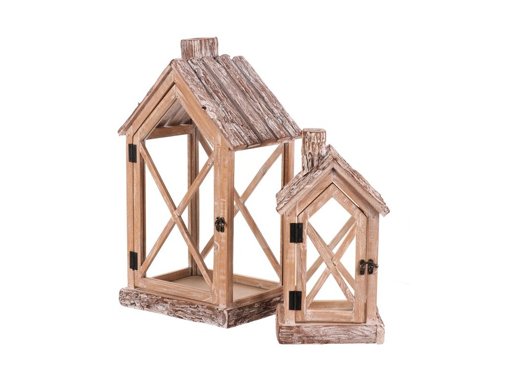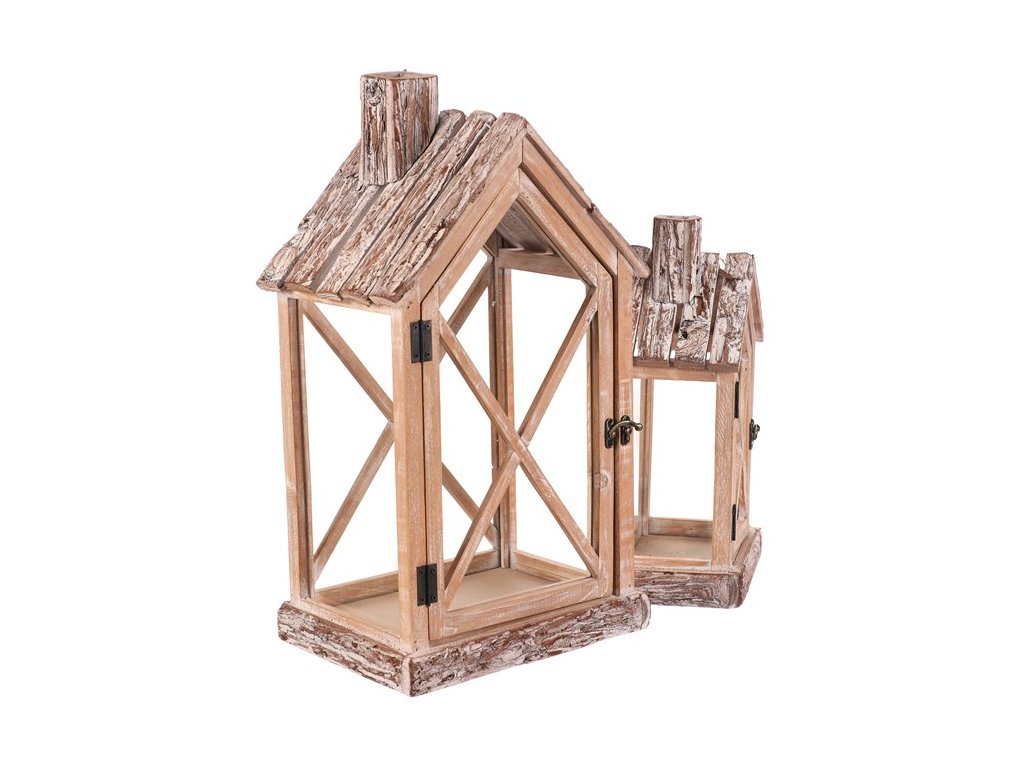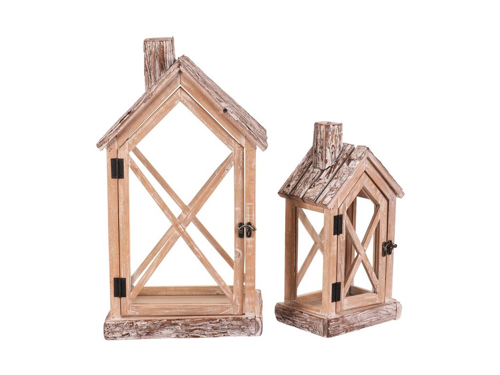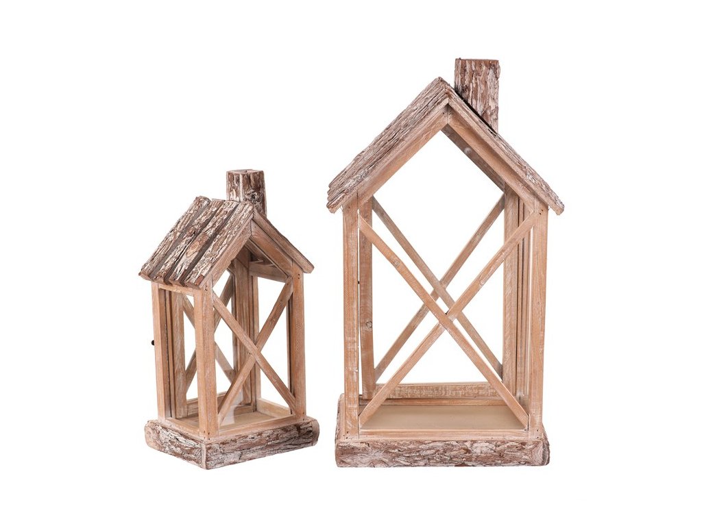 BONTEC Lucerna drevená - tvar domčeka s komínom, cena za sadu 2 ks