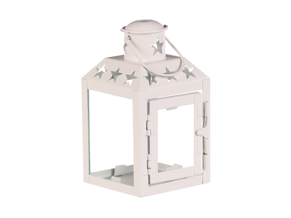 BONTEC Lucerna mini - kovová, strieška s hviezdami, biela