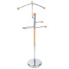 Praktický nemý sluha v klasickom dizajne. Konštrukcia je kombináciou kovových trubiek s kovovou podestou a masívneho dreva. Povrchová úprava je v lesklom chróme a prírodného odtieňa kaučukovníkového masívu. Výška 112 cm Vám umožní zavesenie oblečenia aj doplnkov bez pokrčenia. Nosnosť stojana je až 5 kg, hmotnosť necelých 5 kg. Preto je jednoducho prenositeľný a je možné ho umiestniť podľa momentálnej potreby aj nálady. Štýlom a jednoduchosťou sa hodí do akéhokoľvek interiéru. Využitie je nepreberné, záleží len na Vás.