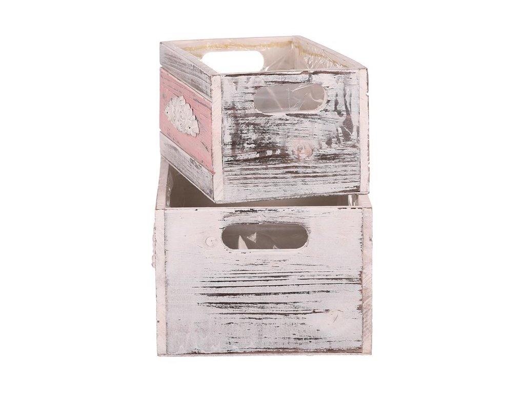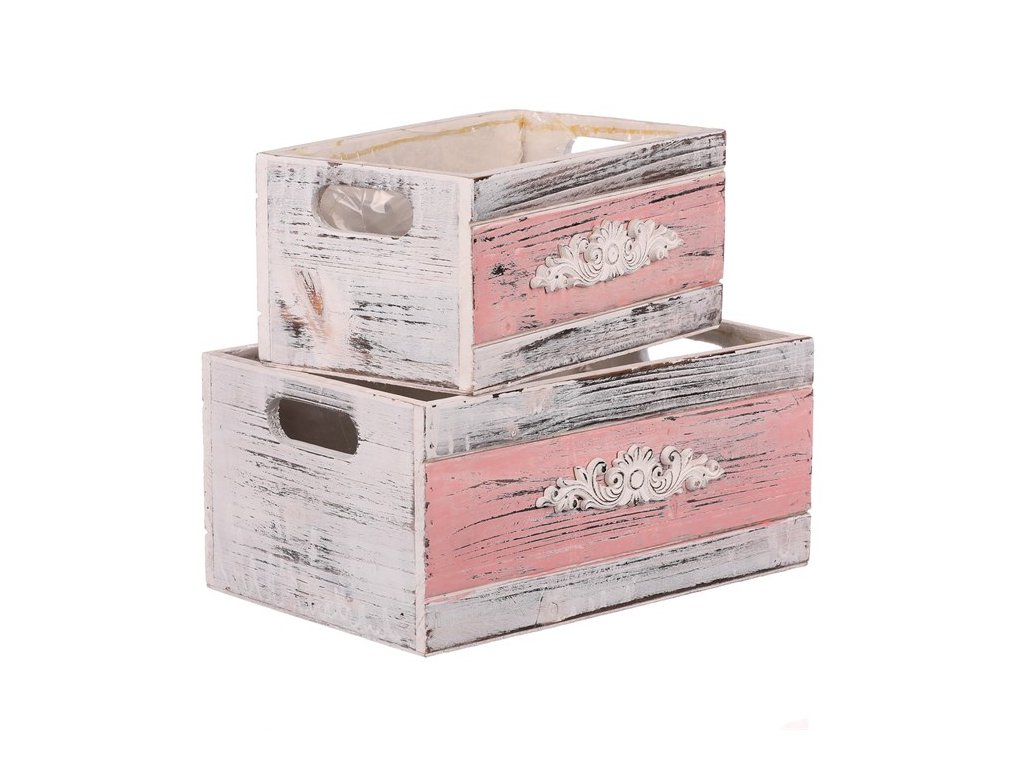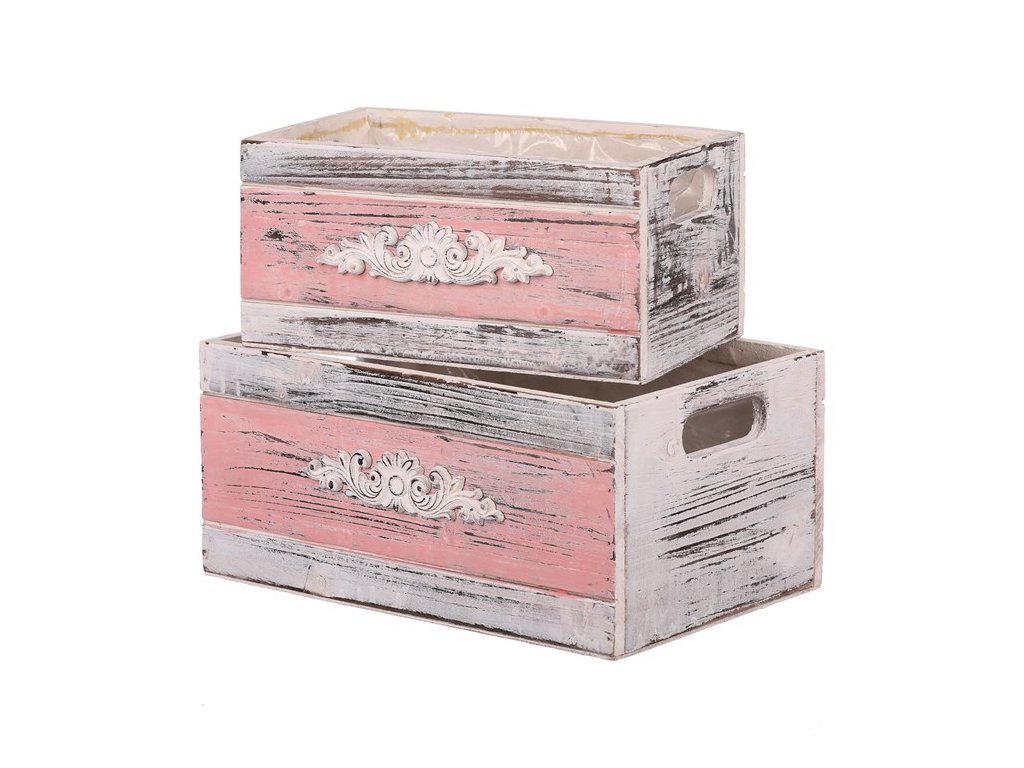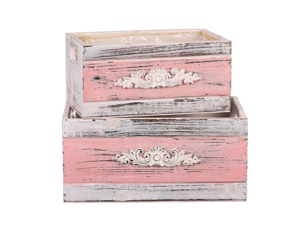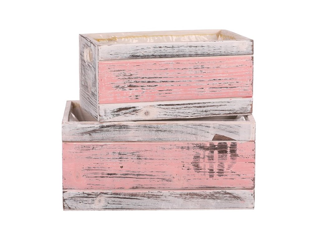 BONTEC Obal na kvety, drevený - tvar šuplíka, ružový, cena za sadu 2 ks