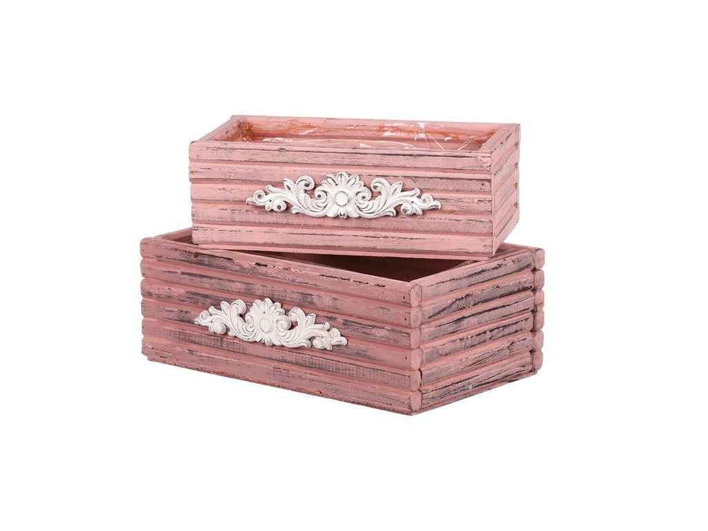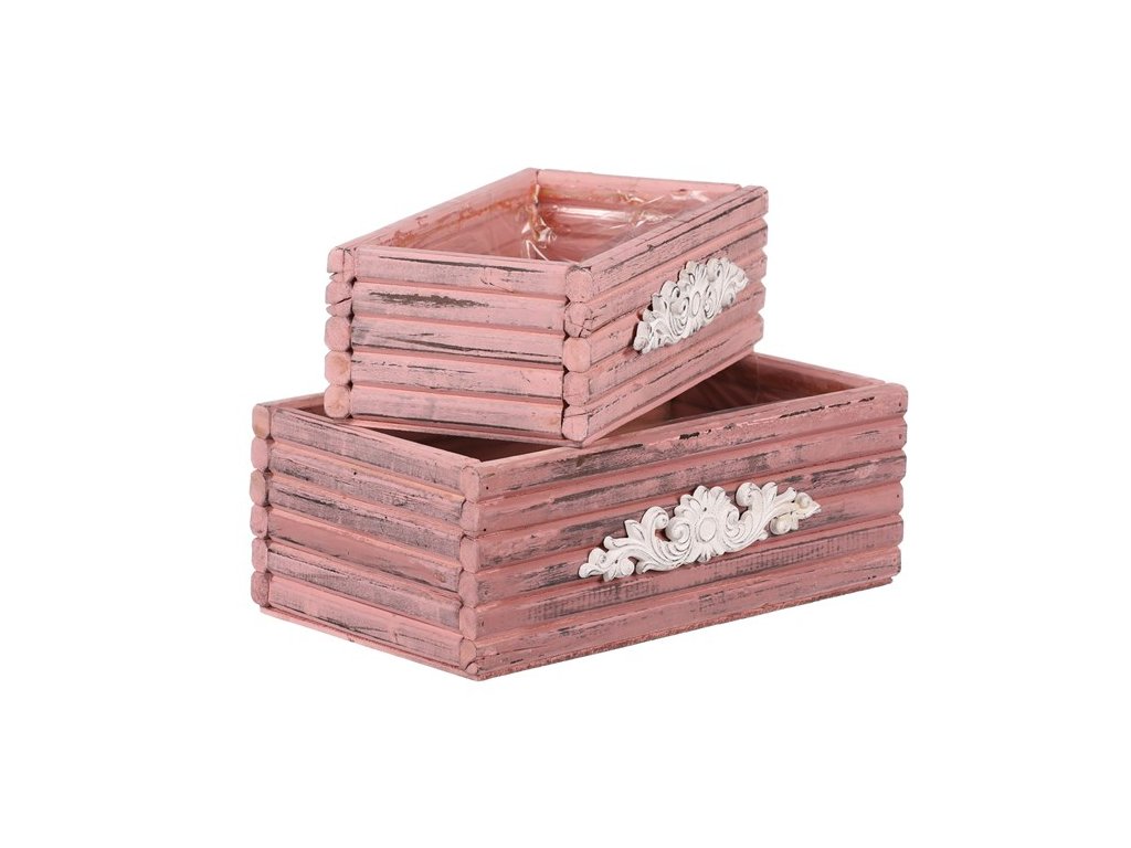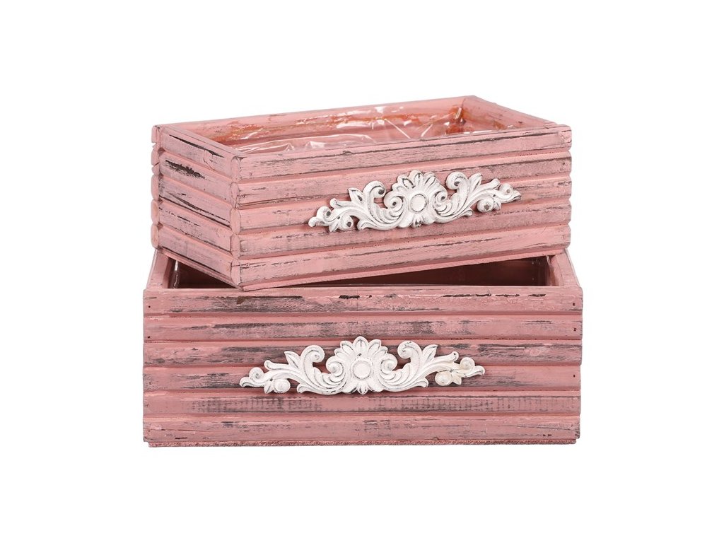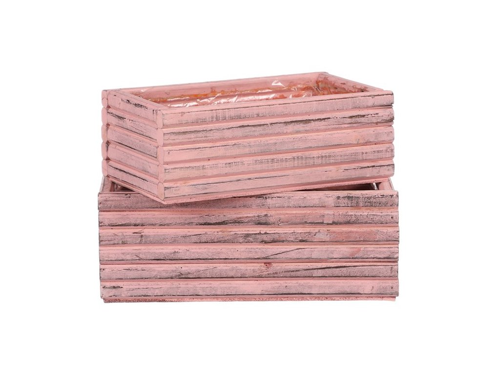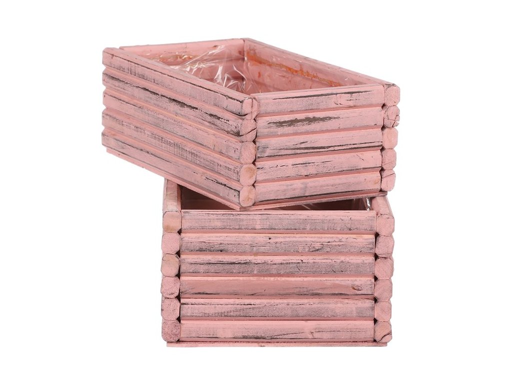 BONTEC Obal na kvety, drevený - tvar šuplíka, ružový, cena za sadu 2 ks