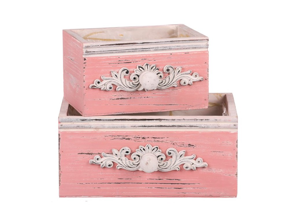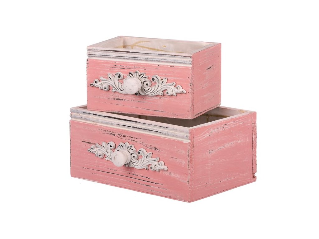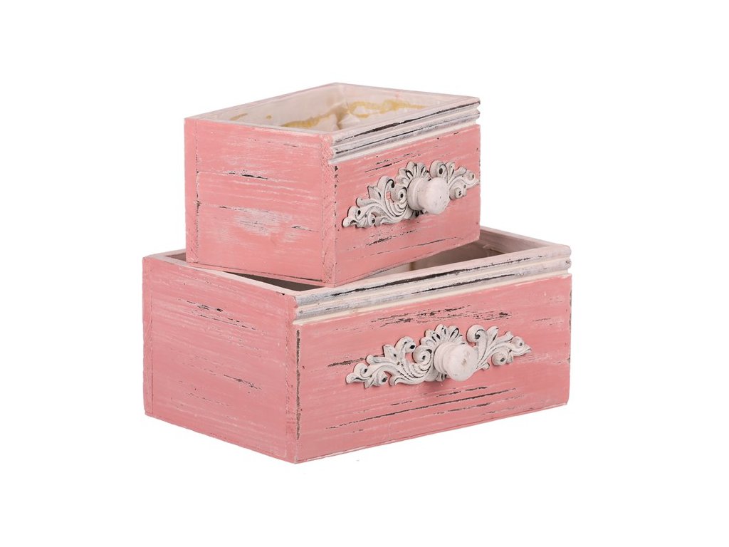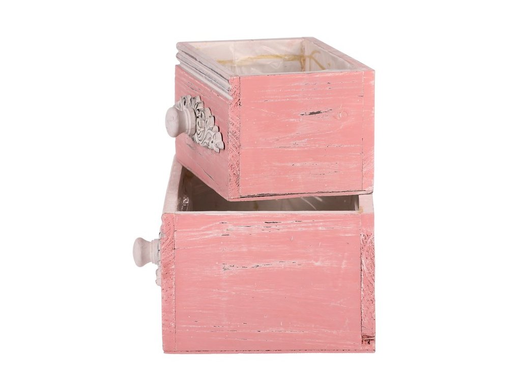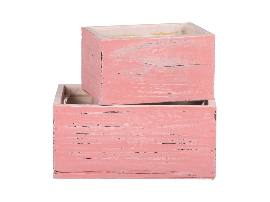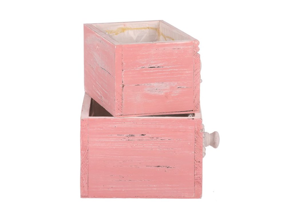 BONTEC Obal na kvety, drevený - tvar šuplíka, ružový, cena za sadu 2 ks