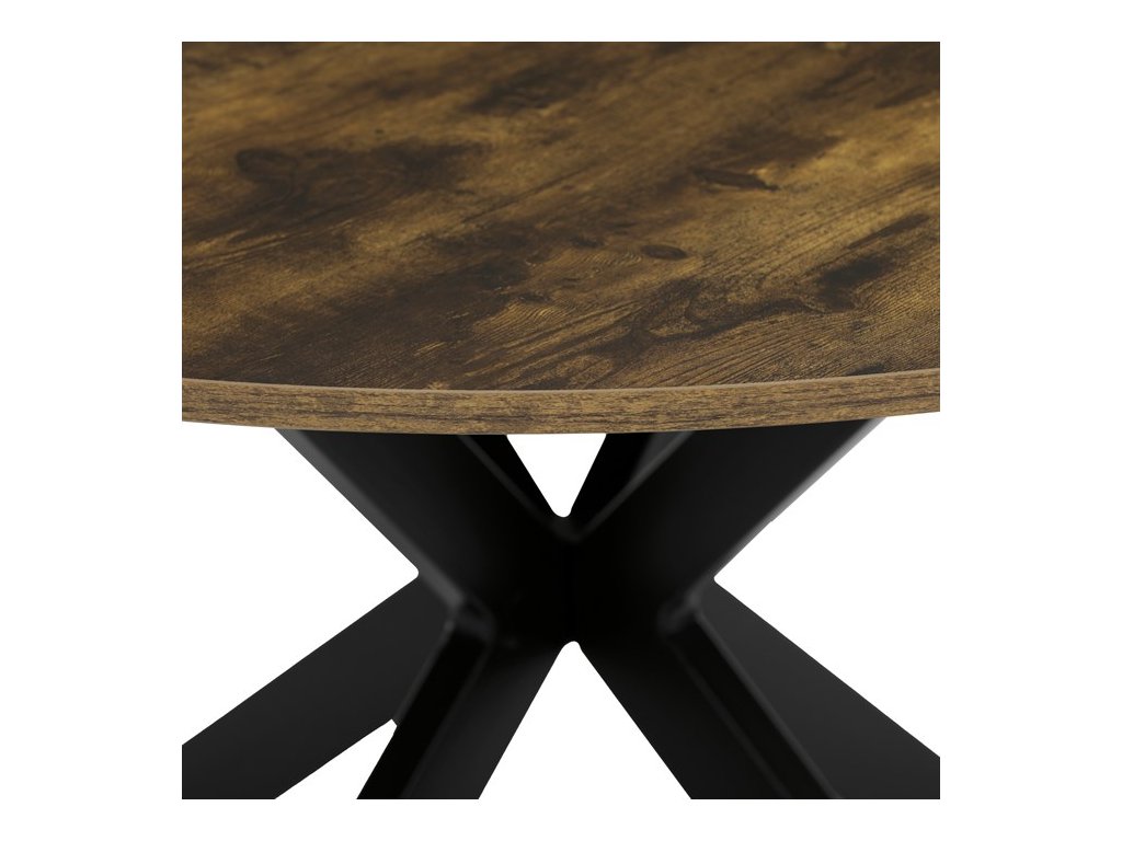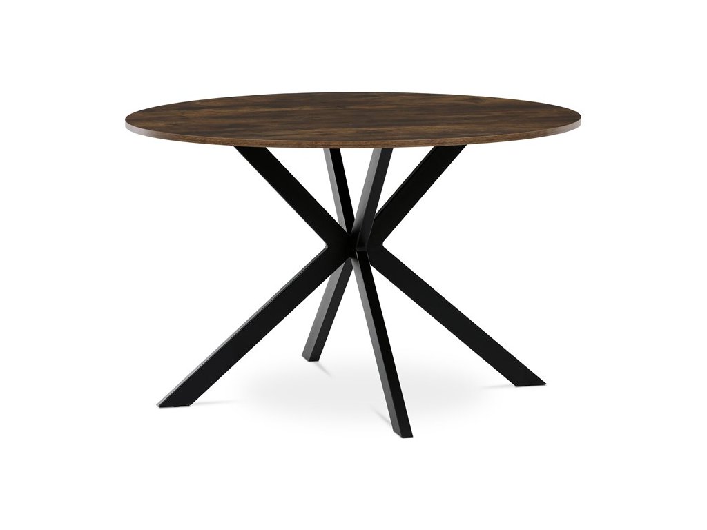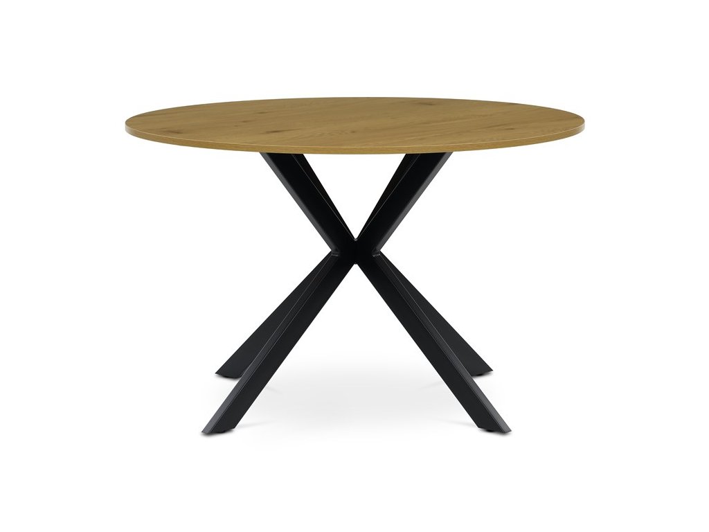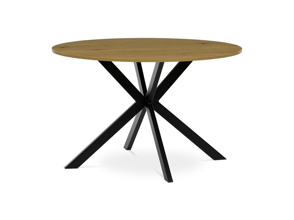 Moderný okrúhly jedálenský stôl značky Autronic je skvelou voľbou pre priestranné jedálne aj menšie interiéry, kde sa stane štýlovým stredobodom. Doska z MDF v dekore divokého duba dodáva stolu prírodný vzhľad a teplý charakter, zatiaľ čo robustné čierne kovové nohy v industriálnom štýle zabezpečujú stabilitu a odolnosť. Vďaka svojmu nadčasovému dizajnu sa ľahko kombinuje s rôznymi typmi interiérov, od moderných po škandinávske. Ideálny na každodenné stolovanie aj stretnutia s rodinou a priateľmi.