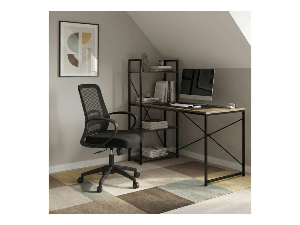 Pracovný stôl značky Autronic v industriálnom štýle kombinuje funkčnosť a moderný design. Hnedá MDF doska s dubovým dekorom a matnou úpravou prináša do interiéru teplý, prírodný vzhľad. Stabilná čierna kovová konštrukcia so štvorcovými nohami zaručuje pevnosť a odolnosť. Praktické polície po strane poskytujú dostatok úložného priestoru pre knihy, dokumenty alebo dekorácie, čo oceníte v každej pracovni. Stôl sa hodí do domácej kancelárie či pracovne a vďaka svojmu industriálnemu vzhľadu ľahko zapadne do moderných interiérov. Rozmer police: 60 x 21 cm.