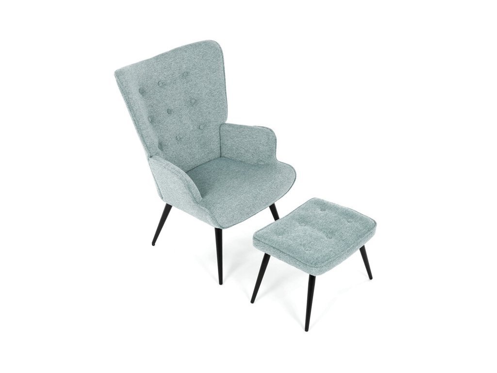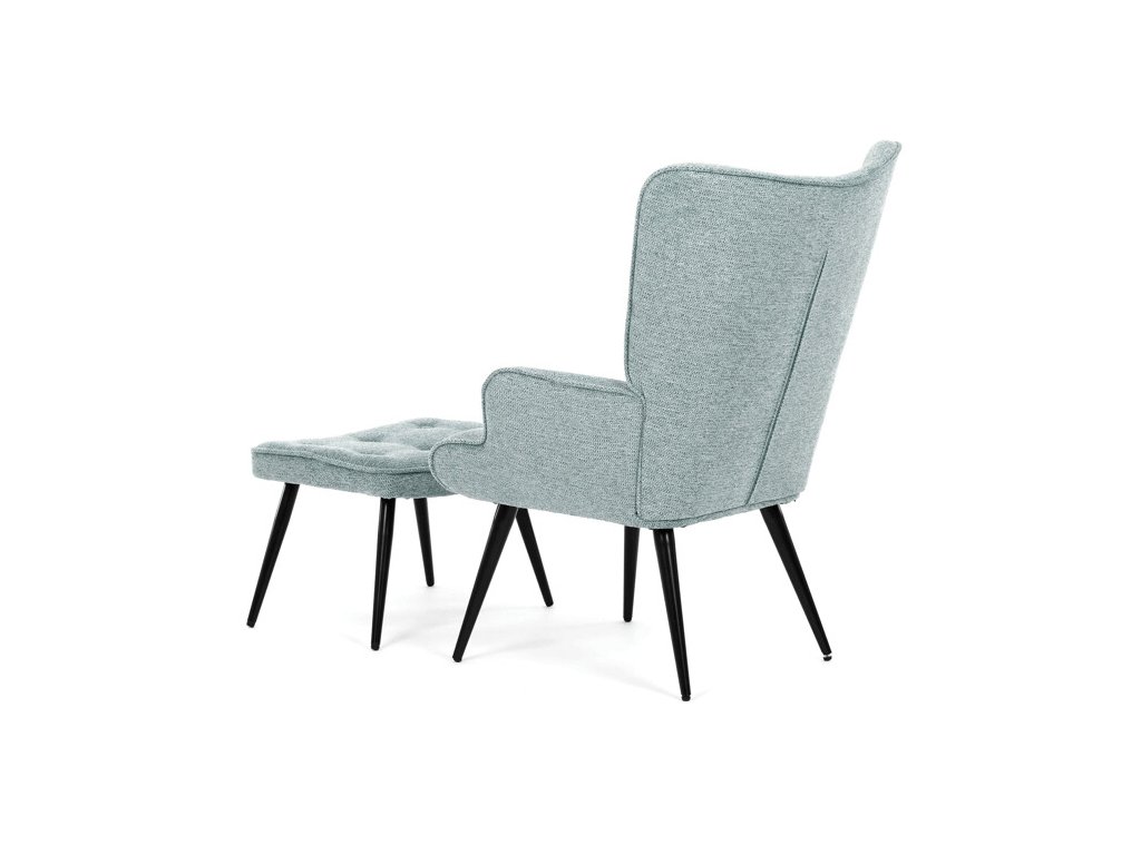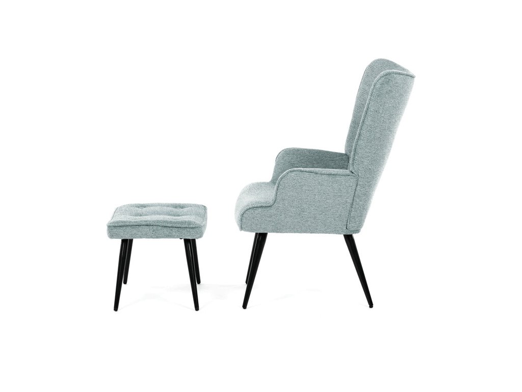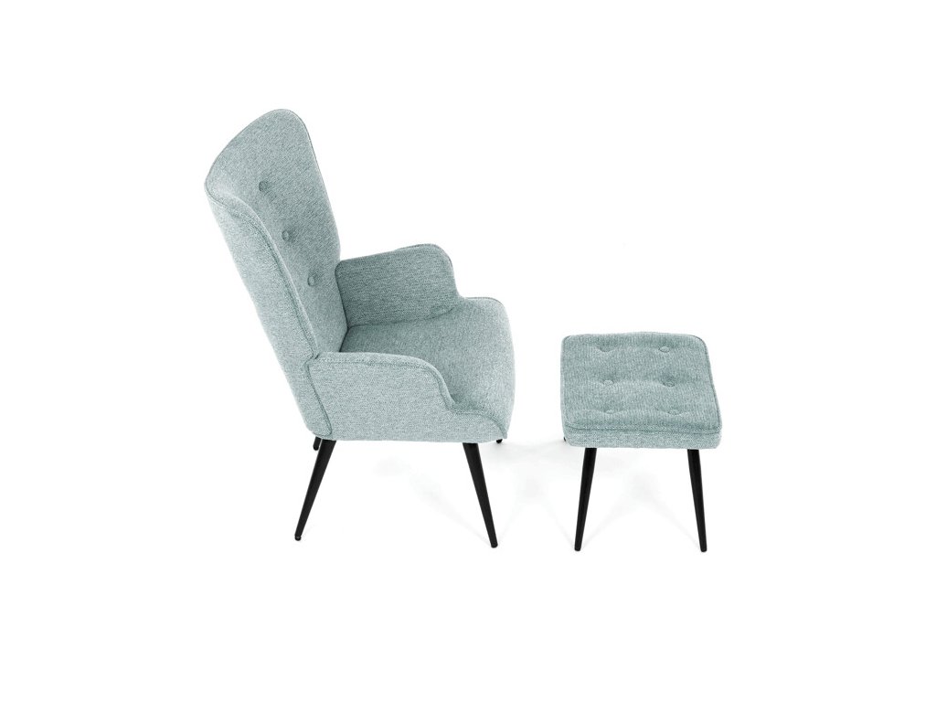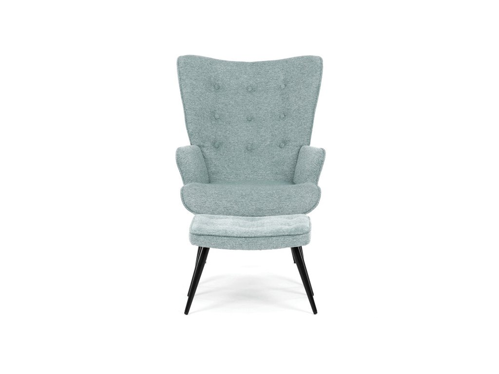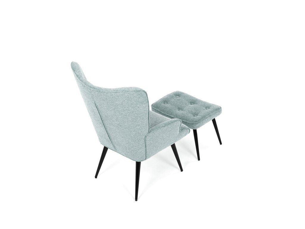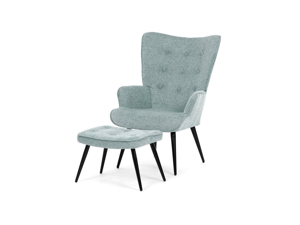 Relaxačné kreslo s podnožkou v modrej farbe je potiahnuté vodoodpudivou prémiovou látkou, ktorá uľahčuje údržbu a zvyšuje odolnosť voči poliatiu. Pevné čierne kovové nohy zabezpečujú stabilitu a dlhú životnosť. Kreslo ponúka pohodlné operadlo s integrovanými podrúčkami, ktoré podporujú správnu ergonómiu pri relaxácii. Bonusový taburet s rovnakým čalúnením umožňuje pohodlné opretie nôh a dopĺňa celkový komfort. Dizajn s jemným prešívaním a mierne zaoblenými tvarmi vytvára príjemný vizuálny efekt vhodný do moderných aj klasických interiérov. Taburet je o šírke 48cm, hĺbke 38cm a výške 36cm.