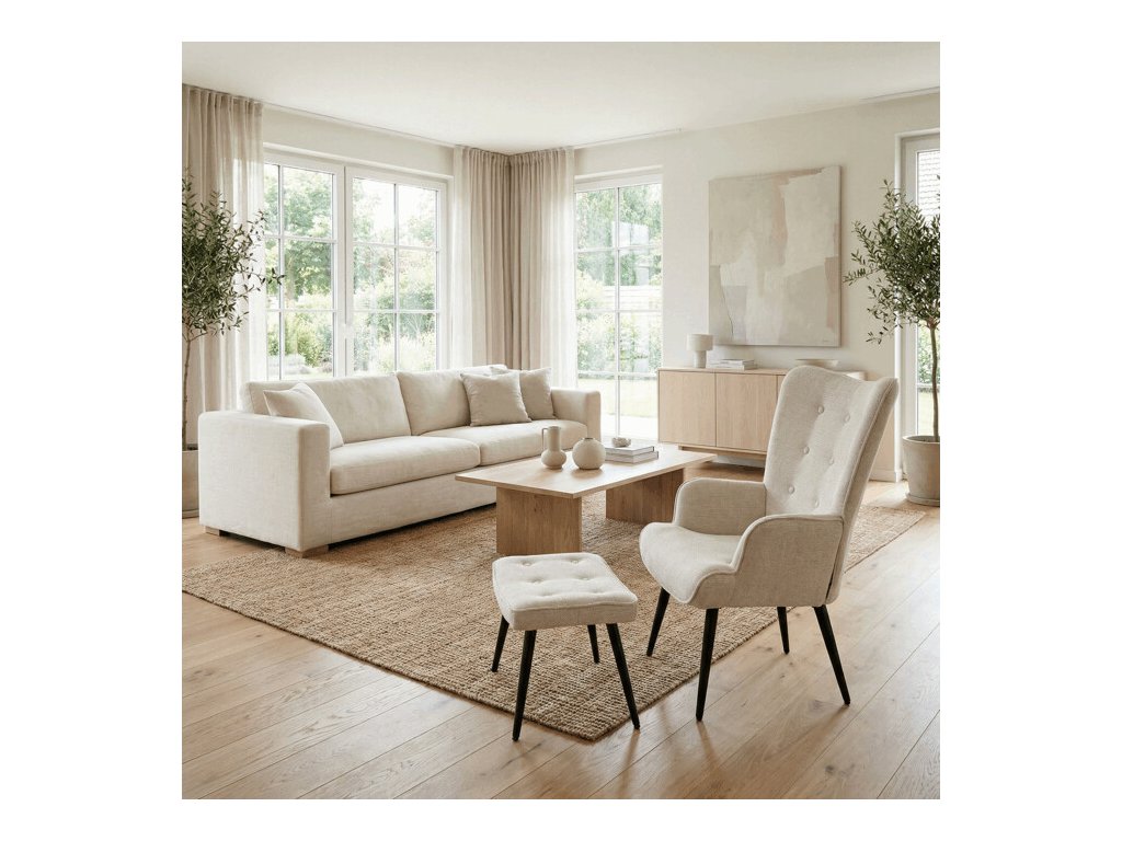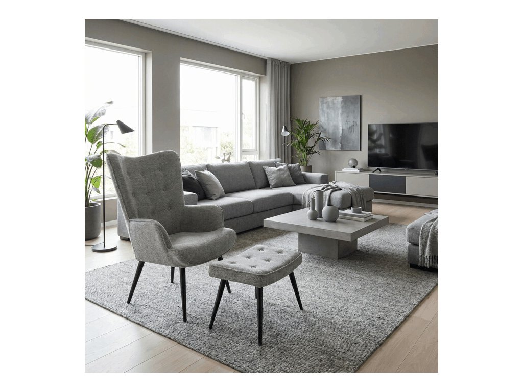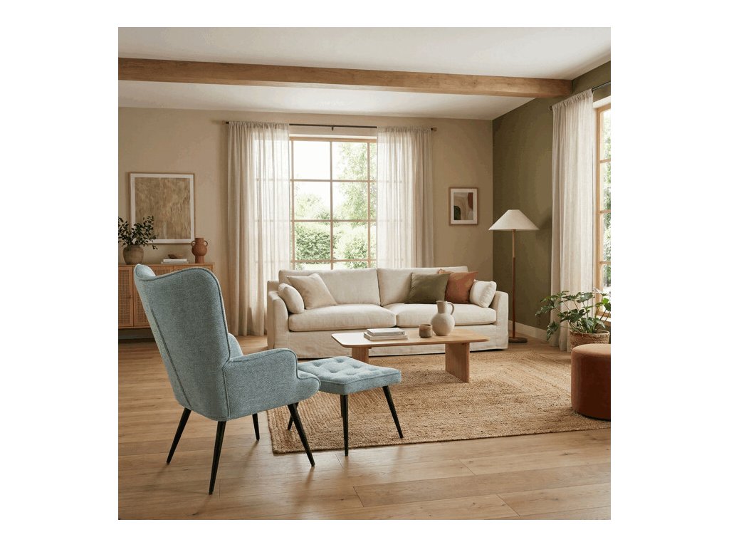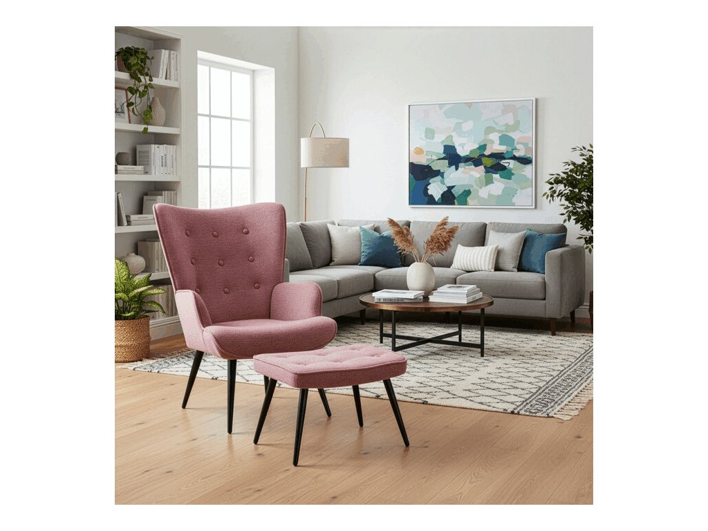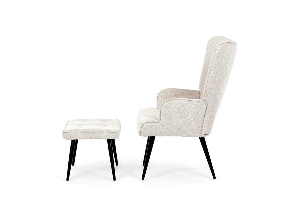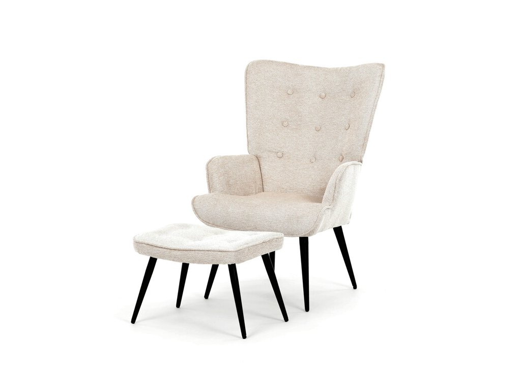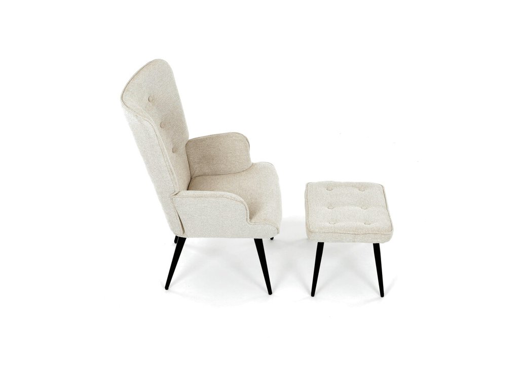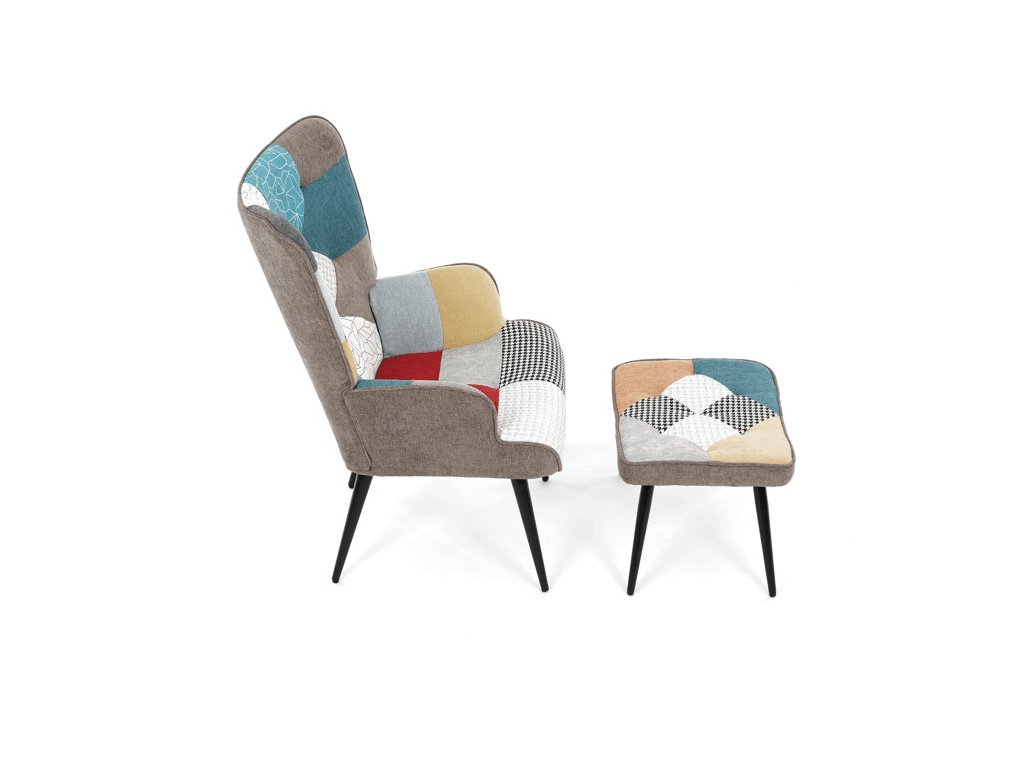 Relaxačné kreslo s podnožkou v modrej farbe je potiahnuté vodoodpudivou prémiovou látkou, ktorá uľahčuje údržbu a zvyšuje odolnosť voči poliatiu. Pevné čierne kovové nohy zabezpečujú stabilitu a dlhú životnosť. Kreslo ponúka pohodlné operadlo s integrovanými podrúčkami, ktoré podporujú správnu ergonómiu pri relaxácii. Bonusový taburet s rovnakým čalúnením umožňuje pohodlné opretie nôh a dopĺňa celkový komfort. Dizajn s jemným prešívaním a mierne zaoblenými tvarmi vytvára príjemný vizuálny efekt vhodný do moderných aj klasických interiérov. Taburet je o šírke 48cm, hĺbke 38cm a výške 36cm.