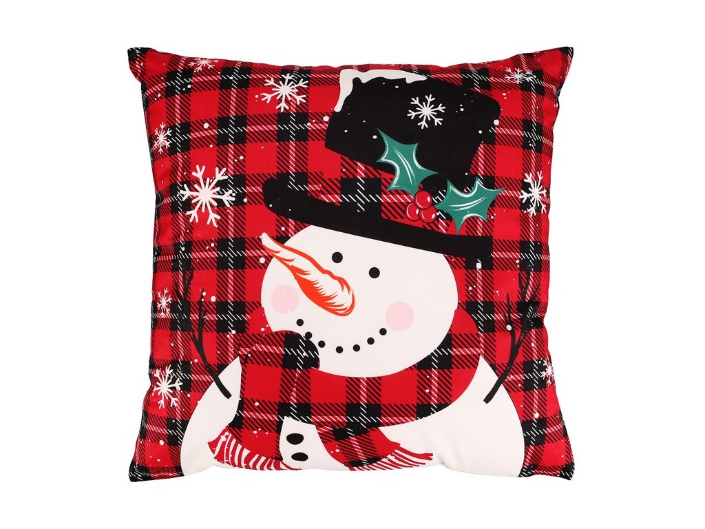 BONTEC Vankúš s výplňou - so snehuliakom, zamatový, 45 x 45 cm