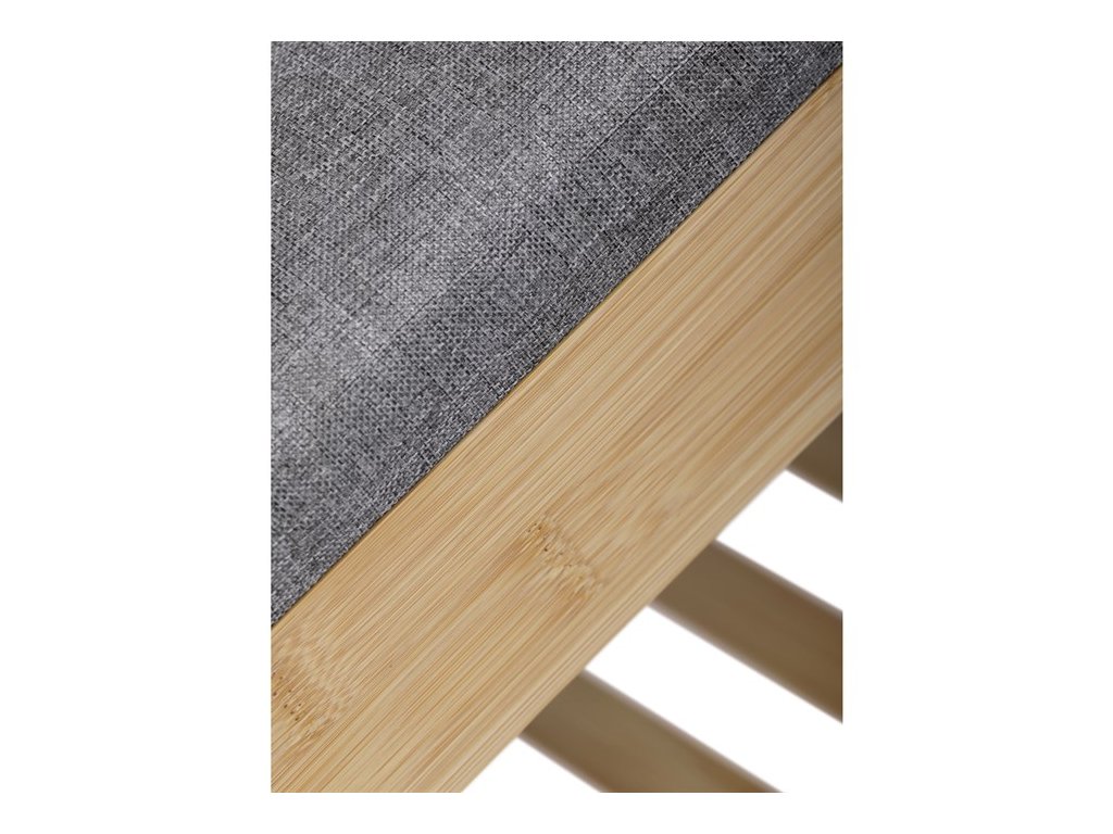Štýlový a praktický stojan na topánky vyrobený z kvalitného bambusu kombinuje úložný priestor s pohodlným sedením. Skrinka na topánky má prirodzenú farbu, ktorá sa ľahko hodí do každého interiéru. Čalúnené sedadlo v šedej farbe poskytuje pohodlie pri obúvaní topánok. Táto skrinka na topánky je ideálnou voľbou pre tých, ktorí hľadajú funkčné a estetické riešenie na uloženie obuvi a zároveň ocenia pohodlie pri každodennom používaní. Skvelý doplnok k modernému domu.