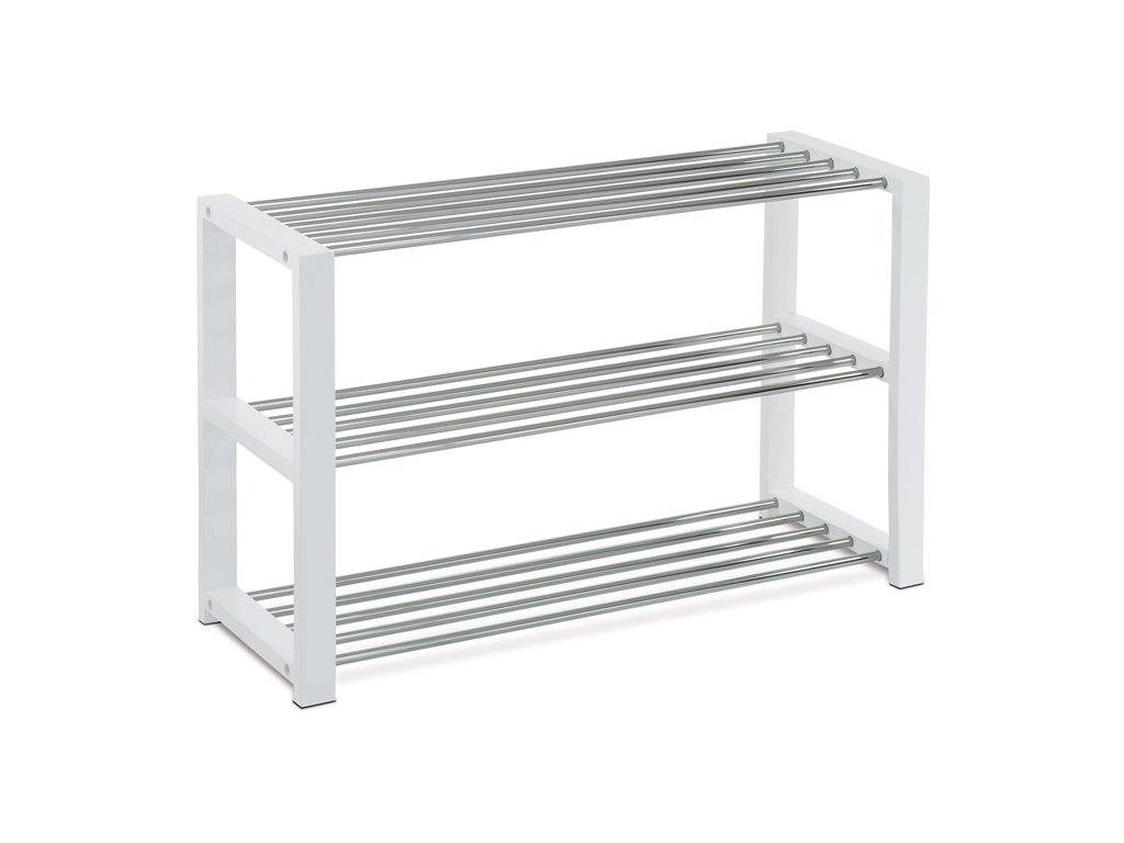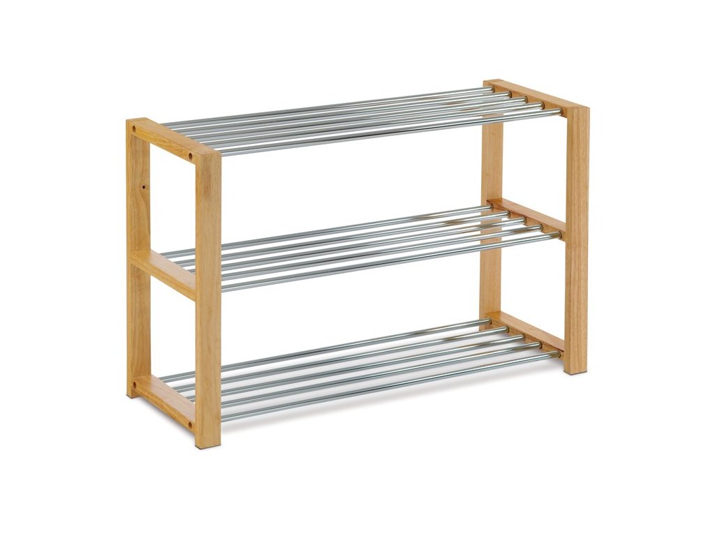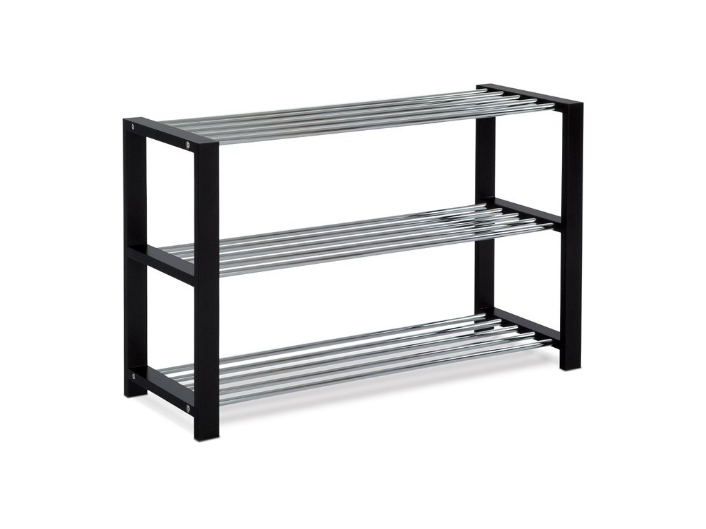 Botník s tromi policami ponúka praktické a pevné riešenie na uskladnenie obuvi v domácnosti. Masívny rám z kaučukovníka je opatrený čiernym matným lakom, ktorý podčiarkuje jeho moderný vzhľad a zabezpečuje jednoduchú údržbu. Police sú tvorené chrómovanými kovovými tyčami, ktoré poskytujú dostatočnú pevnosť a zároveň umožňujú cirkuláciu vzduchu okolo topánok. Kompaktné rozmery botníka umožňujú jeho umiestnenie v predsieňach aj menších priestoroch. Stabilné prevedenie a kvalitné materiály zaručujú dlhú životnosť a spoľahlivosť pri každodennom používaní.