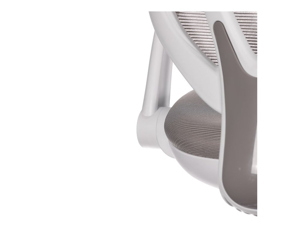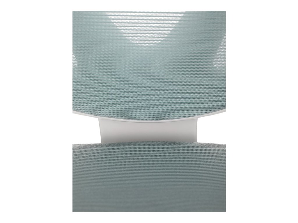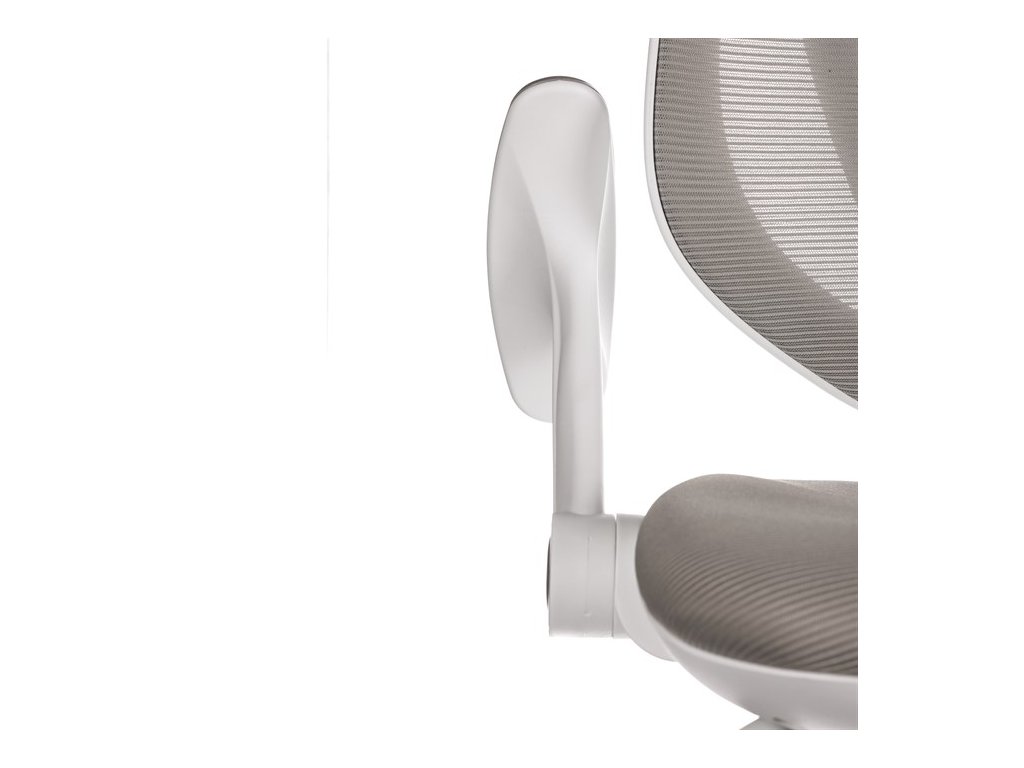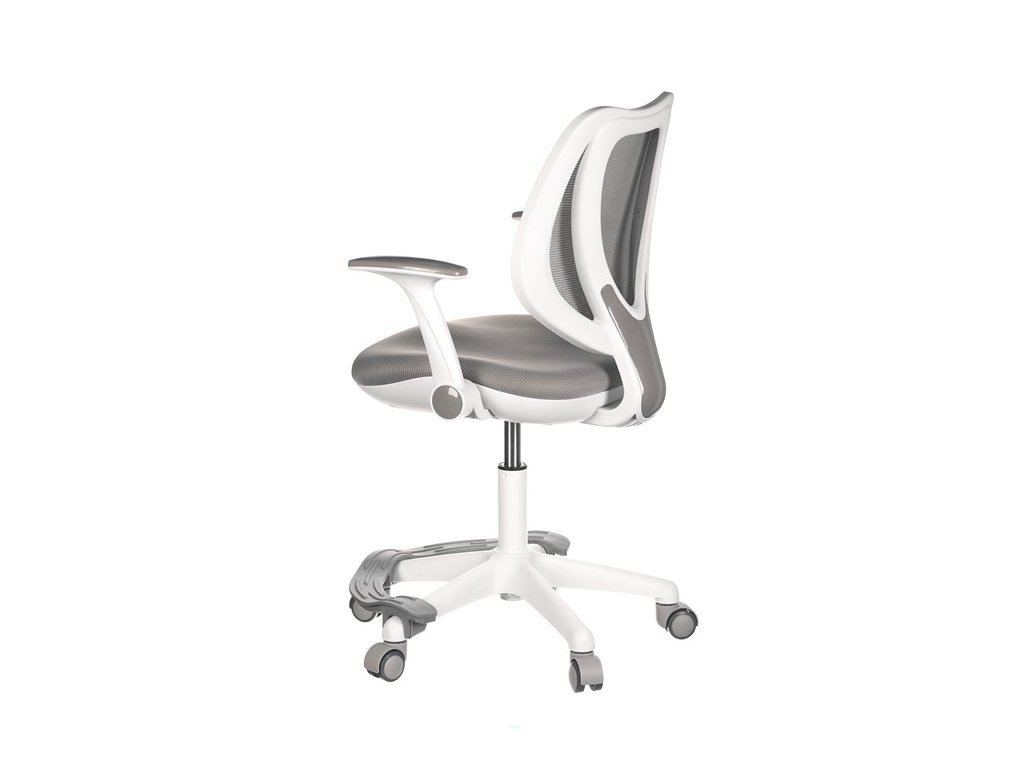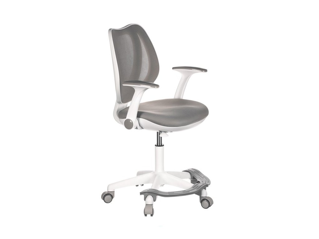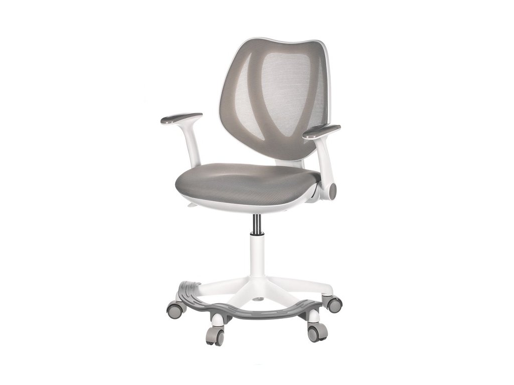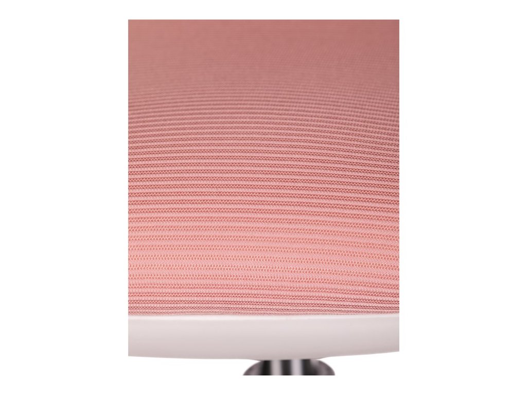 Detská stolička v príjemných pastelových farbách spolu s bielou kostrou ponúka jednoduchý a elegantný design. Stolička má pevné operadlo potiahnuté priedušným sieťovaným materiálom. Sedák v rovnakom poťahu poskytuje dostatok pohodlia vďaka svojmu zmäkčeniu. Pre pocit pohodlia slúžia pevné podrúčky, ktoré sú na svojej vrchnej časti opatrené lesklým plastovým povrchom vo farbe poťahového materiálu. Dôležitá je tiež integrovaná opora nôh, ktorá prispieva k pohodlnému sedeniu. Stolička je vybavená špeciálnymi funkčnými kolieskami, ktoré sa pri zaťažení automaticky zablokujú, čo zabraňuje nechceným pohybom stoličky.