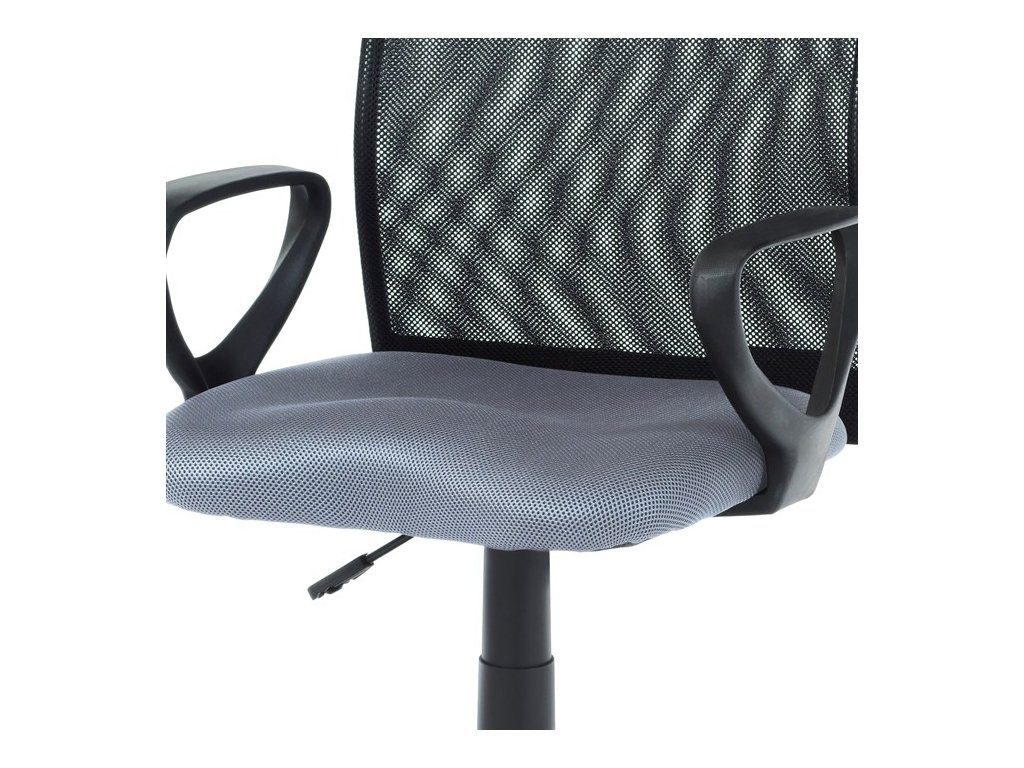 Kancelárska stolička s označením KA-B047 GREY ponúka kombináciu sivého látkového sedáka a čierneho priedušného sieťovaného operadla, ktoré zabezpečuje optimálnu ventiláciu počas sedenia. Výškovo nastaviteľné operadlo aj sedák umožňujú individuálne prispôsobenie pre maximálny komfort. Pevné plastové podrúčky dopĺňajú jednoduchý, no funkčný dizajn, ktorý je vhodný najmä pre detských používateľov. Stabilný plastový kríž s piatimi kolieskami zaručuje ľahkú mobilitu a dostatočnú stabilitu. Plynulá výšková regulácia pomocou plynového piestu umožňuje rýchle a presné nastavenie výšky sedáka podľa potreby.
