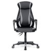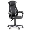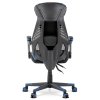 Luxusné herné a kancelárske kreslo z kolekcie TOP racing. Jedná sa o moderné designové kreslo, navrhnuté nielen pre náročné požiadavky PC hráčov, ale je prispôsobené aj pre štandardnú kancelársku prácu. To všetko v maximálnom pohodlí a pri dokonalej ergonómii sedenia. Poťah je kombináciou modrej a čiernej perforovanej ekokože na sedáku aj operadle, čiernej sieťoviny MESH a čiernej, jemne hrubej látky látky na sedáku aj bokoch opierky hlavy. Operadlo je čierny plastový výlisok vo futuristickom dizajne. Výplň sedadla aj hlavovej opierky je z veľmi kvalitnej a tuhej PU peny, vystuženie a pružnosť zaisťujú látkové popruhy. Kreslo je vybavené hojdacím mechanizmom s plynulou aretáciou. Pri vypnutí je možné sa s operadlom voľne pohupovať. Výška sedenia sa upravuje jednou páčkou na pravej strane cez kvalitný plynový piest. Poloha operadla sa nastavuje druhou páčkou, umiestnenou aj na pravej strane kresla. Masívny čierny plastový kríž s modrými protišmykovými plastovými doplnkami je osadený čiernymi plastovými kolieskami pr. 6 cm s modrým racing stredom a gumovým obvodom ideálnymi na tvrdé podlahy. So stabilitou celých 70 cm priemeru kríža si môžete dovoliť aj tie najnáročnejšie hry. Vysoké, priedušné a ergonomicky navrhnuté operadlo s integrovanou zosilnenou opierkou hlavy, polstrovanou a výškovo nastaviteľnou bedrovou opierkou slúži nielen ako výborná opora celého chrbta a tiež podporuje správne držanie chrbtice. Podrúčky sú plastové, polstrované a potiahnuté modrou a čiernou ekokožou. Šírka je 7 cm, dĺžka ložnej plochy 33 cm a výška 3 cm. Pri sklápaní sedadla sa pohybujú a kopírujú jeho pohyb a polohu. Nosnosť stoličky je až 130 kg.